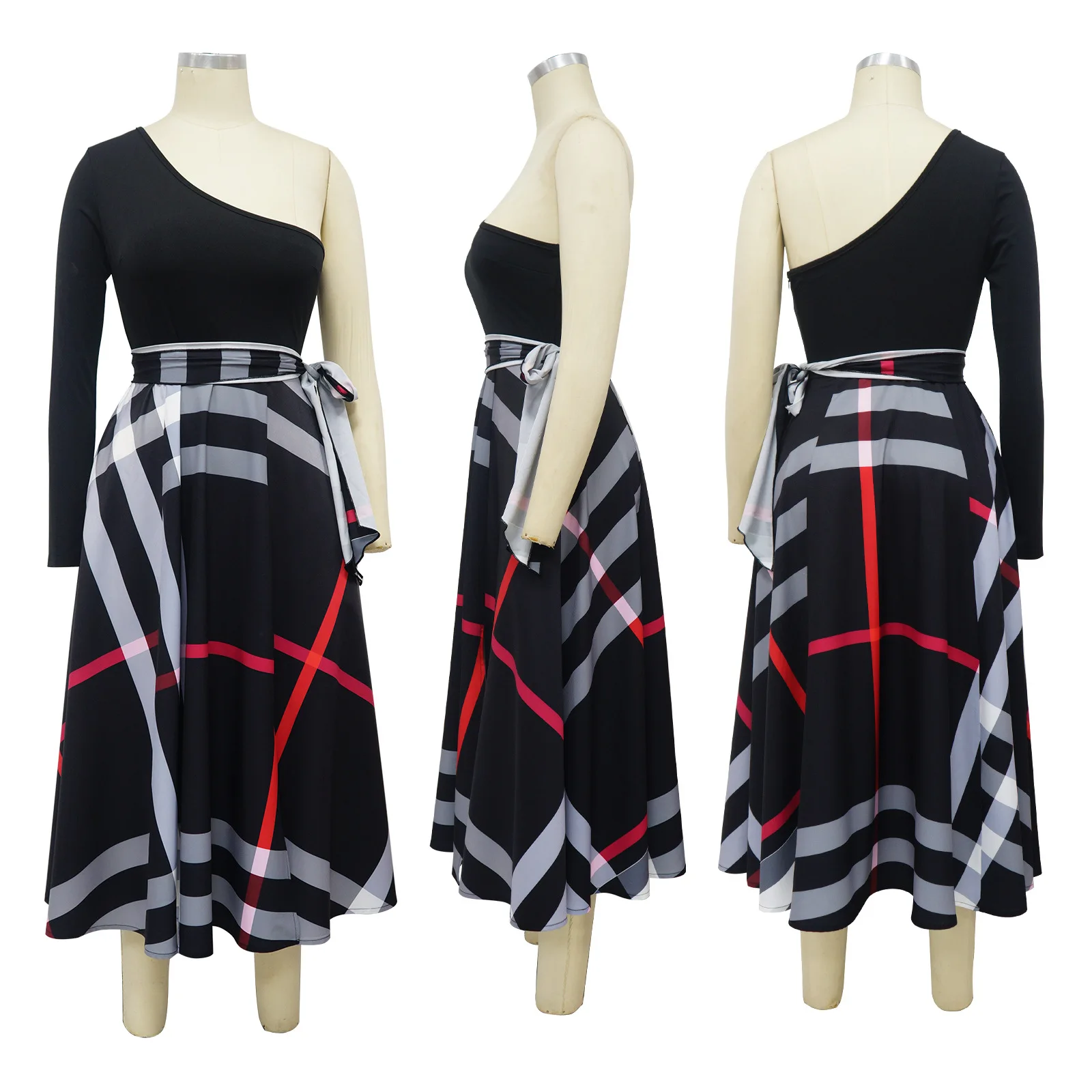 D0906TA24 Direct Sales Modest Print Asymmetric Collar Single Long Sleeve Casual Maxi Ladies Dresses Sehe Fashion