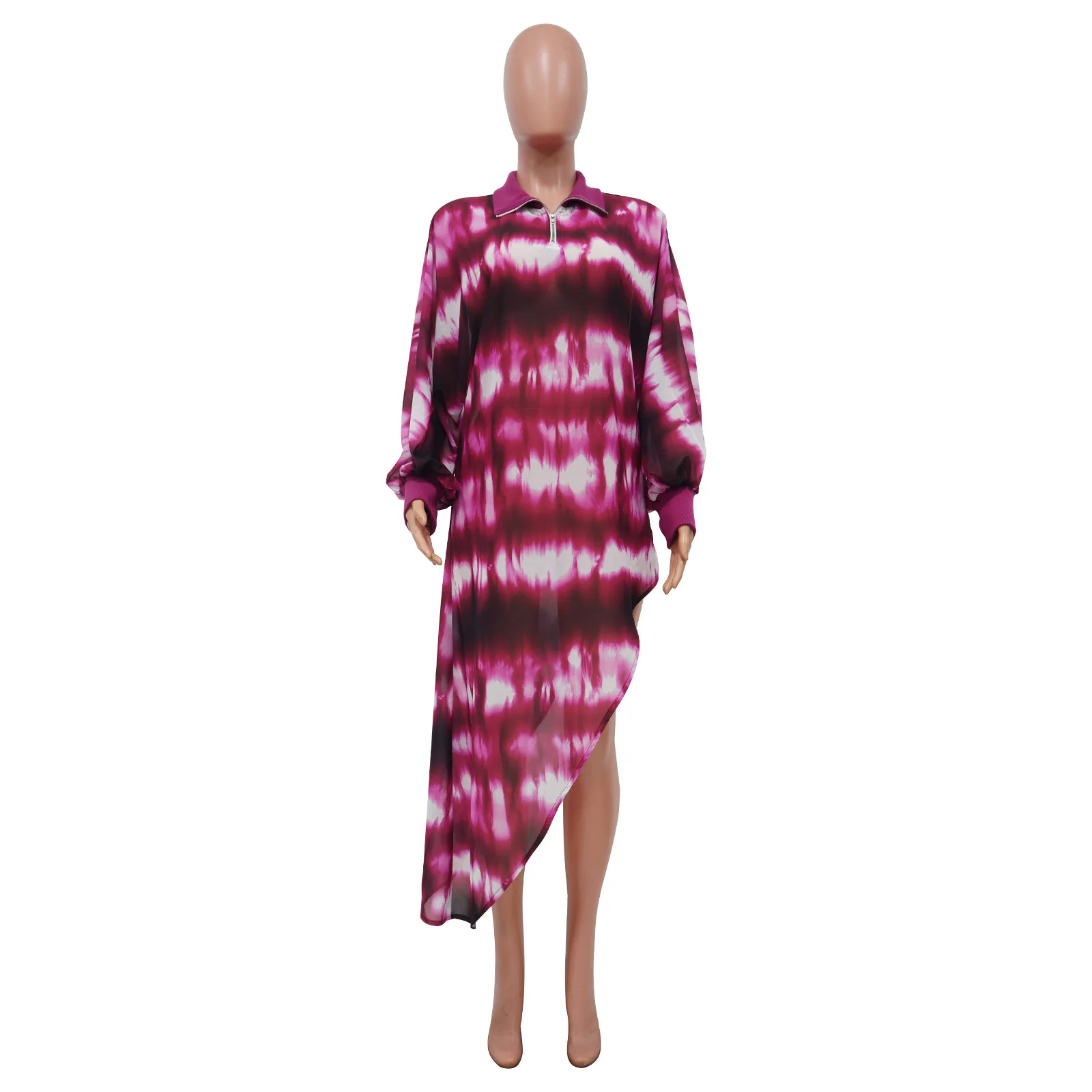 D0906TA27 High Quality 2023 Long Sleeve Chiffon Print Asymmetric Women's Blouse Shirts Sehe Fashion