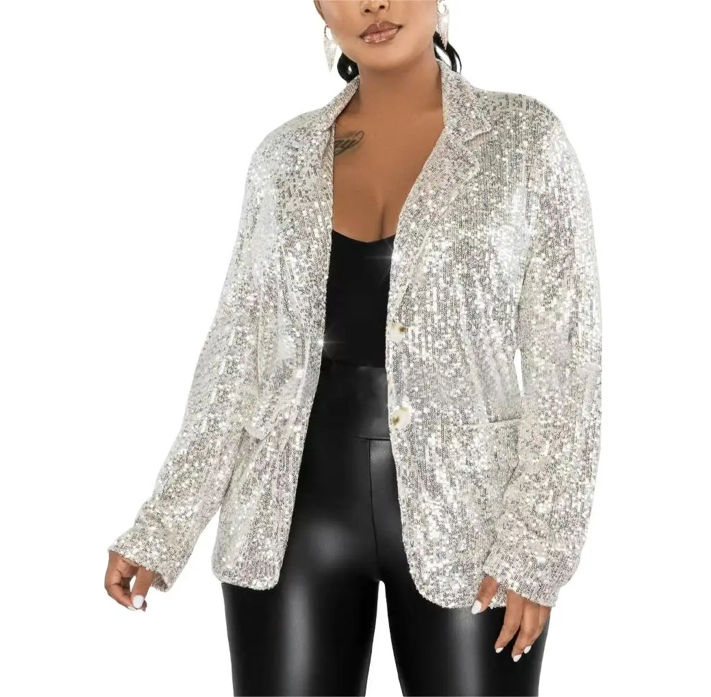 D0906TA58 New Arrivals Women Casual Sequin Solid Color Blazer Sehe Fashion
