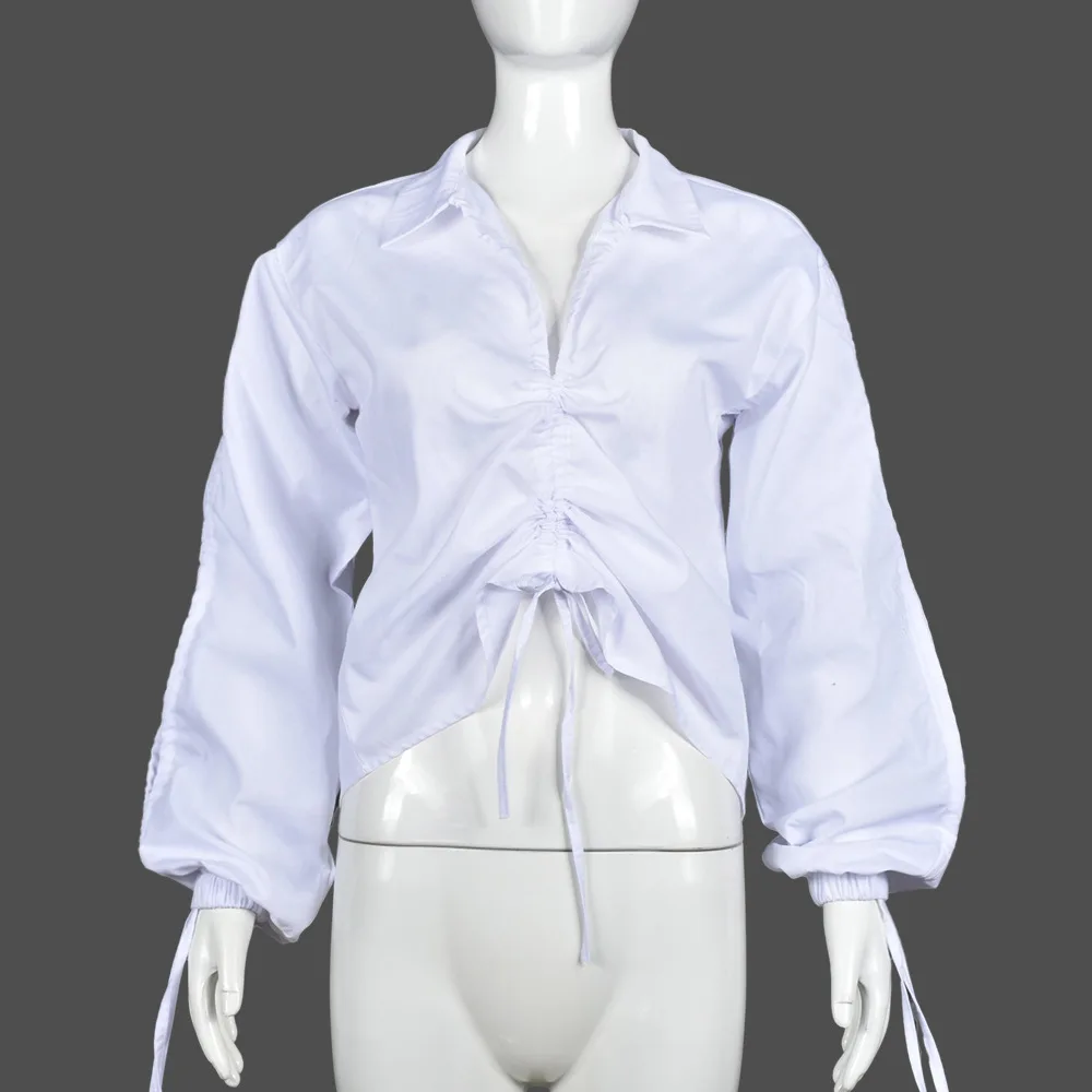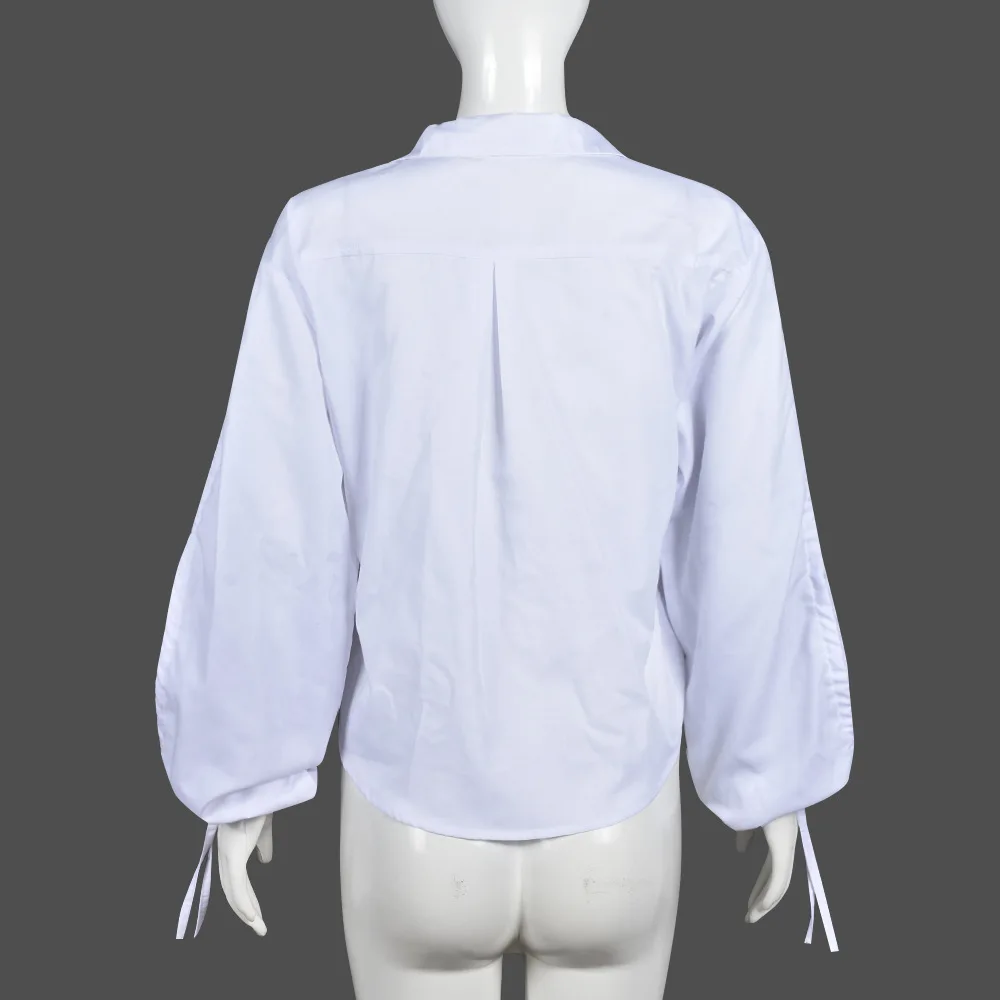 D0906TA71 Wholesale Price White Casual Turn-down Crop Tops Women Long Sleeve Shirts Sehe Fashion