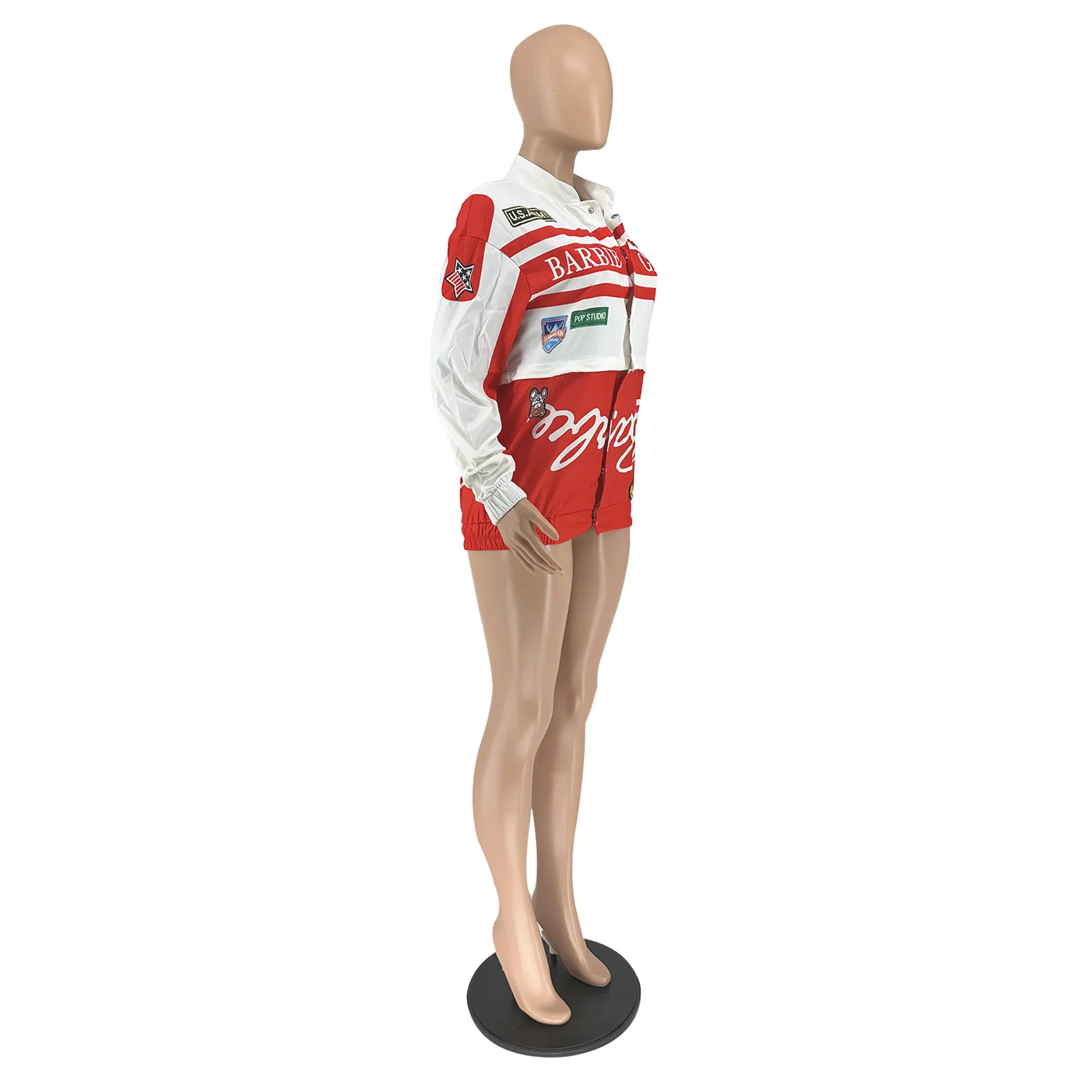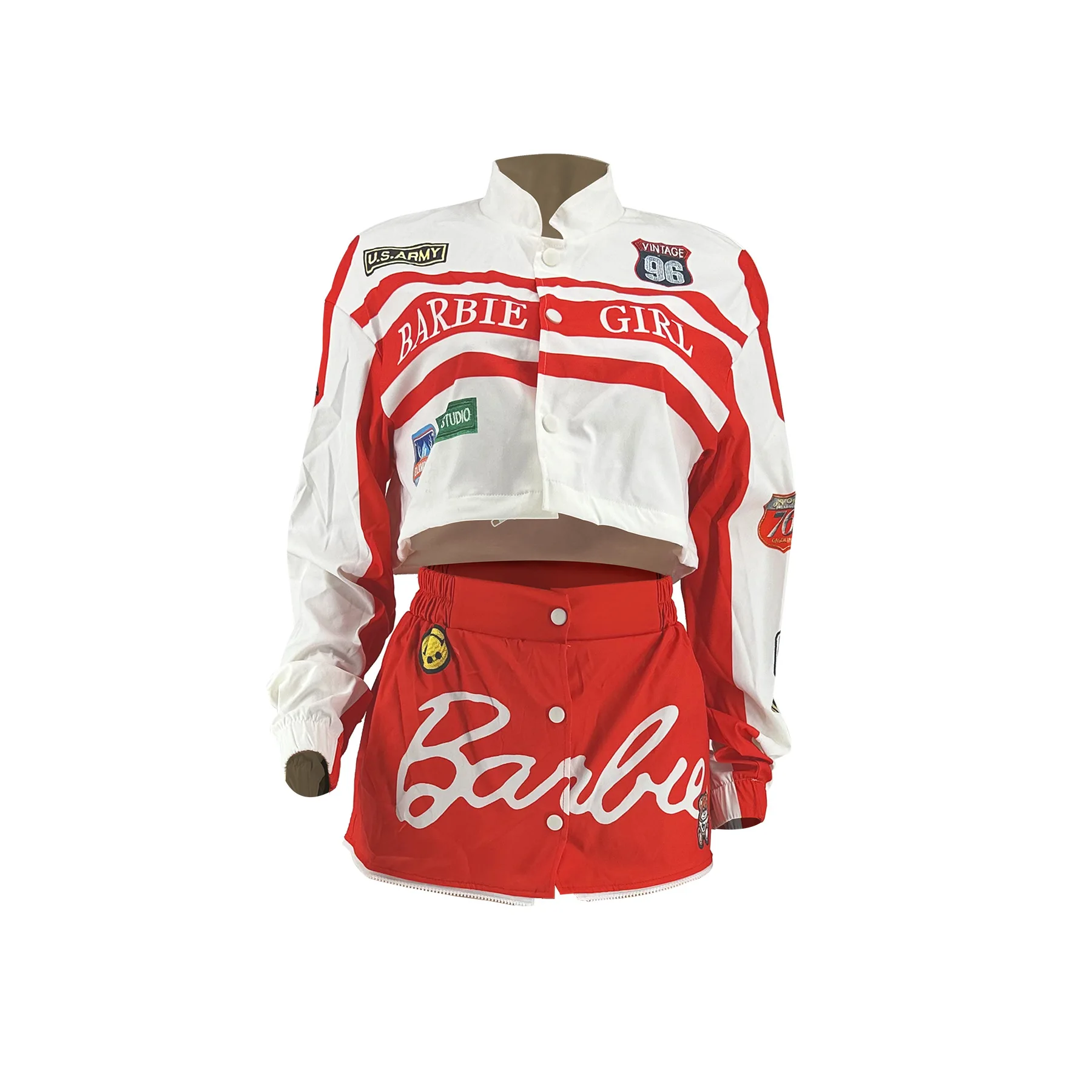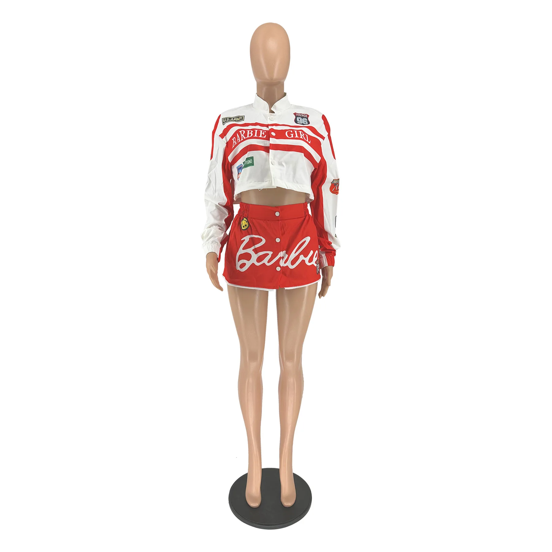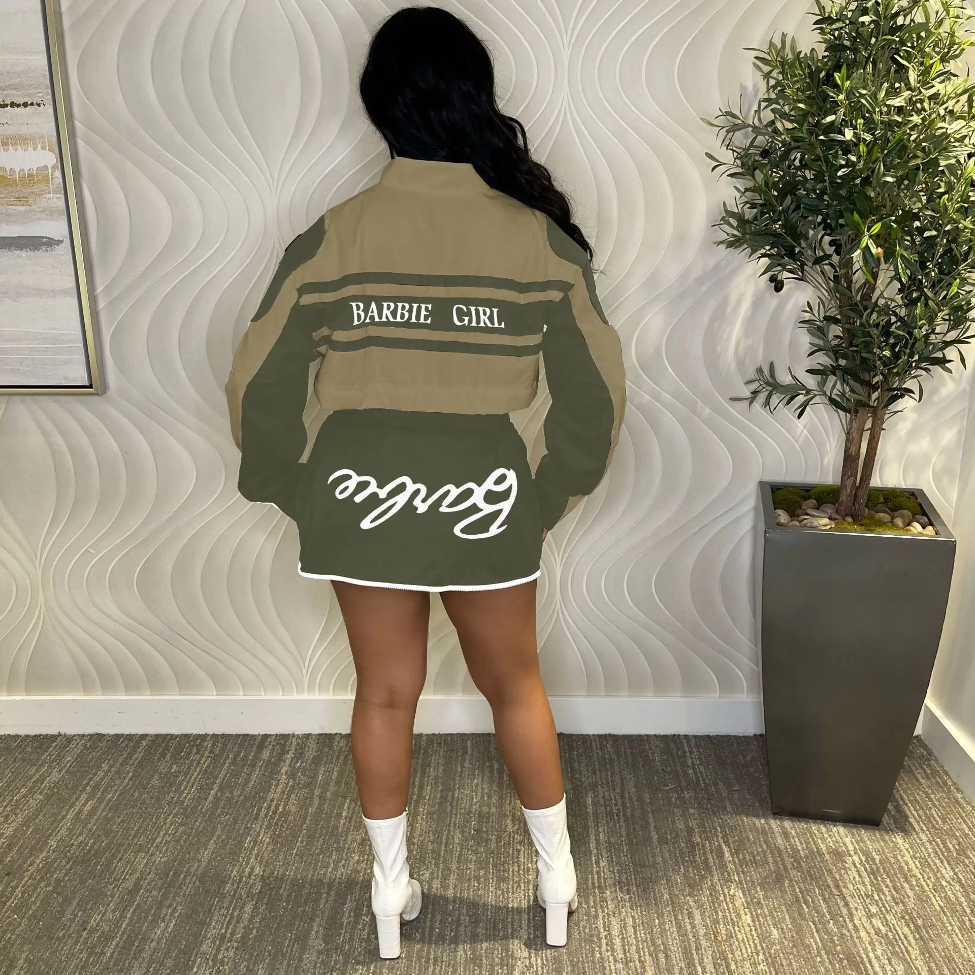 D10058 Autumn Winter Popular Motorcycle Style Detachable Jacket Short Skirt Two Piece Set