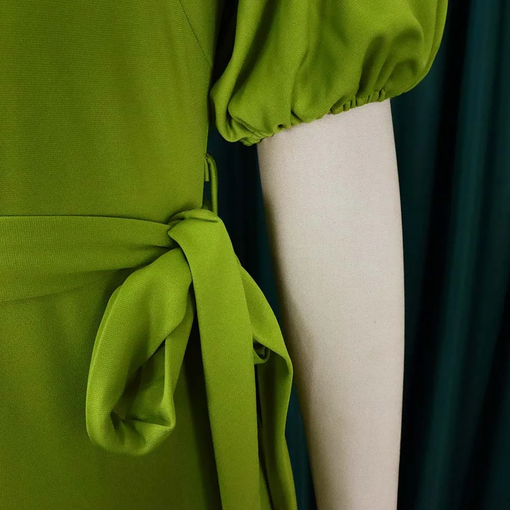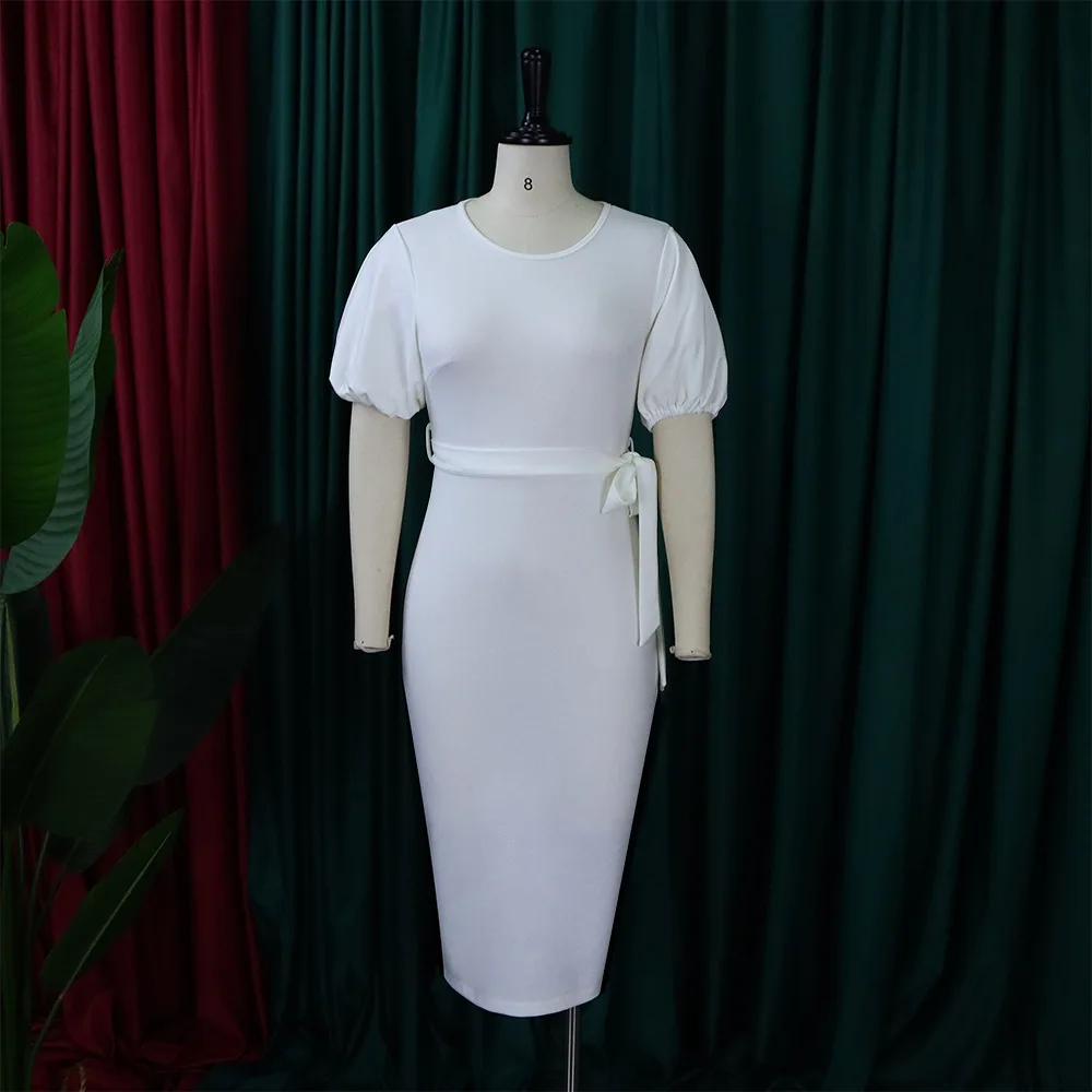 D176 New Design Solid Color Puff Sleeve Summer Dress High Waist Elegant Dresses Midi Women Dresses For Office Work
