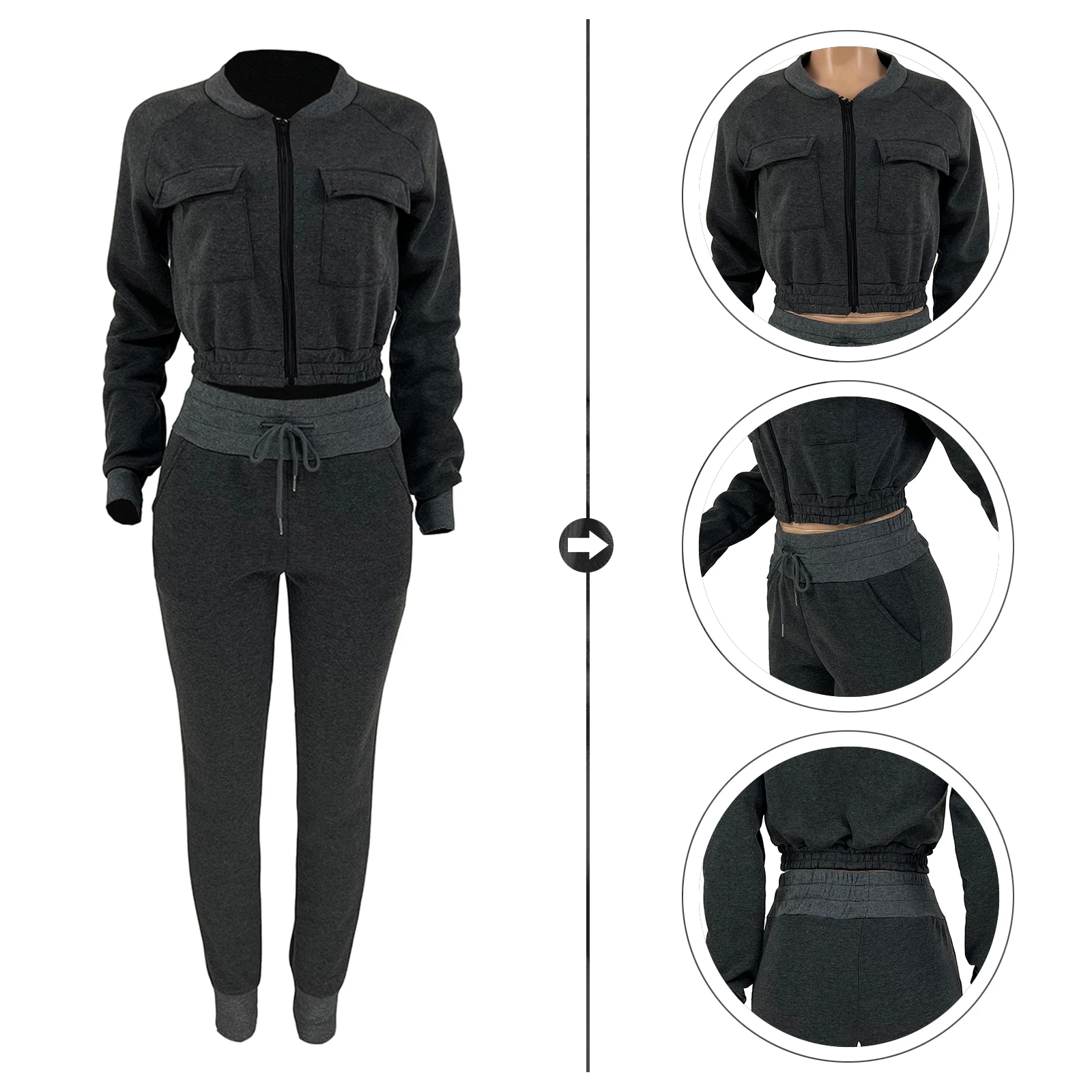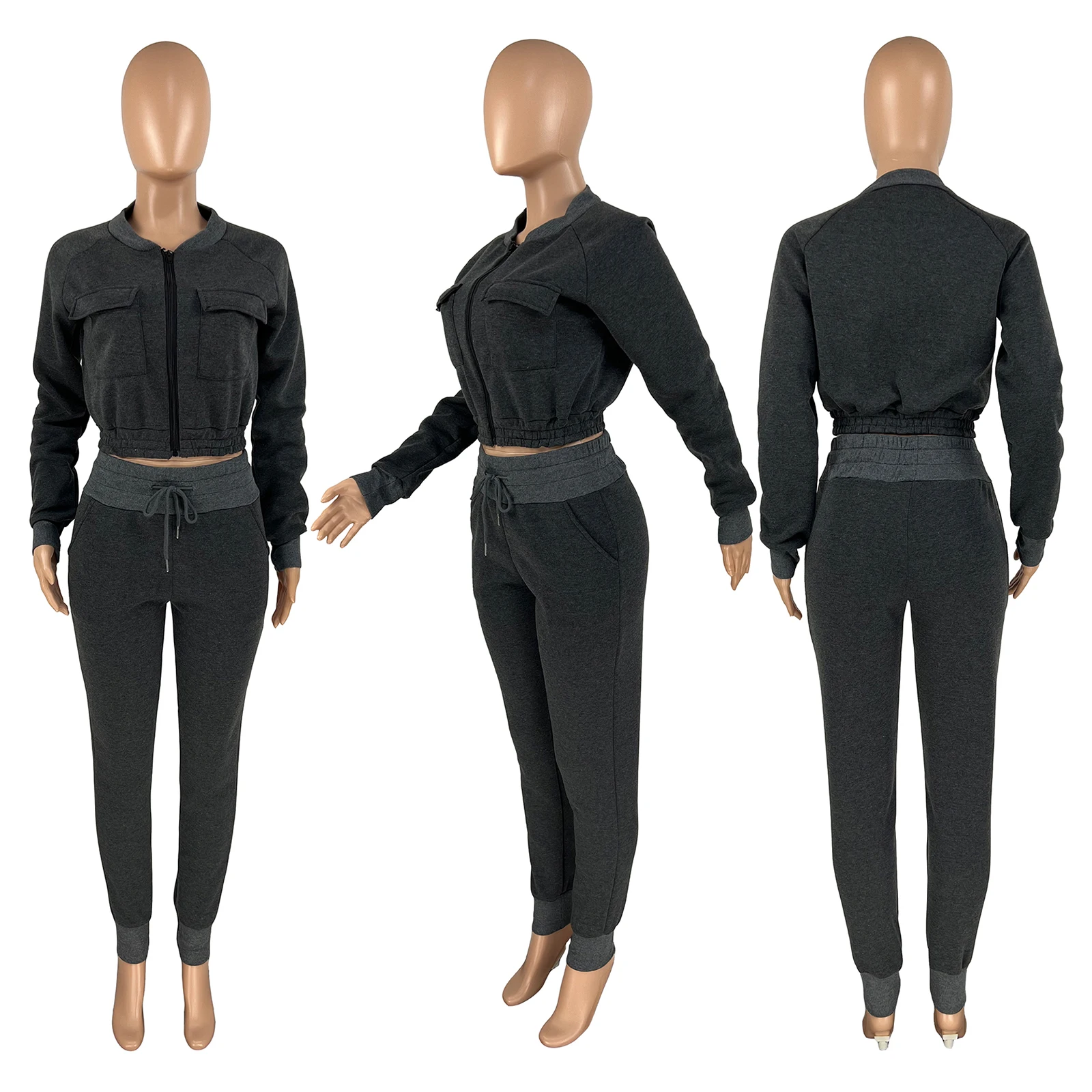 D2385 Cargo Set Women Long Sleeve Two Pieces Sets For Women Workwear