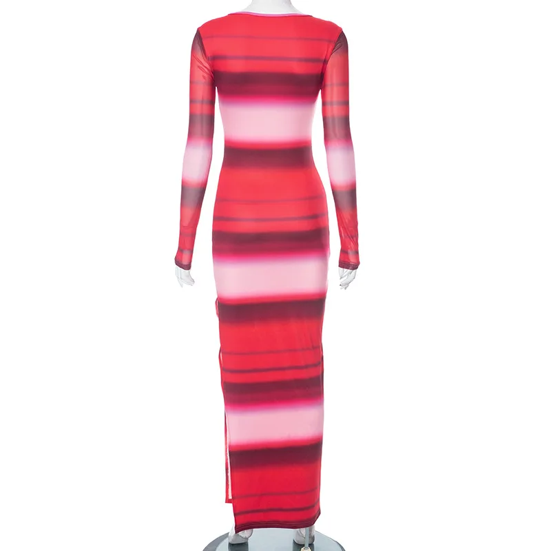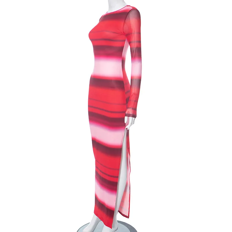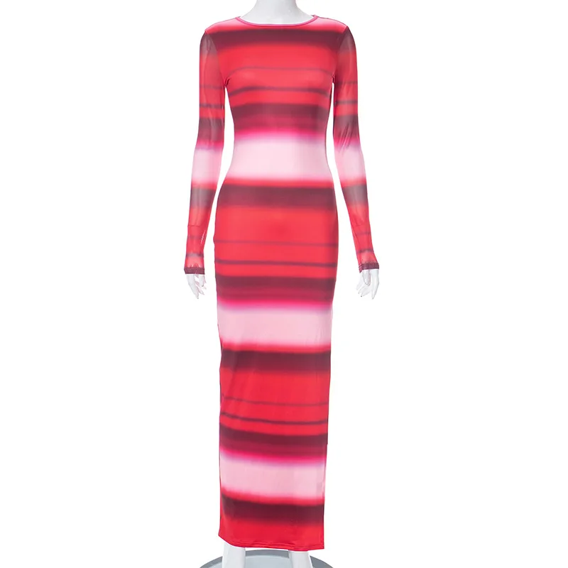 D23ds141 2024 New Fall Fashion Women's Maxi Dress Long Sleeve Striped Print Bodycon Sexy Elegant Dress Woman's Dress