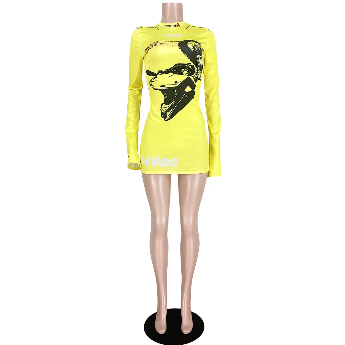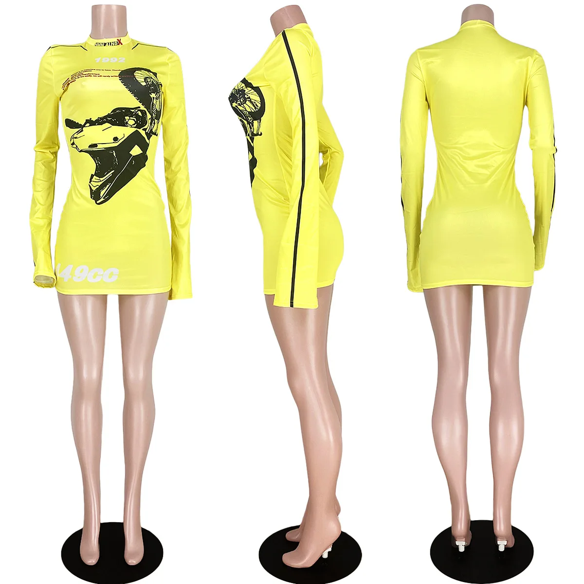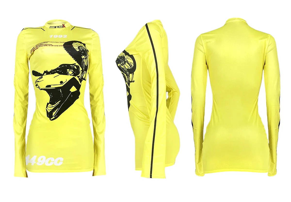 D2424 Women Casual Summer Clothing Long Sleeves Letter Printing Mini Dress Casual Club Mini Dresses