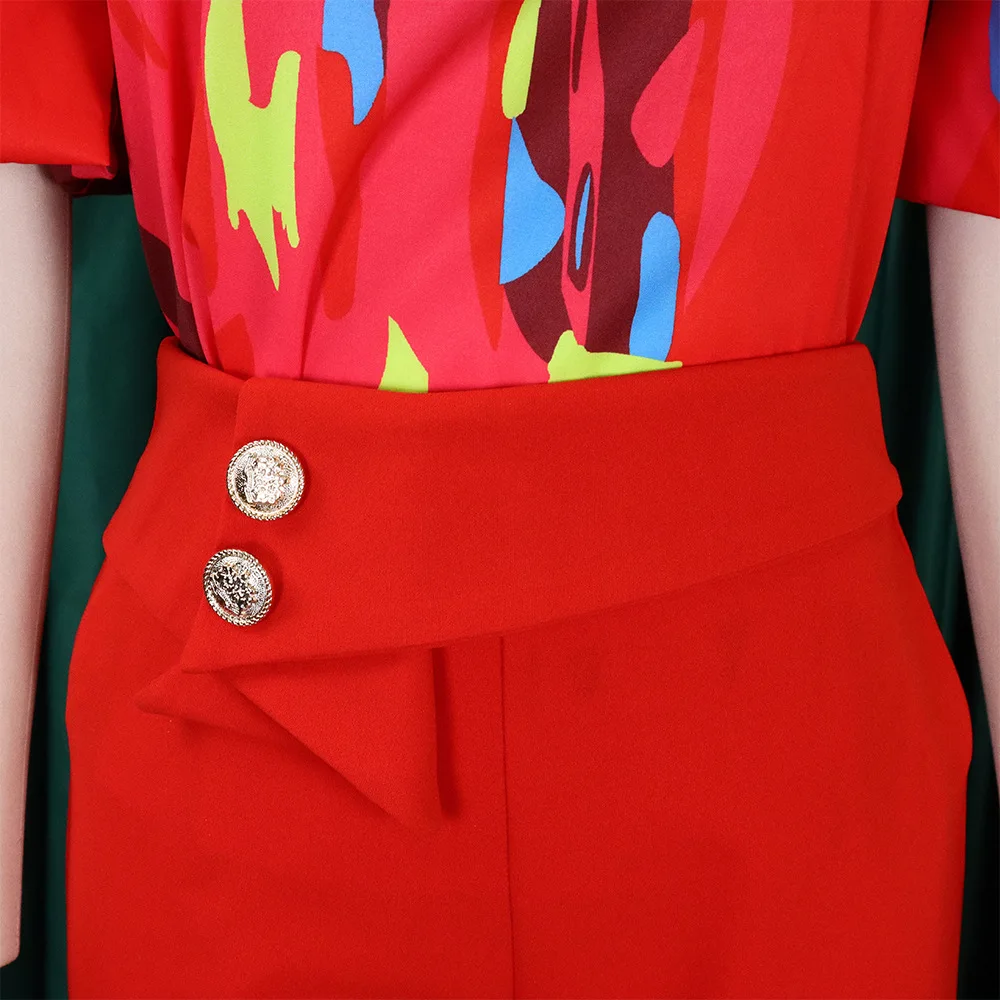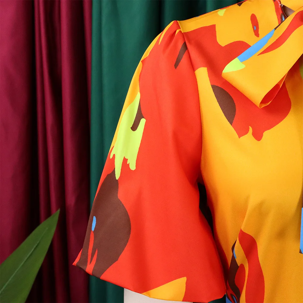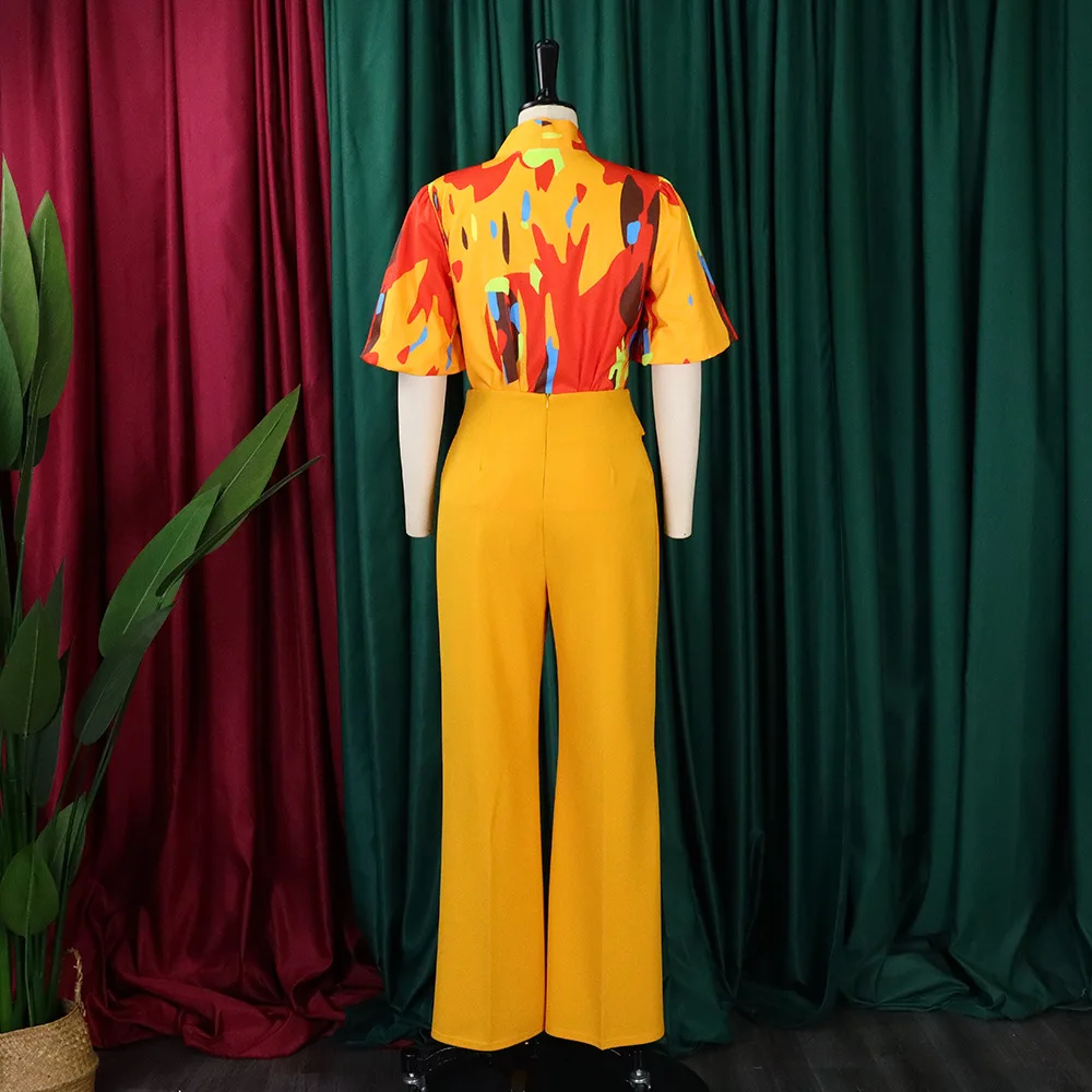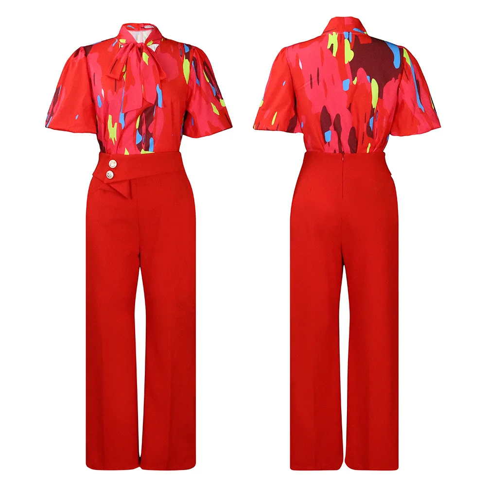 D341 Latest Design Two Piece Set Women Clothing Floral Print Summer Outfits Women Lantern Sleeve Blouse And Wide Leg Pants Set