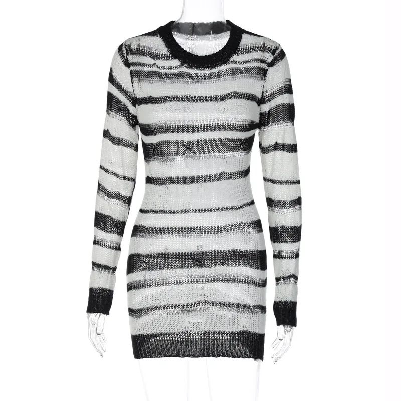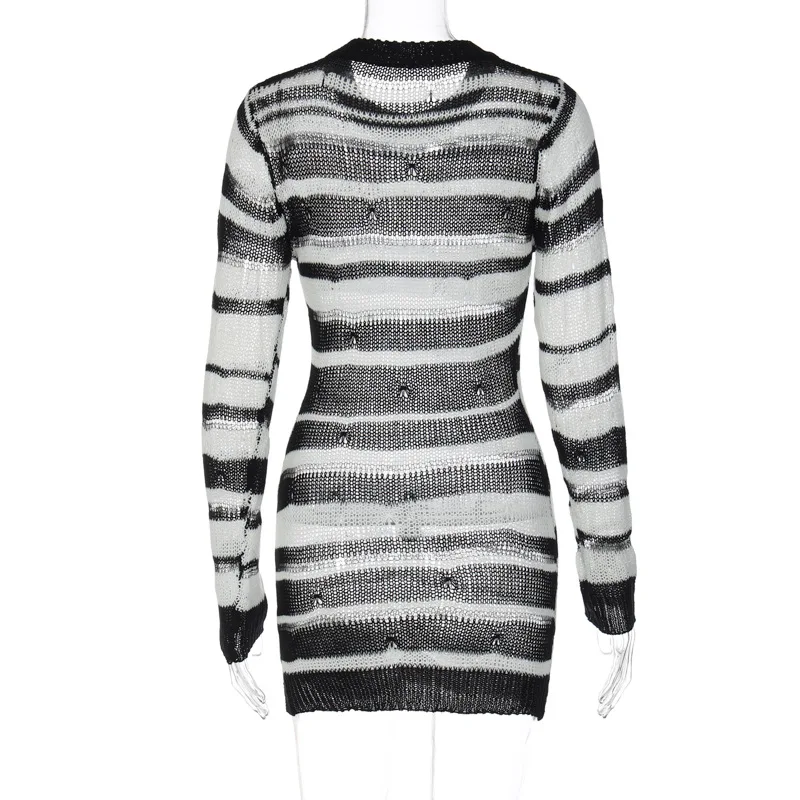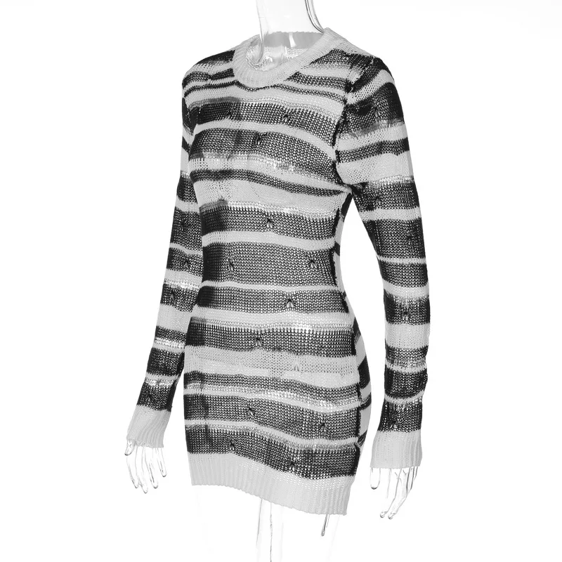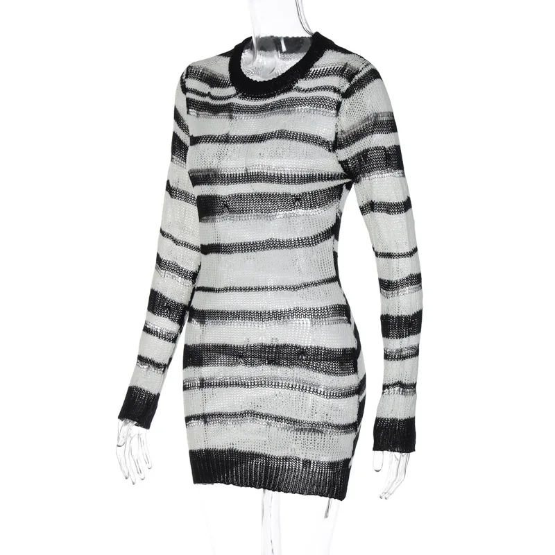 D3713481w Sexy Fall Graceful Women's Knitting Dress Sweater New O-neck Long-sleeved Striped Wrap Dress For Lady Women