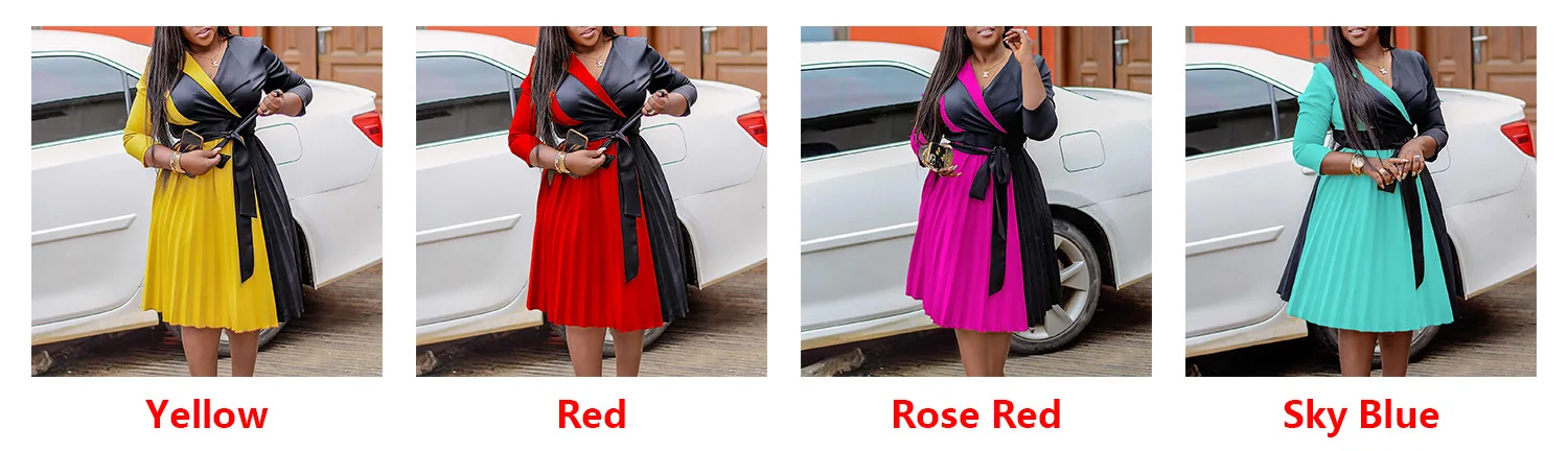 D396 Latest Design Fashionable African Dresses For Women Clothing Color Blocking Lace Up Womens Dresses Elegant Pleated Dress
