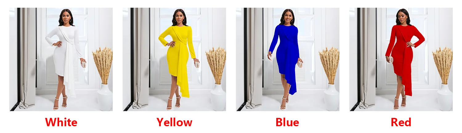 D401 Latest Design Autumn Elegant African Dress O Neck Long Sleeve Ladies Office Dresses Women Formal Work Career Dresses 2023