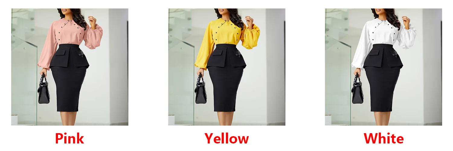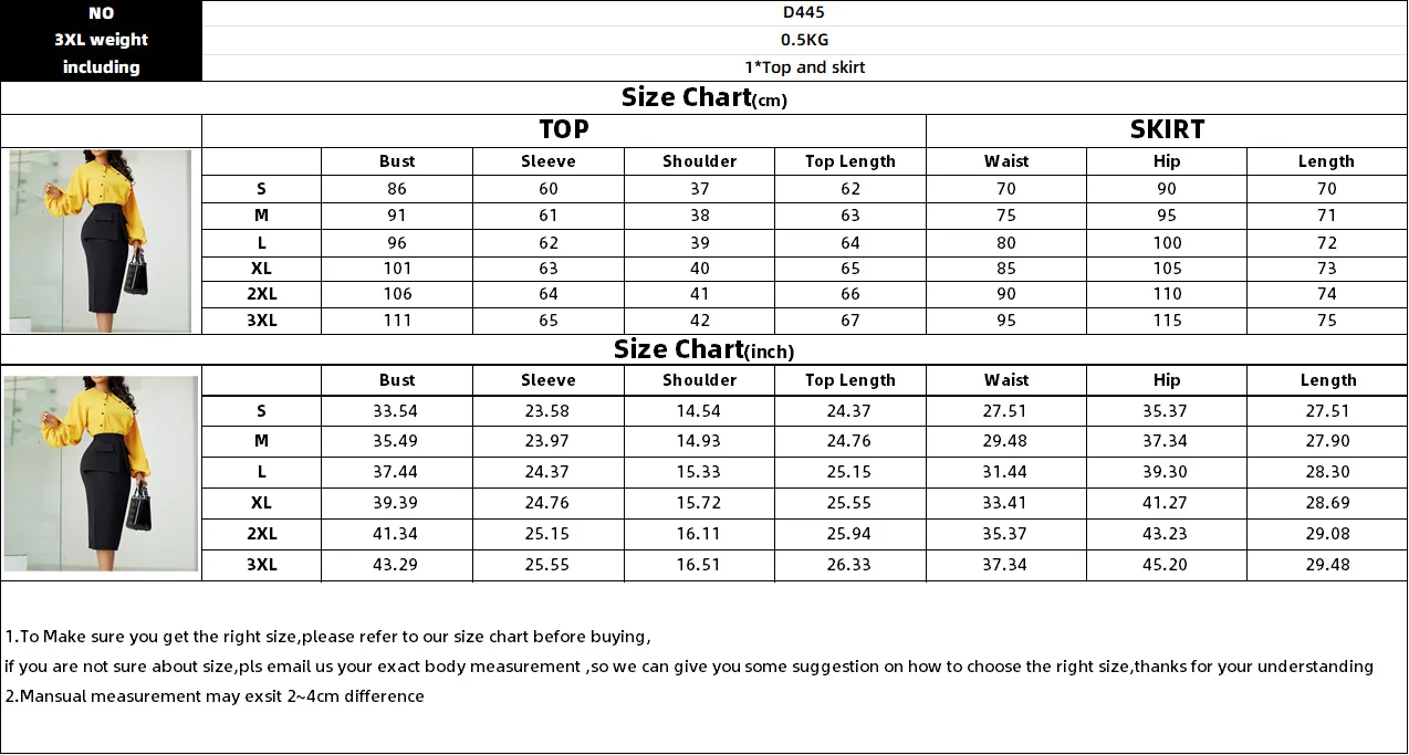 D445 Latest Design Autumn&winter Ladies Office Outfits For Women Long Sleeve Top And Wrap Hip Skirt Sets For Women Two Pieces