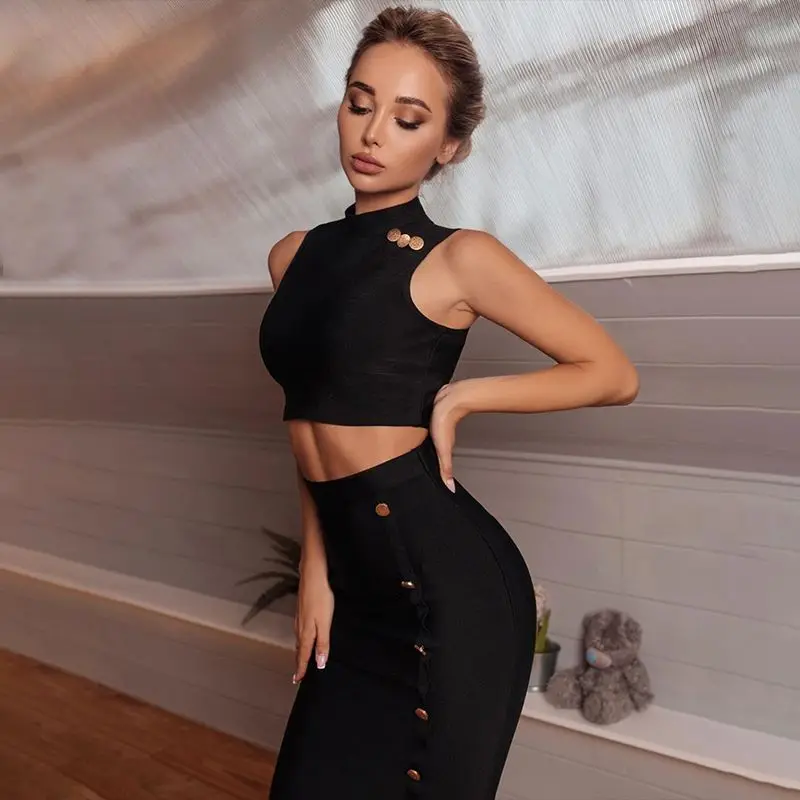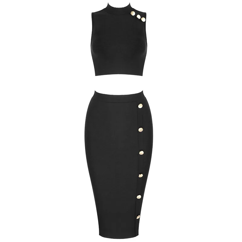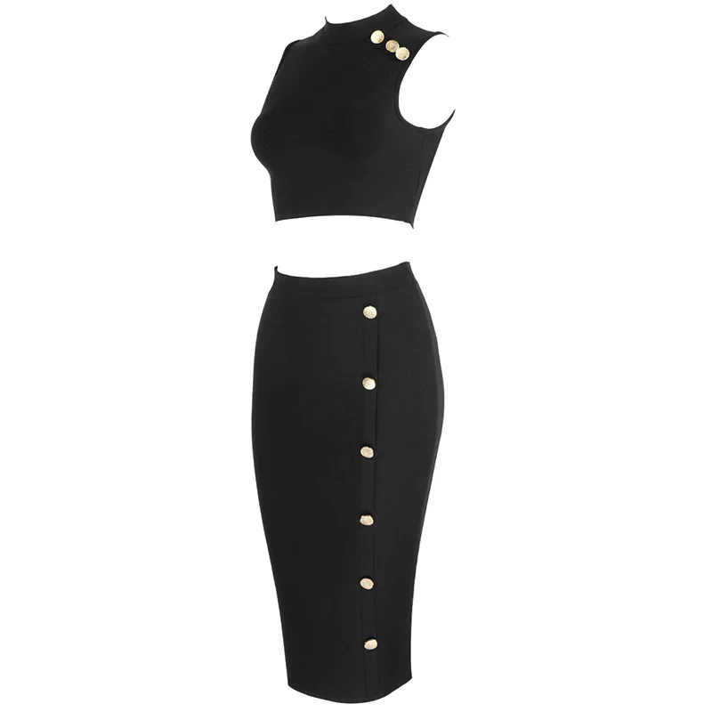 | Product name | Female fashion metallic button design sexy sleeveless blouse dress bandage half skirt two piece set |