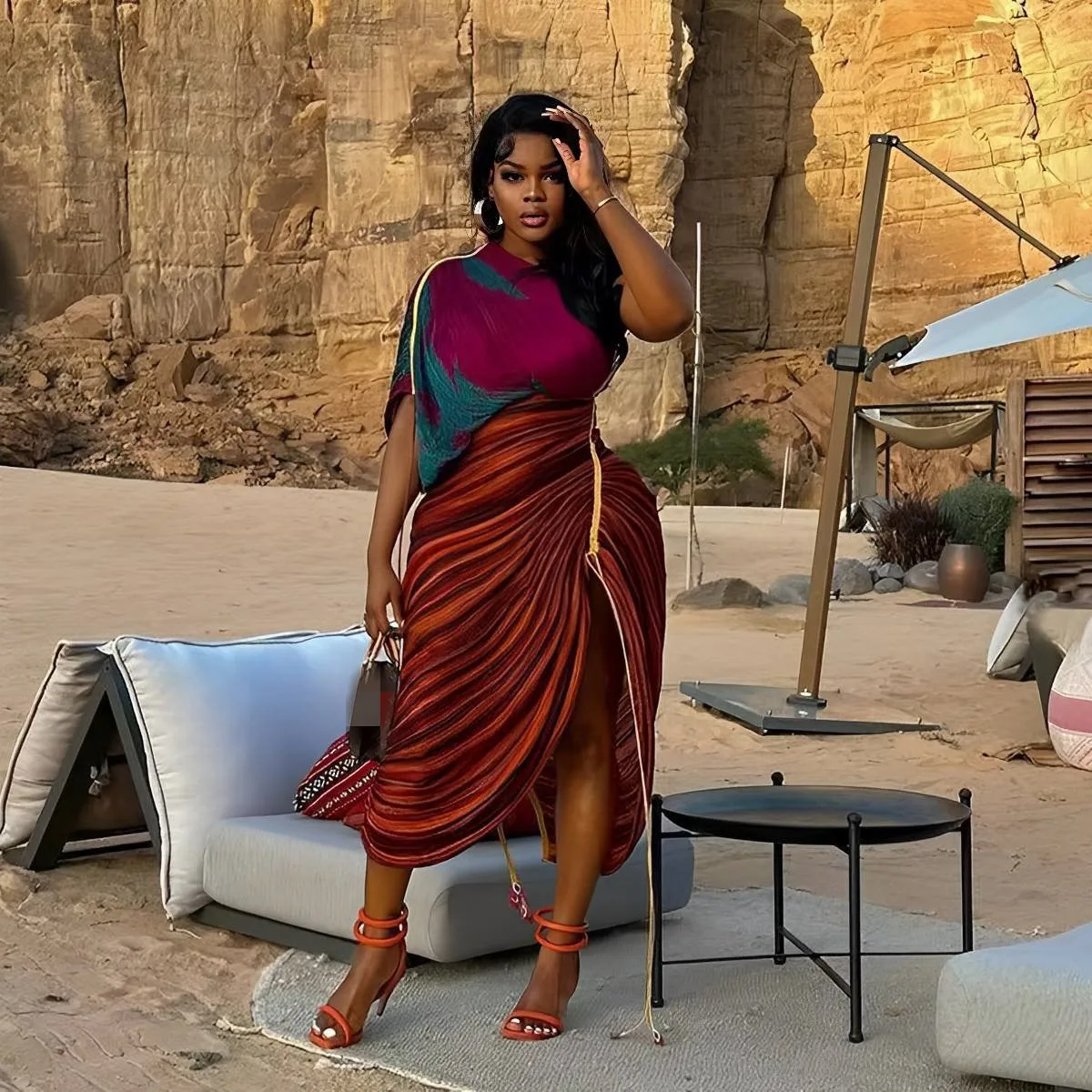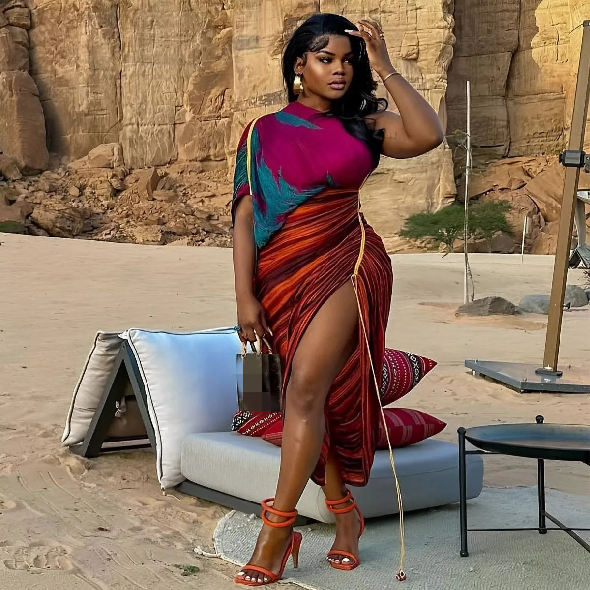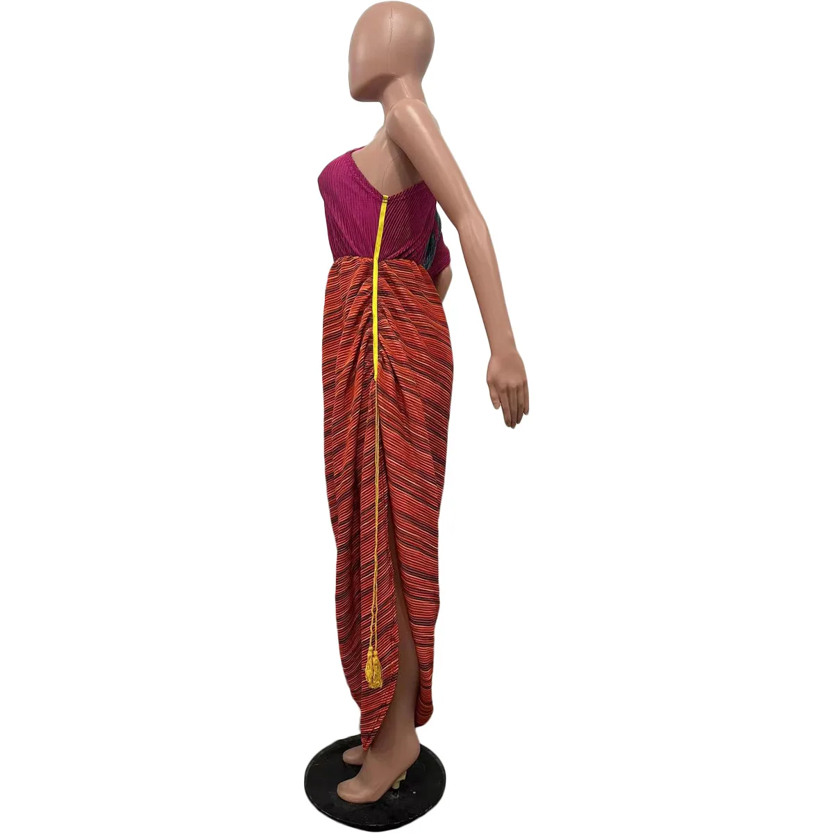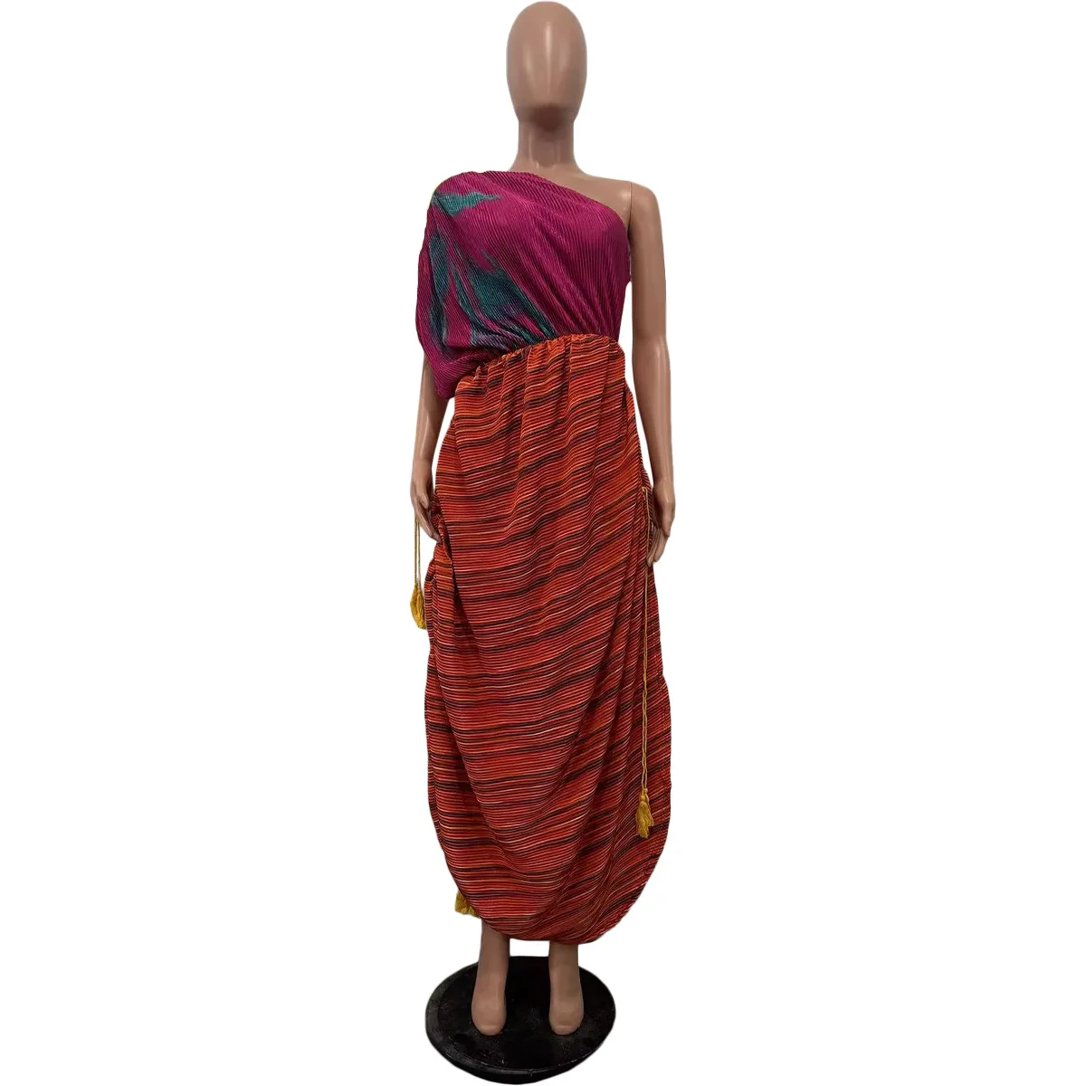 D8561 Women'S Positioning Printed Multi-Color Pleated Irregular Long Maxi Dress Sleeveless Elegant Women Dresses
