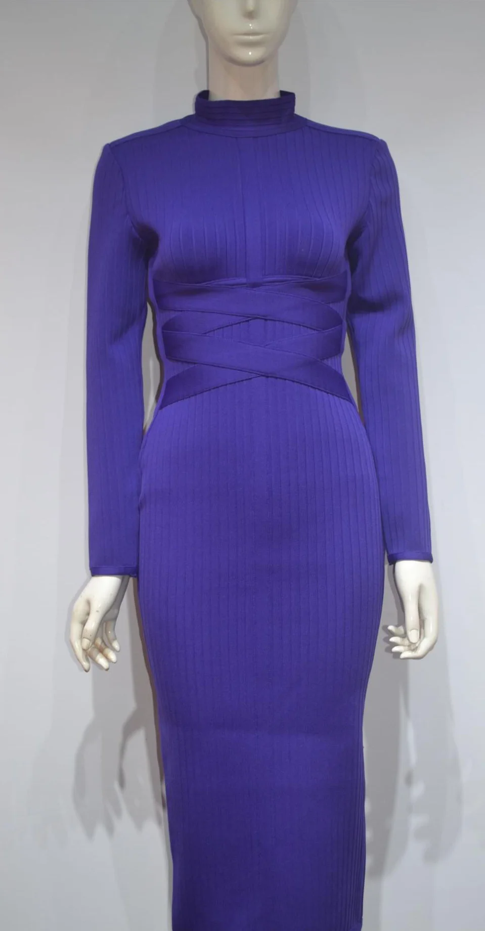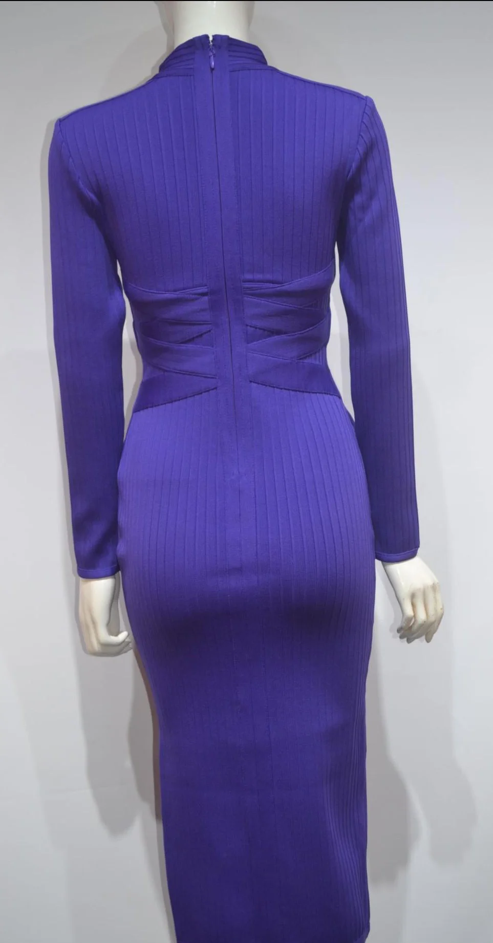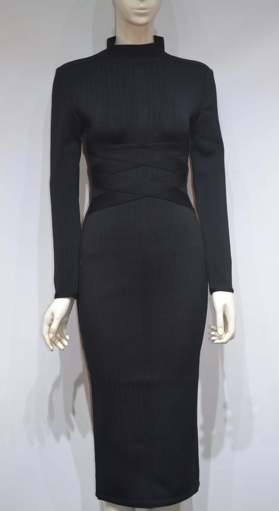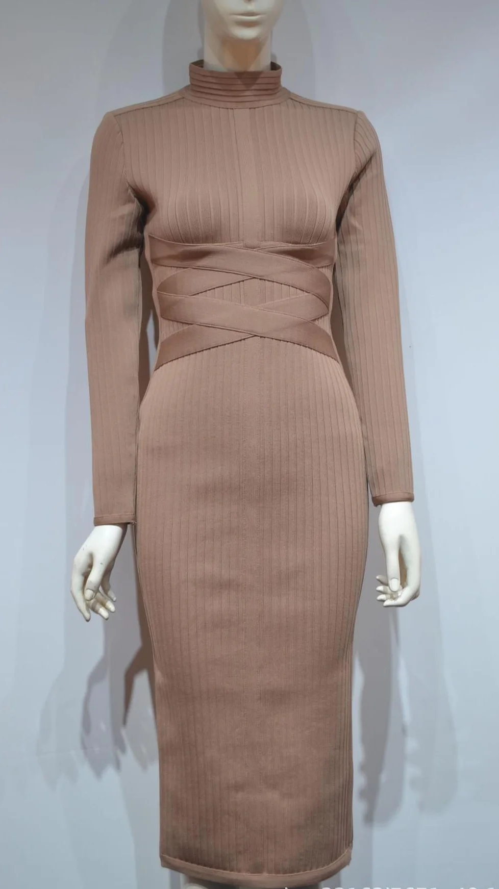 D8755 Women elegant high neck knitted long stretch bandage dress 5 color wholesale evening dress
