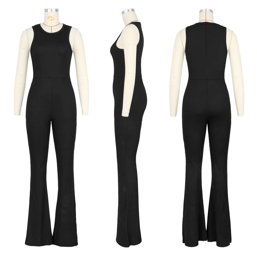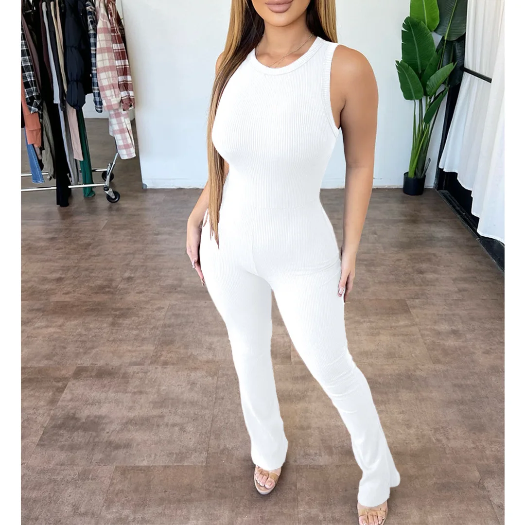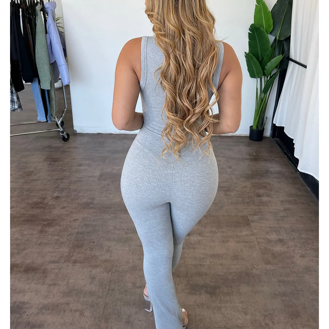 DAMOCHIC One Piece Zipper Skinny Women Club Wear Jumpsuit Sleeveless Modest Mujer Elegante Bodycon Ribbed Jumpsuit Women 2023