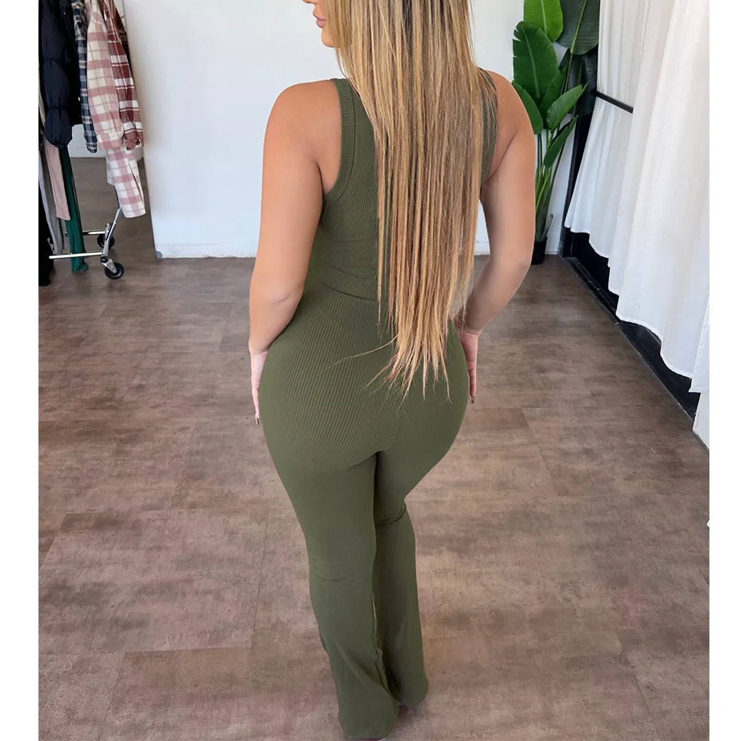 DAMOCHIC One Piece Zipper Skinny Women Club Wear Jumpsuit Sleeveless Modest Mujer Elegante Bodycon Ribbed Jumpsuit Women 2023 Wholesale Supplier