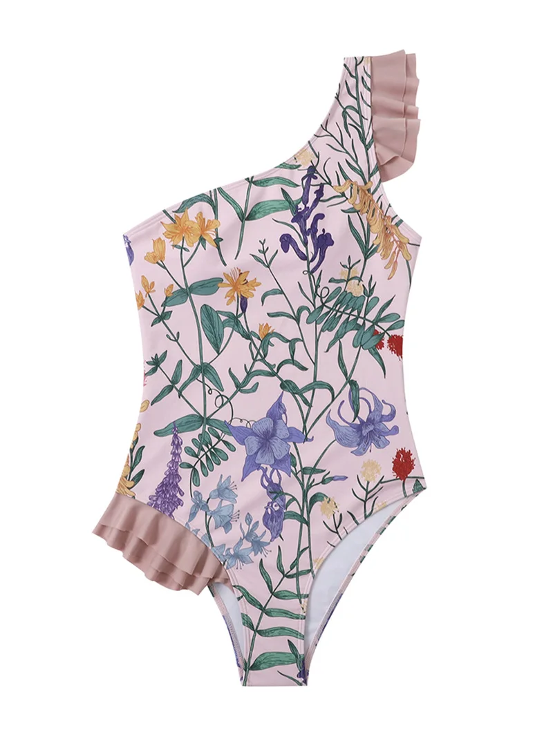 DAMOCHIC Ruffle One Shoulder Swimsuits with Swimwear Skirt Summer Printed Beach Wrap Cover Up 1 Piece Bathing Suit 2023 Women Supplier