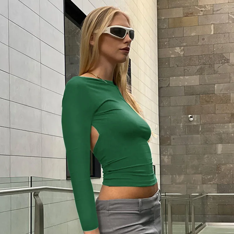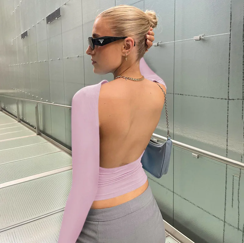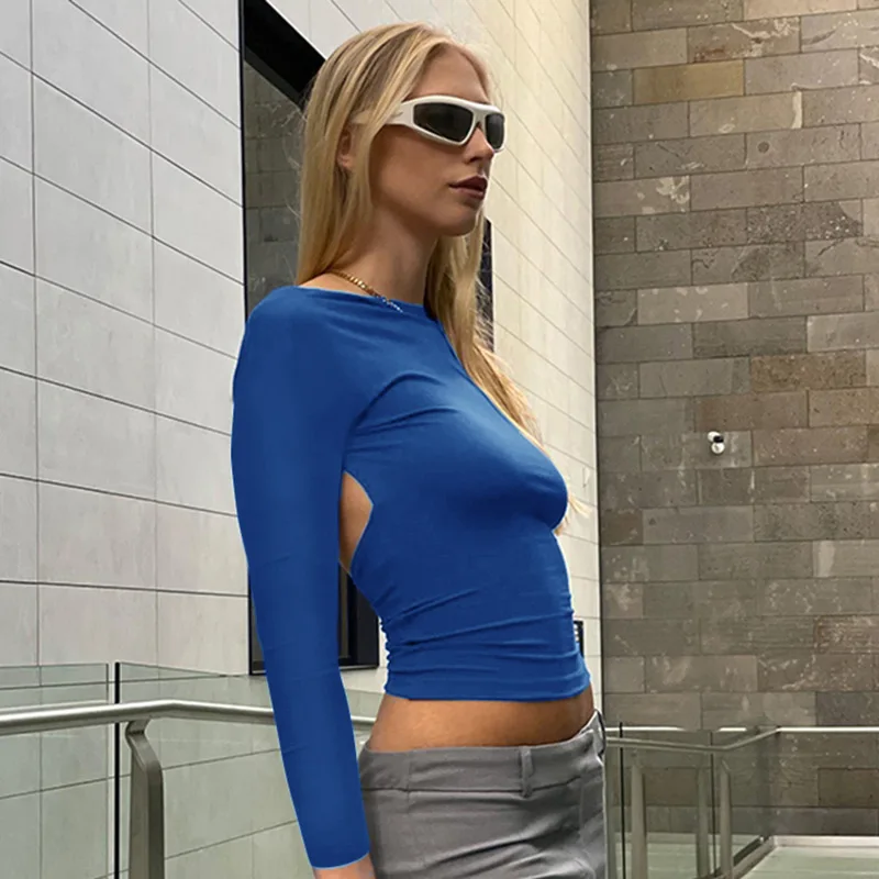 DAMOCHIC Trending T Shirt 2023 New Design Solid Color Backless Tee Fall Skinny Basic Crop Tops Long Sleeve T Shirt Custom Logo Wholesale Supplier