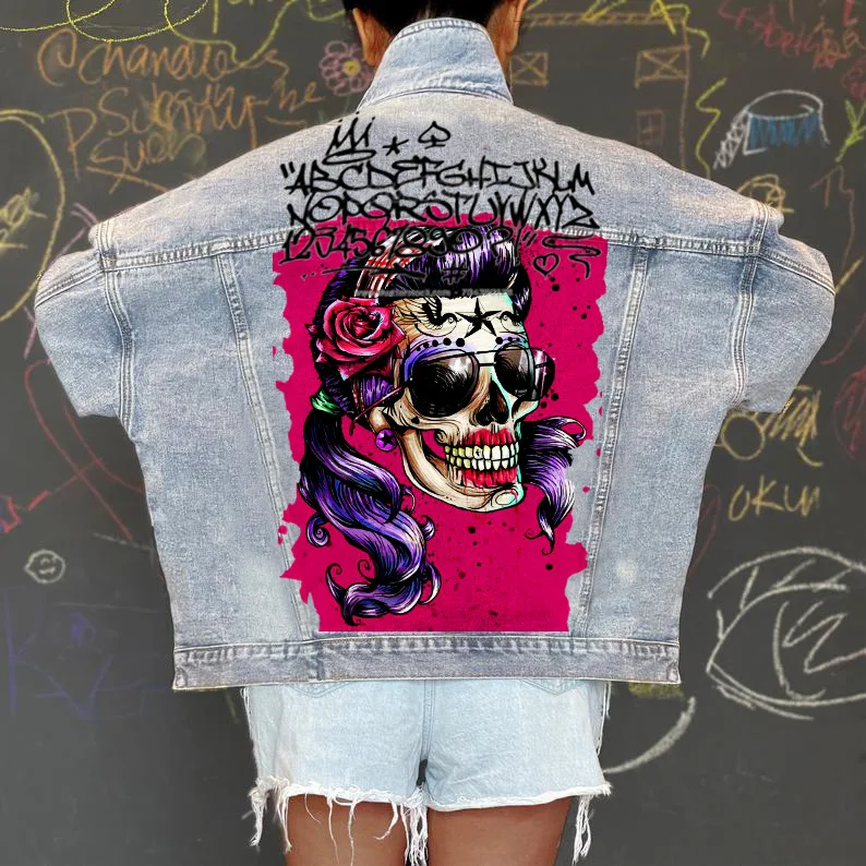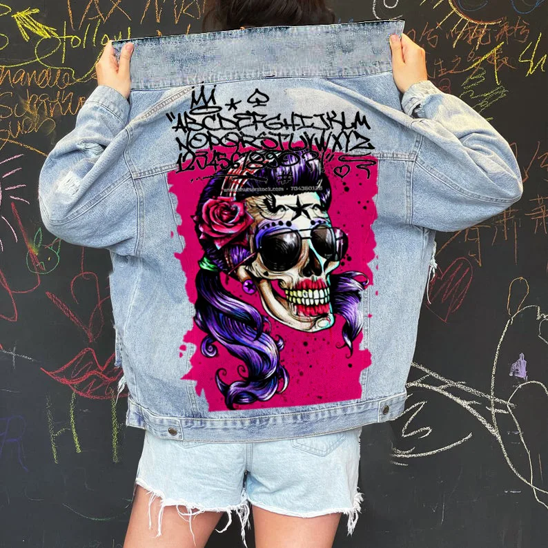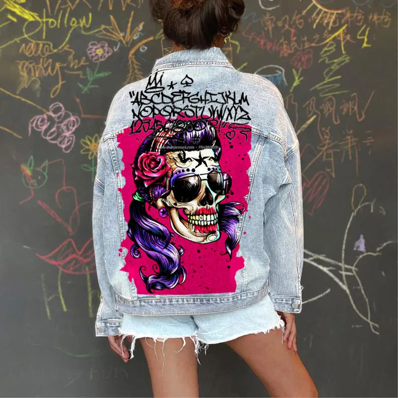 DAMOCHIC Trendy Street Graffiti Denim Jacket Dropped Shoulder Casual Fall Coats Long-Sleeved Customs Tops Long Jackets for Women