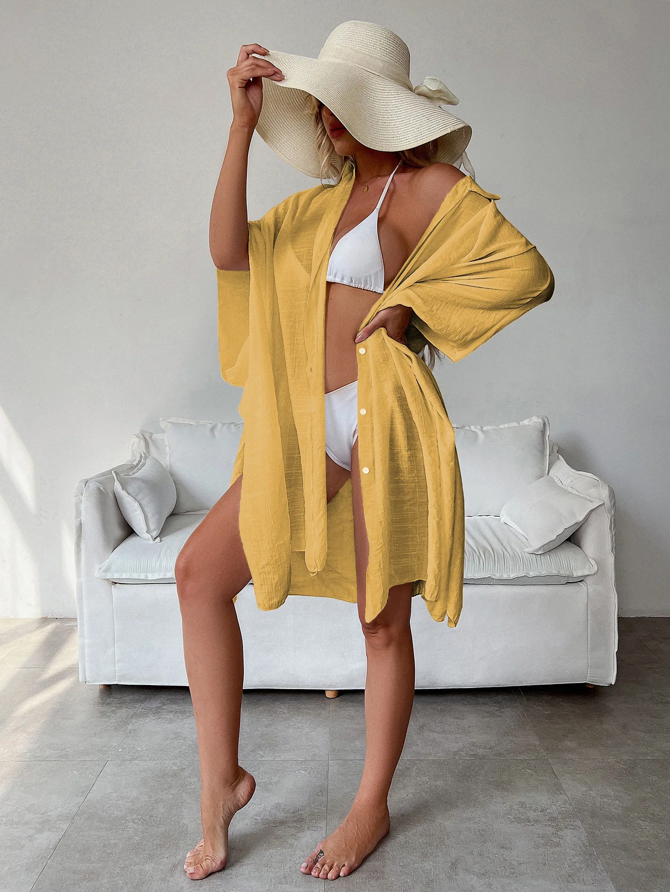 DAMOCHIC Wholesale Casual Loose Beach Shirt Ladies Oversized Swimsuit Cover Up Solid Color Bikini Beach Cover Ups for Women 2023