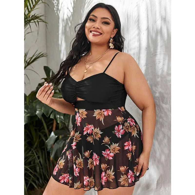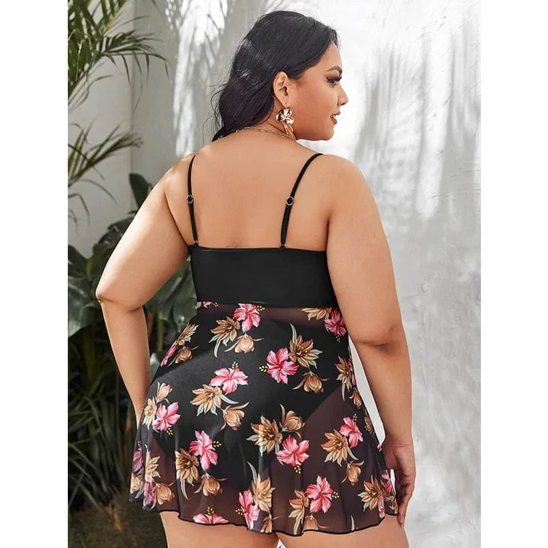 DAMOCHIC Wholesale Swimsuit for Fat Women Summer Floral Print Mesh Hide Belly Bikini Set Plus Size Beach Wear Tankini Set 2023