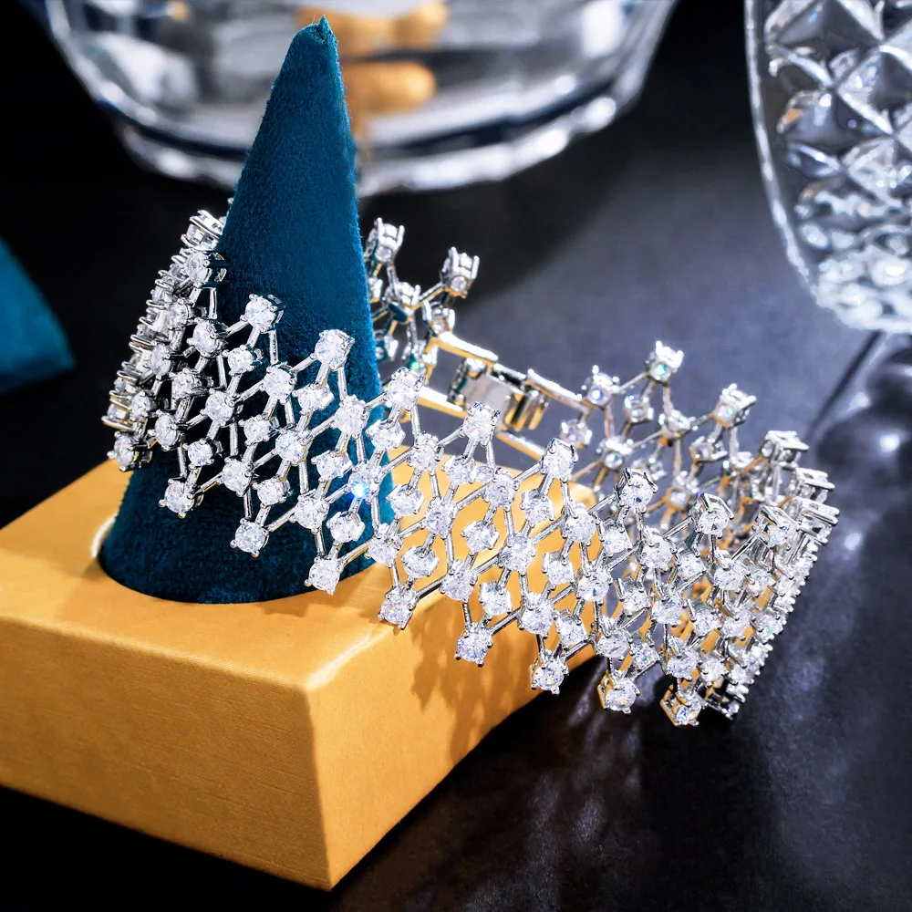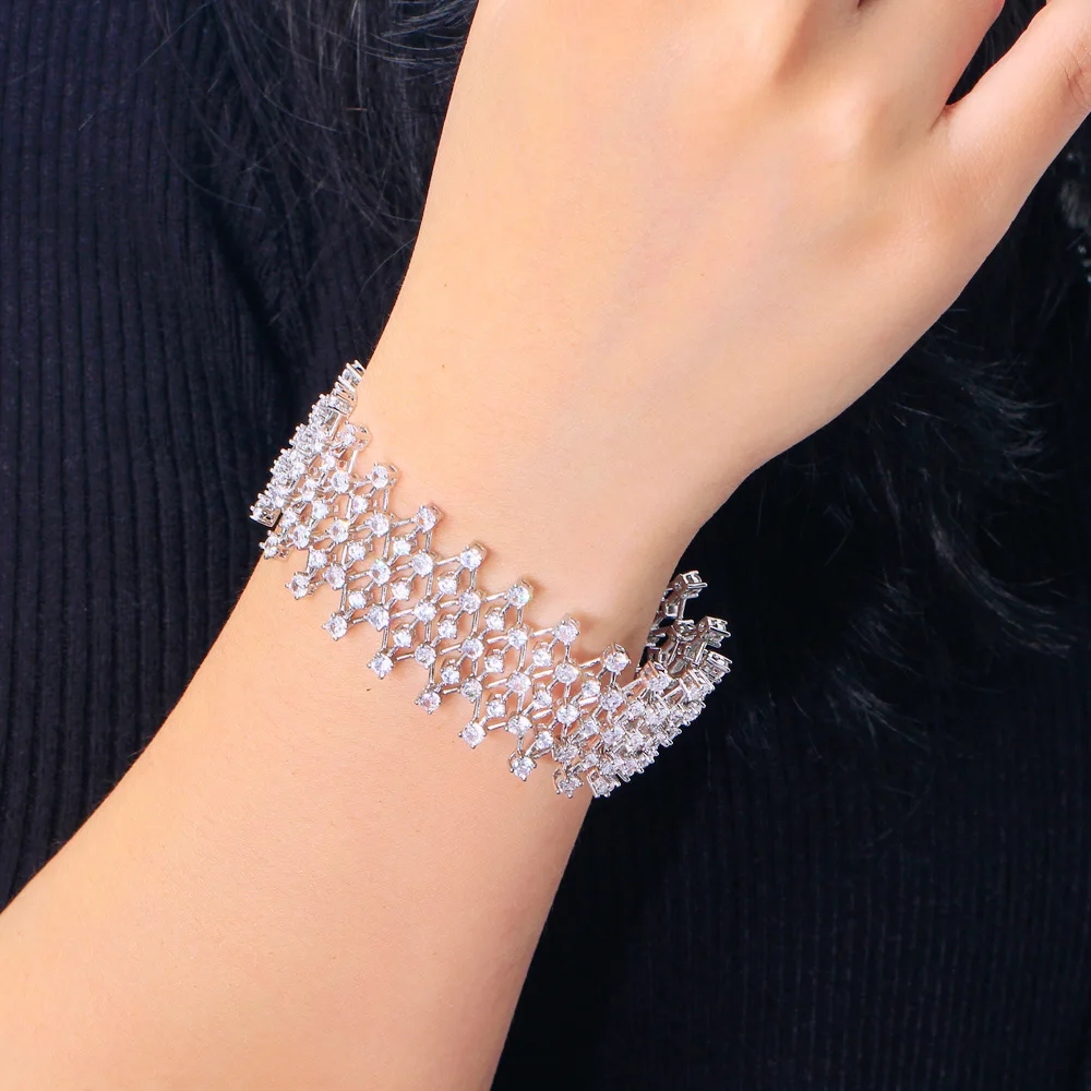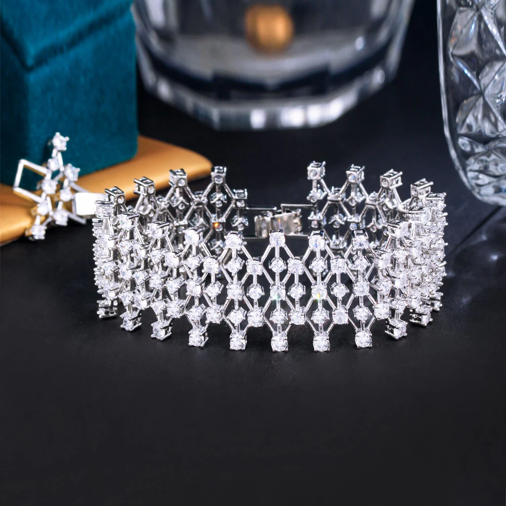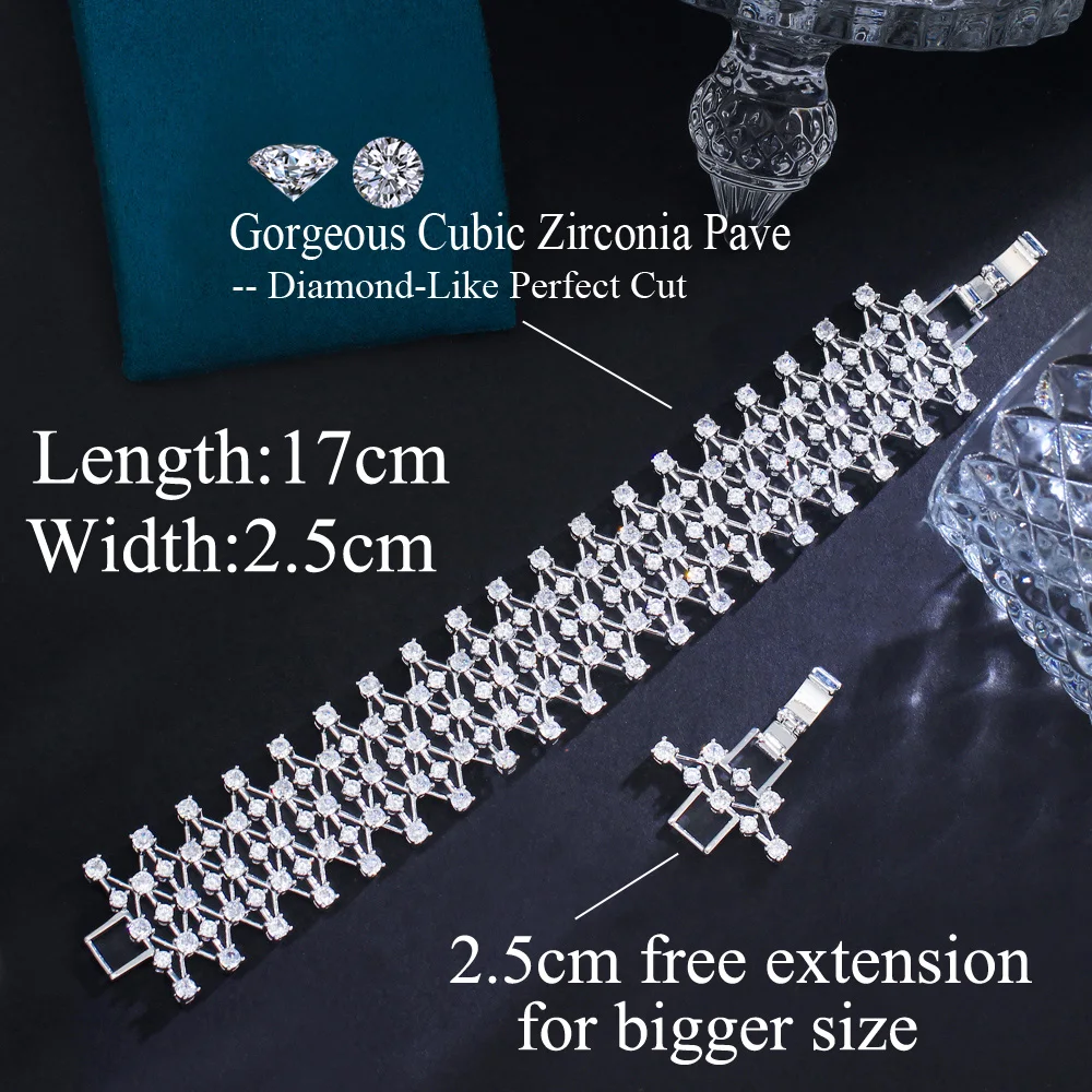 Dazzling Cubic Zirconia Stone Hollow Jewelry Chunky Bling Fancy Big Wedding Dress Bracelet for Women Bridesmaid Accessories