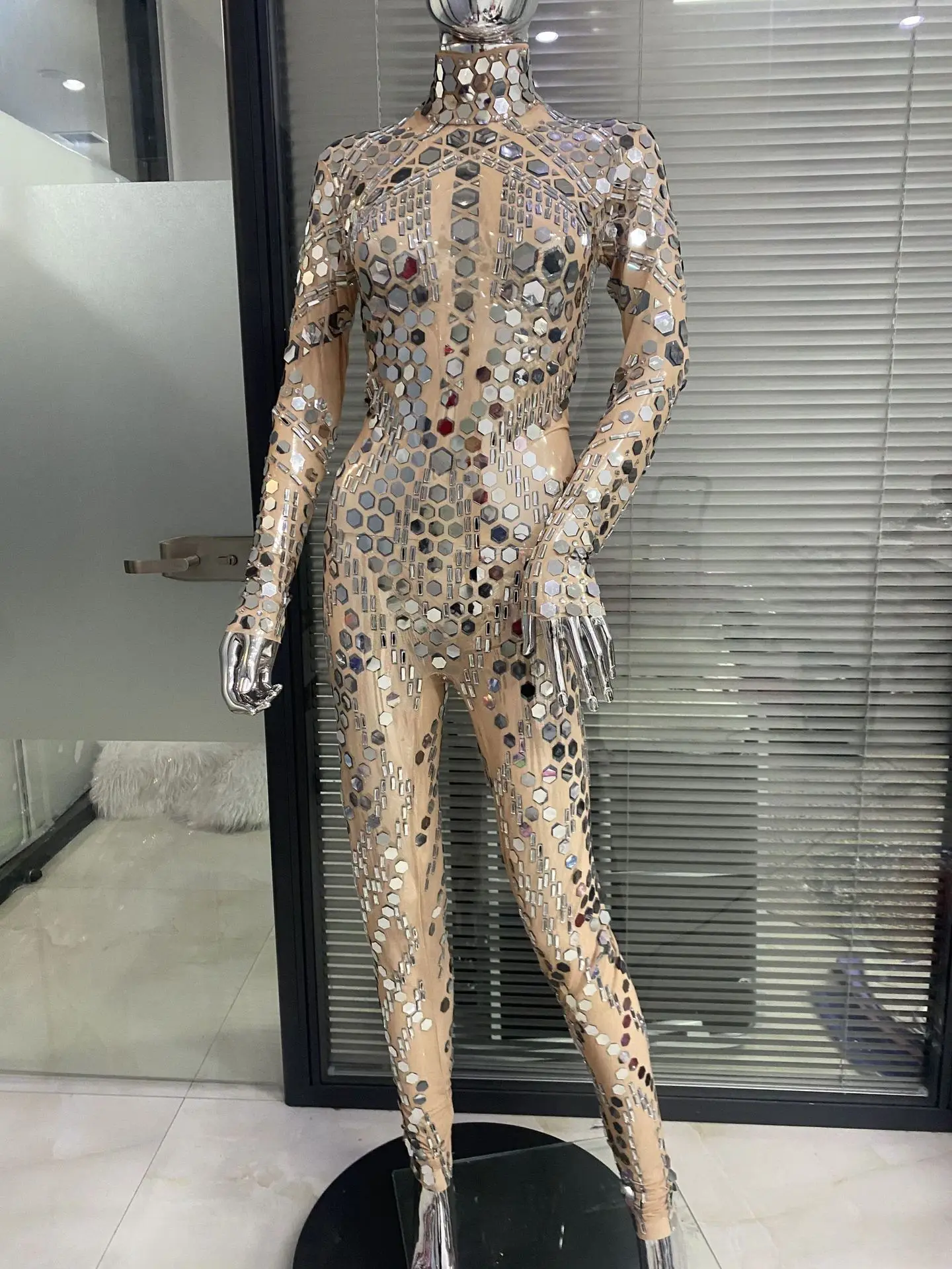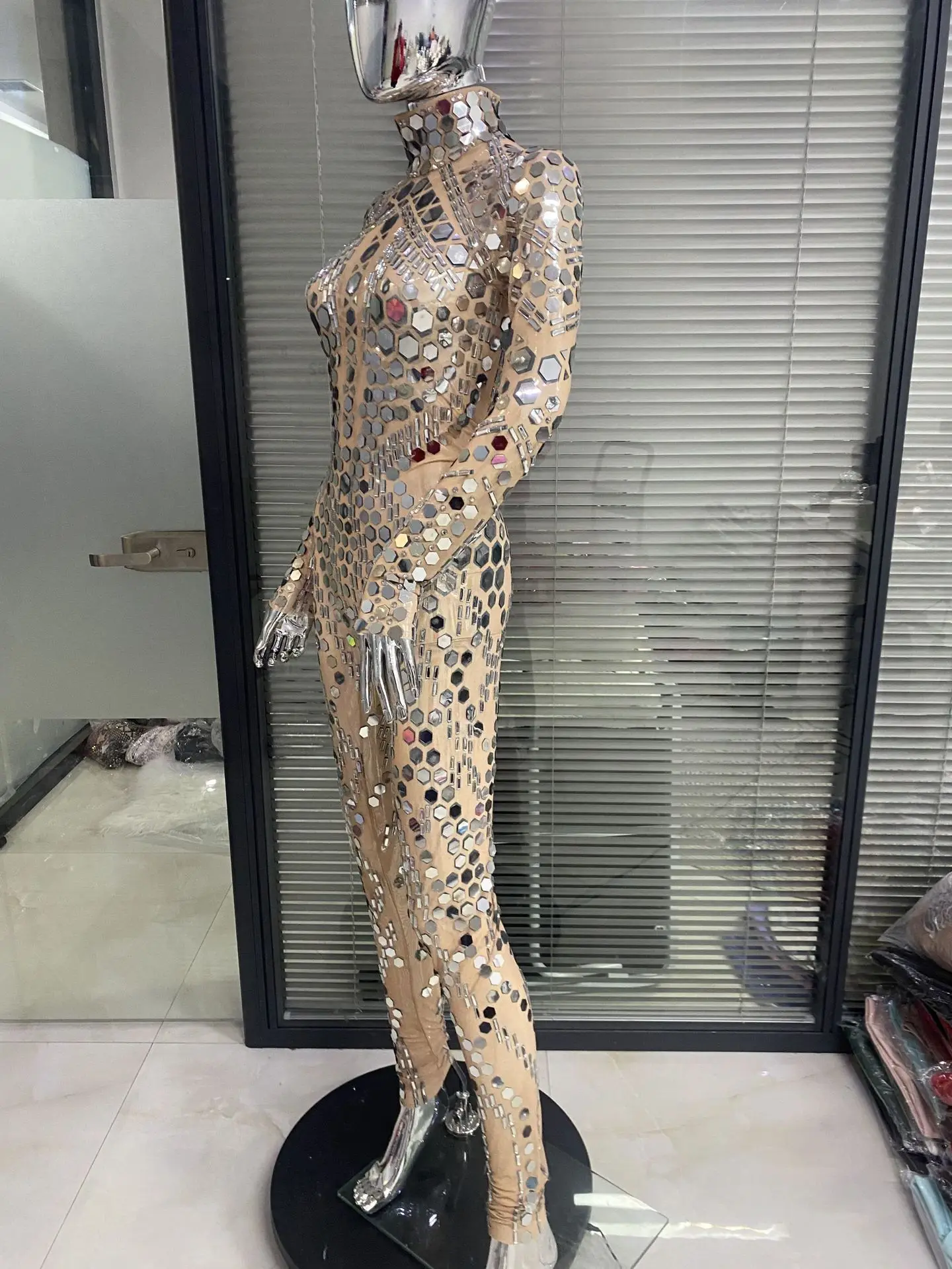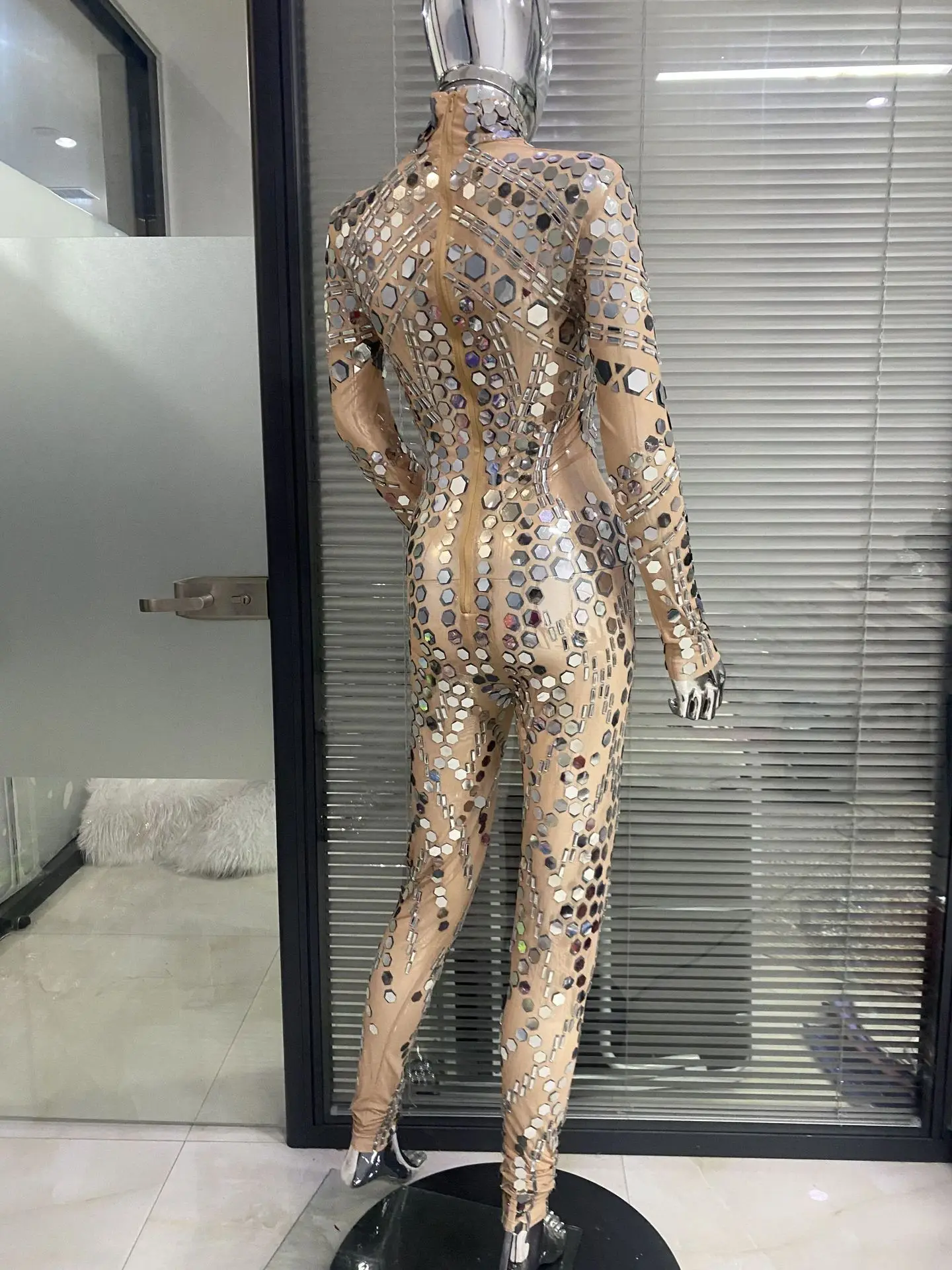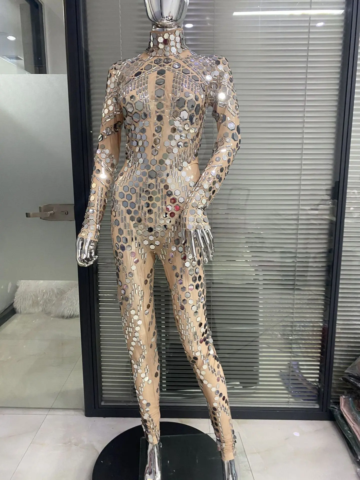 DDFS 2023 Girls Spring Clothing Shiny Sequin Glitter Mirror Rhinestones Bodysuit Women Singer Blinged Dance wear