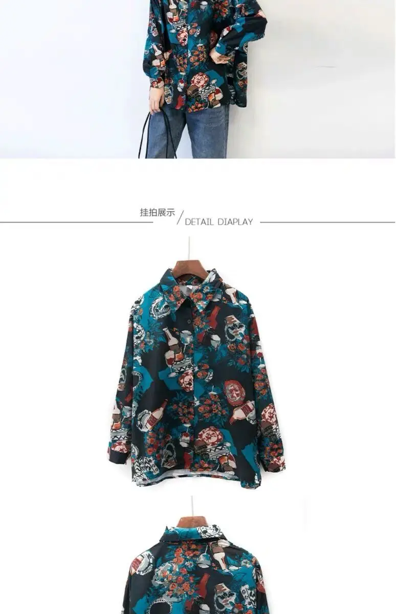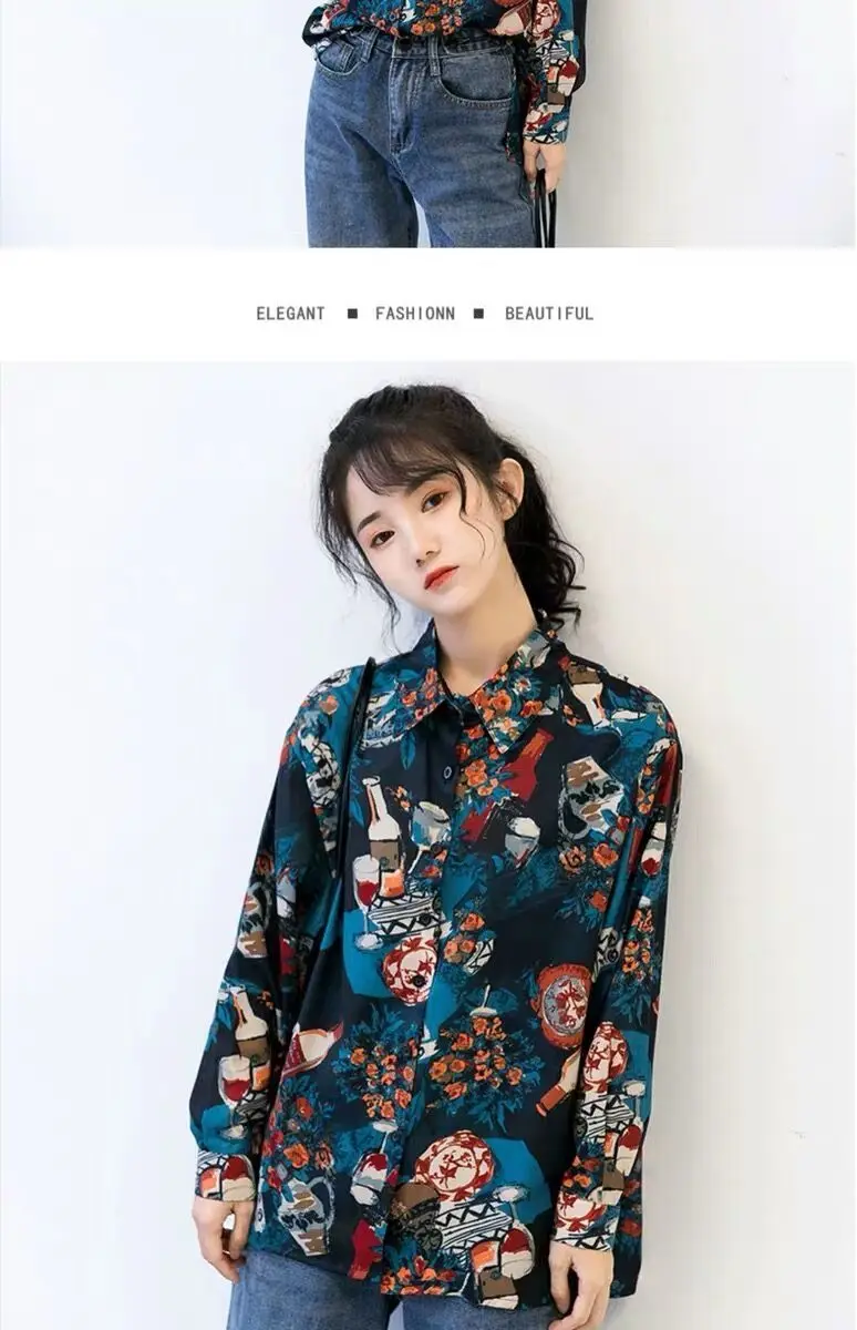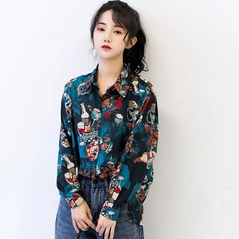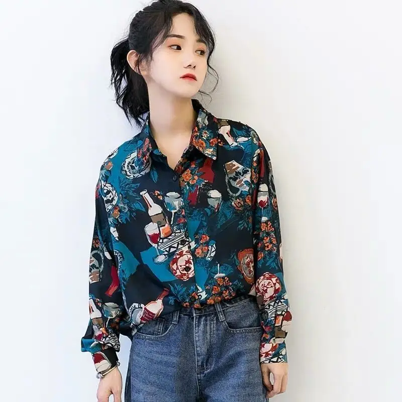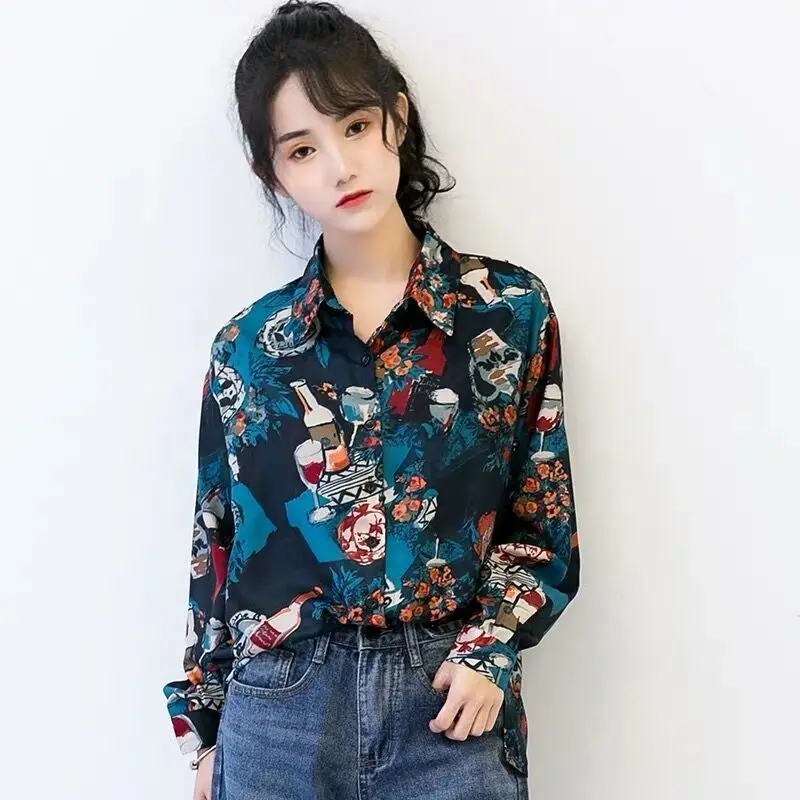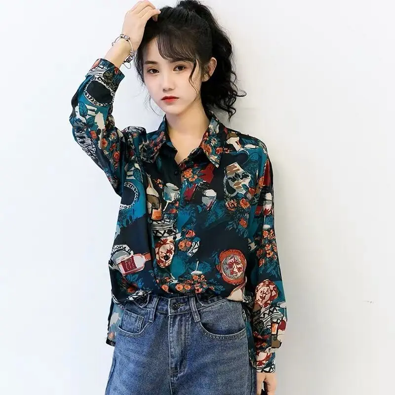 Design Chiffon Printed Shirt Women'S Long-Sleeved 2022 Spring New Retro Student Top Fashion Crop Top Shirts