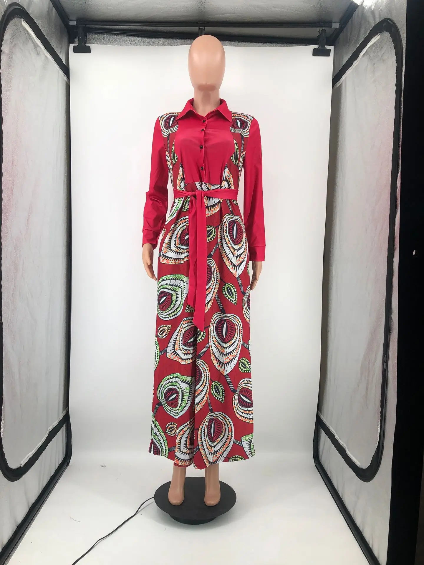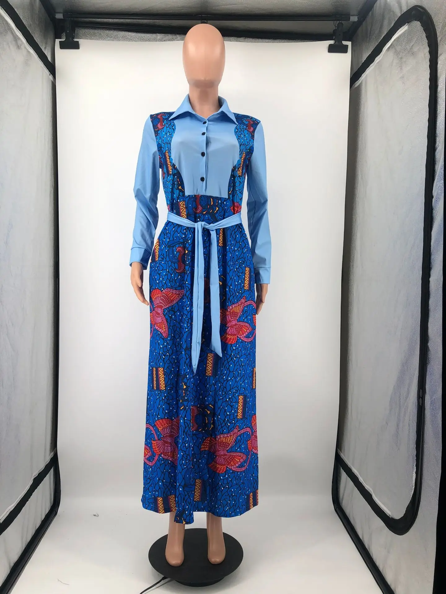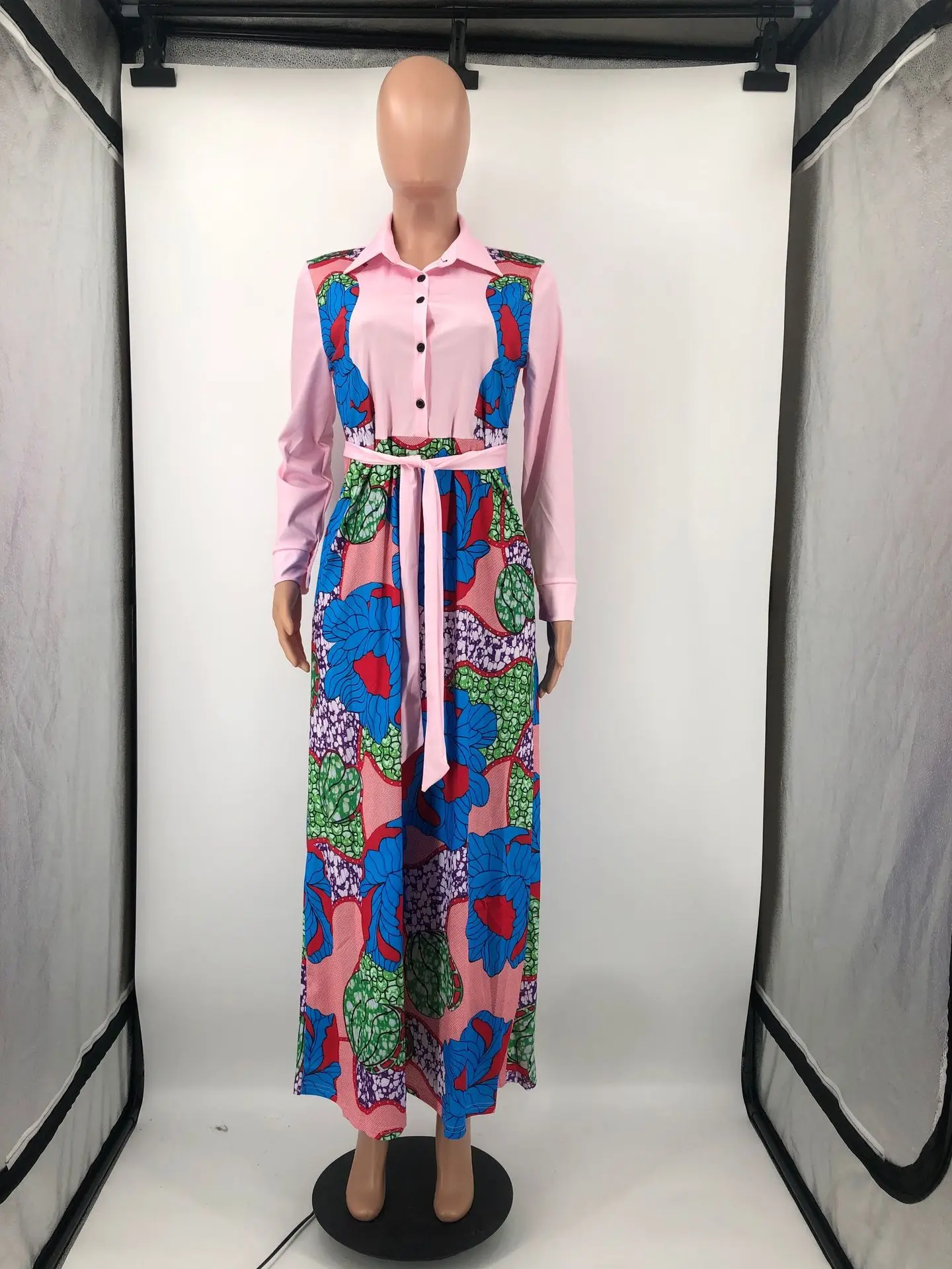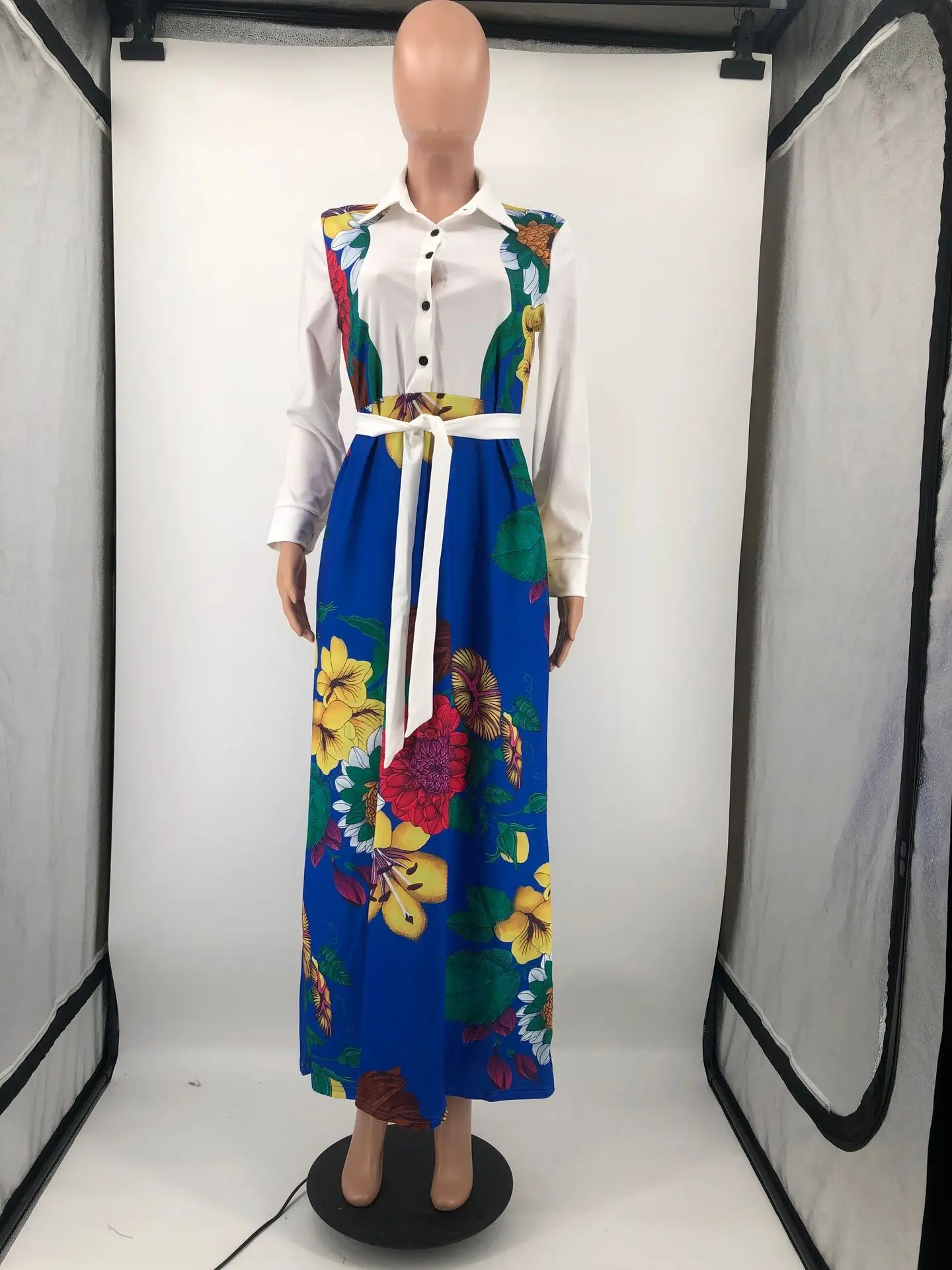 10802-MX88 Flower Printed Maxi African Style Bow Design Casual Dress Lady Sehe Fashion