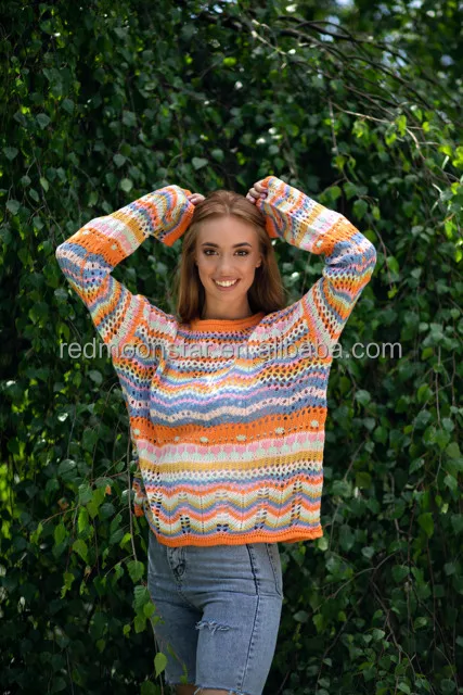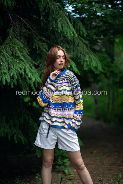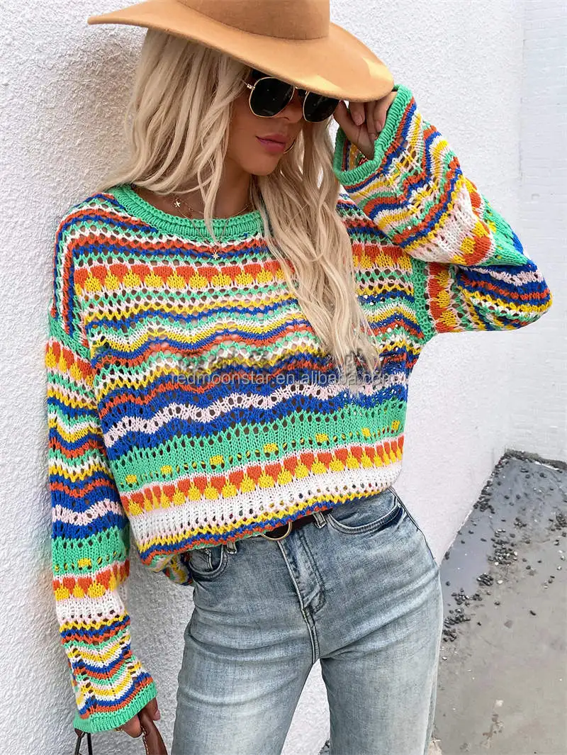 Designer Handmade Autumn New Striped Roundneck Cardigan Women's Loose Pull Over Plus Size Women Sweaters