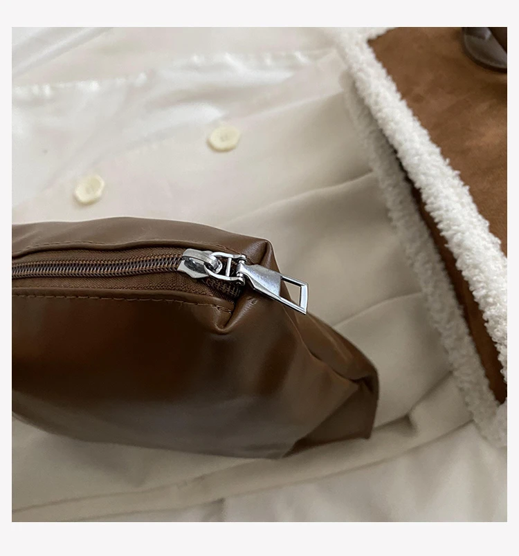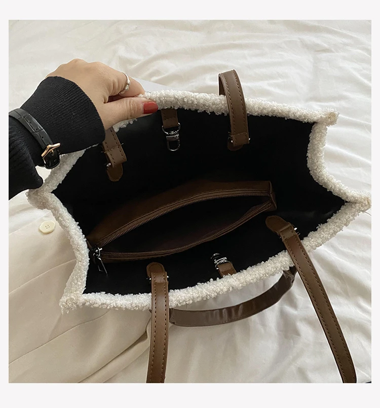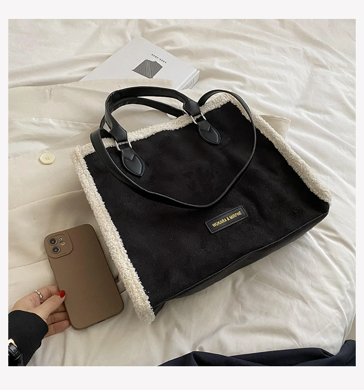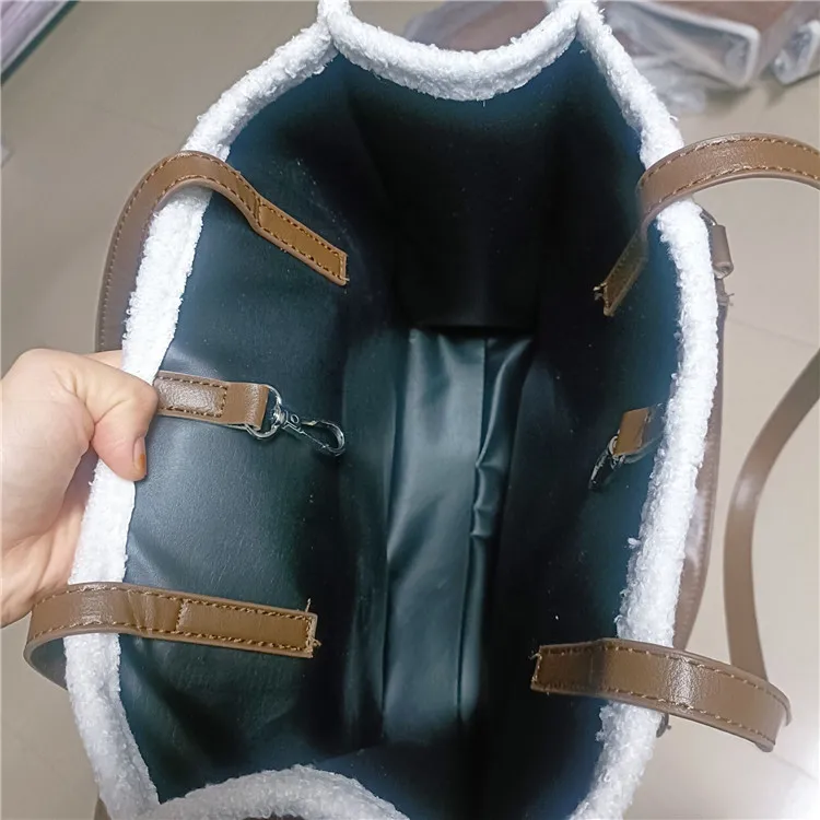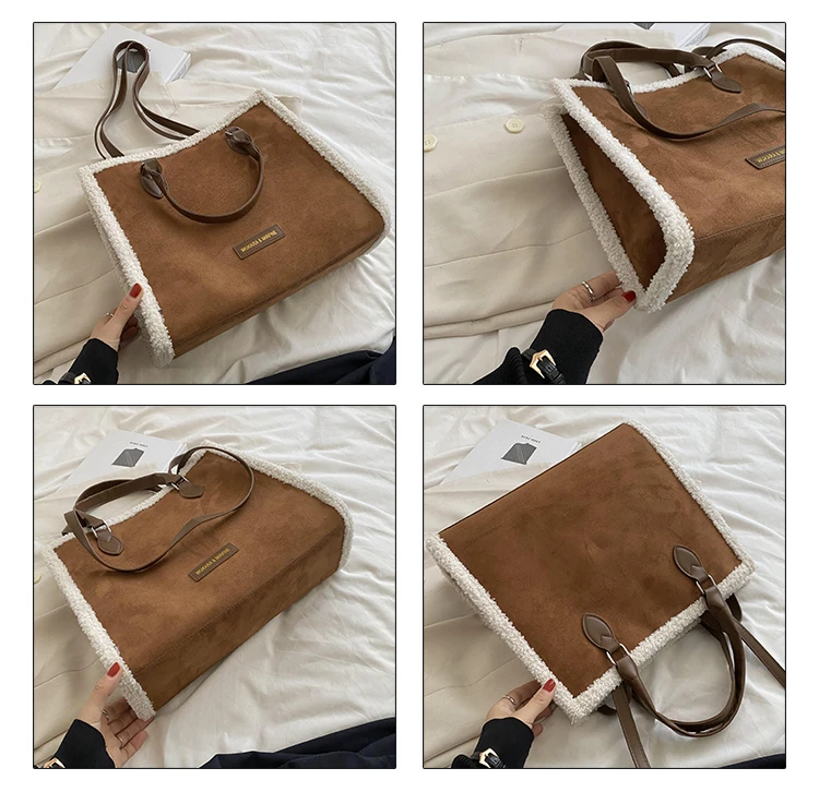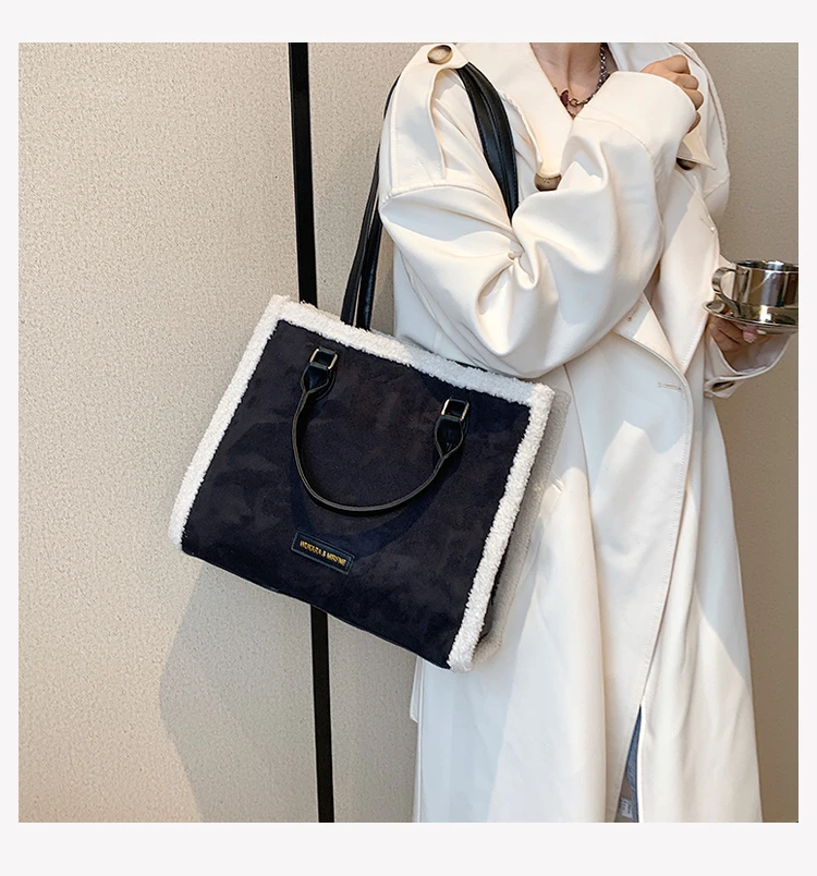 Designer Vegan Leather Tote Bag Big Faux Shearling Trim Inclined Shoulder Bag Lady Suede Handbags for Women Luxury Custom Logo