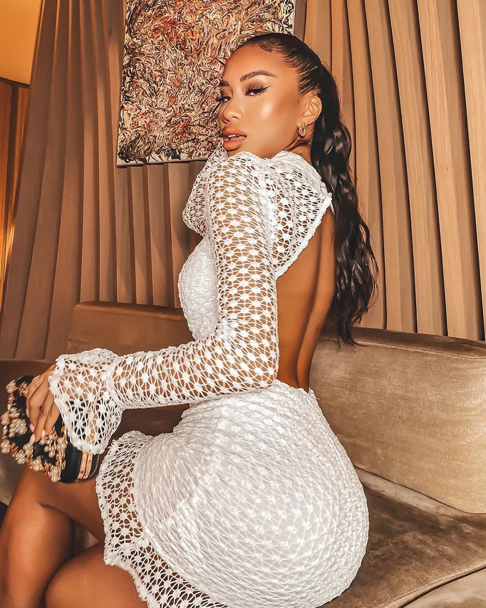 DH7657 Temperament Celebrity Style 2022 New Lace Stitching Dress Sexy Bodycon Mini Dress Hollowed Out Club Party Dress
