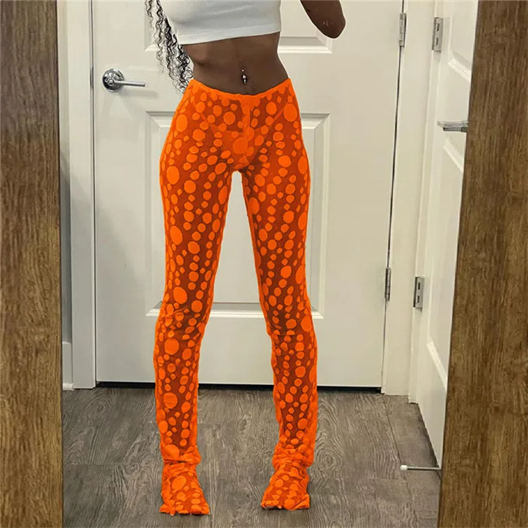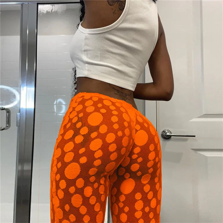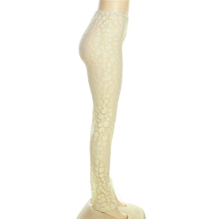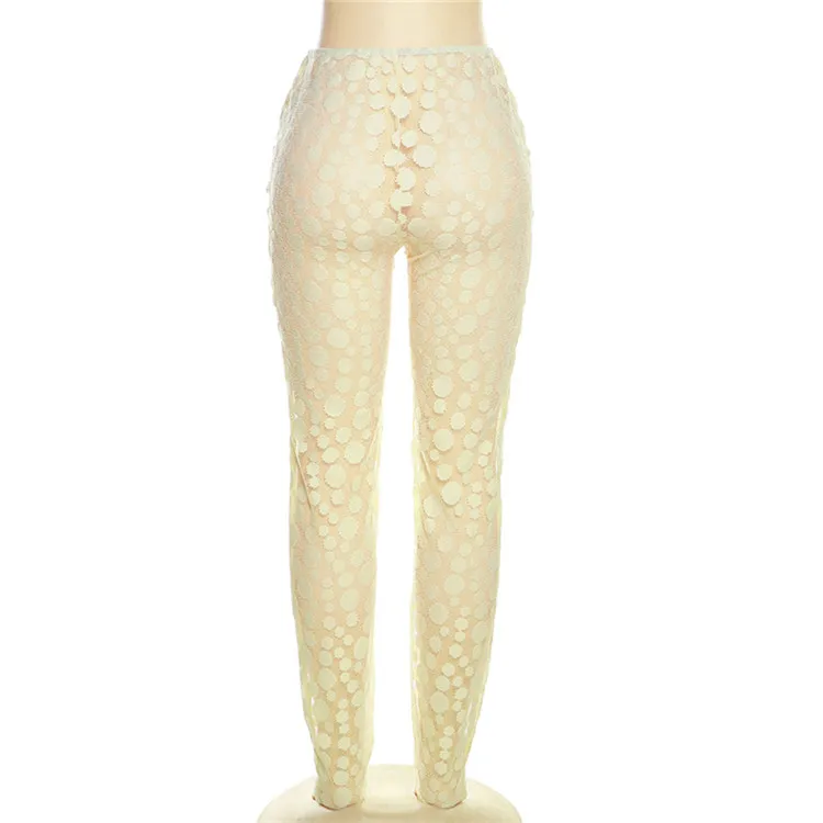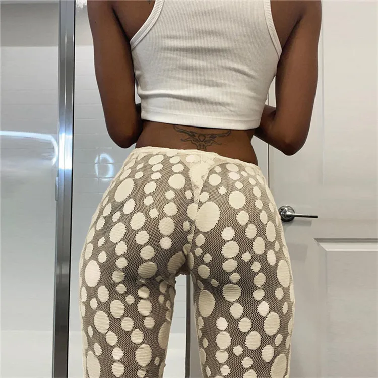 Dot Print Sheer Mesh Y2K Thin Legging Women Pants Fashion Slim Trousers
