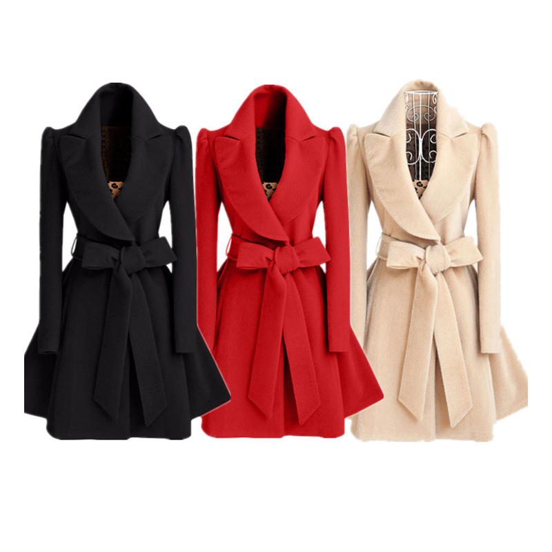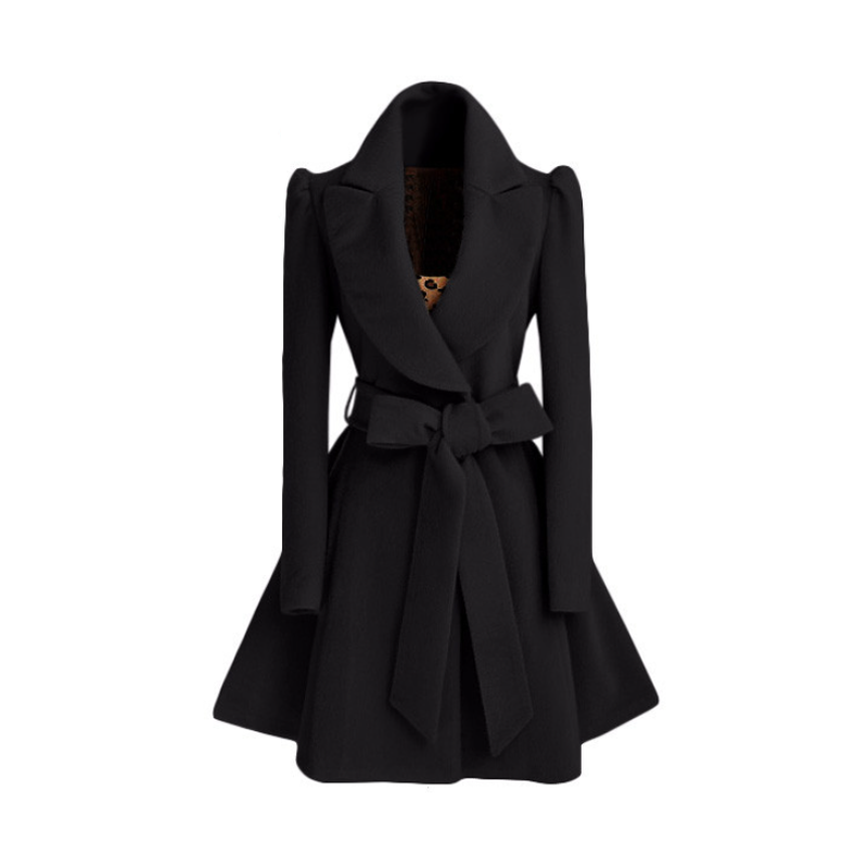 Double-breasted Turn-down Collar Soild Color Slim Fit Long Winter Coats For Ladies Plus Size Women's Clothing
