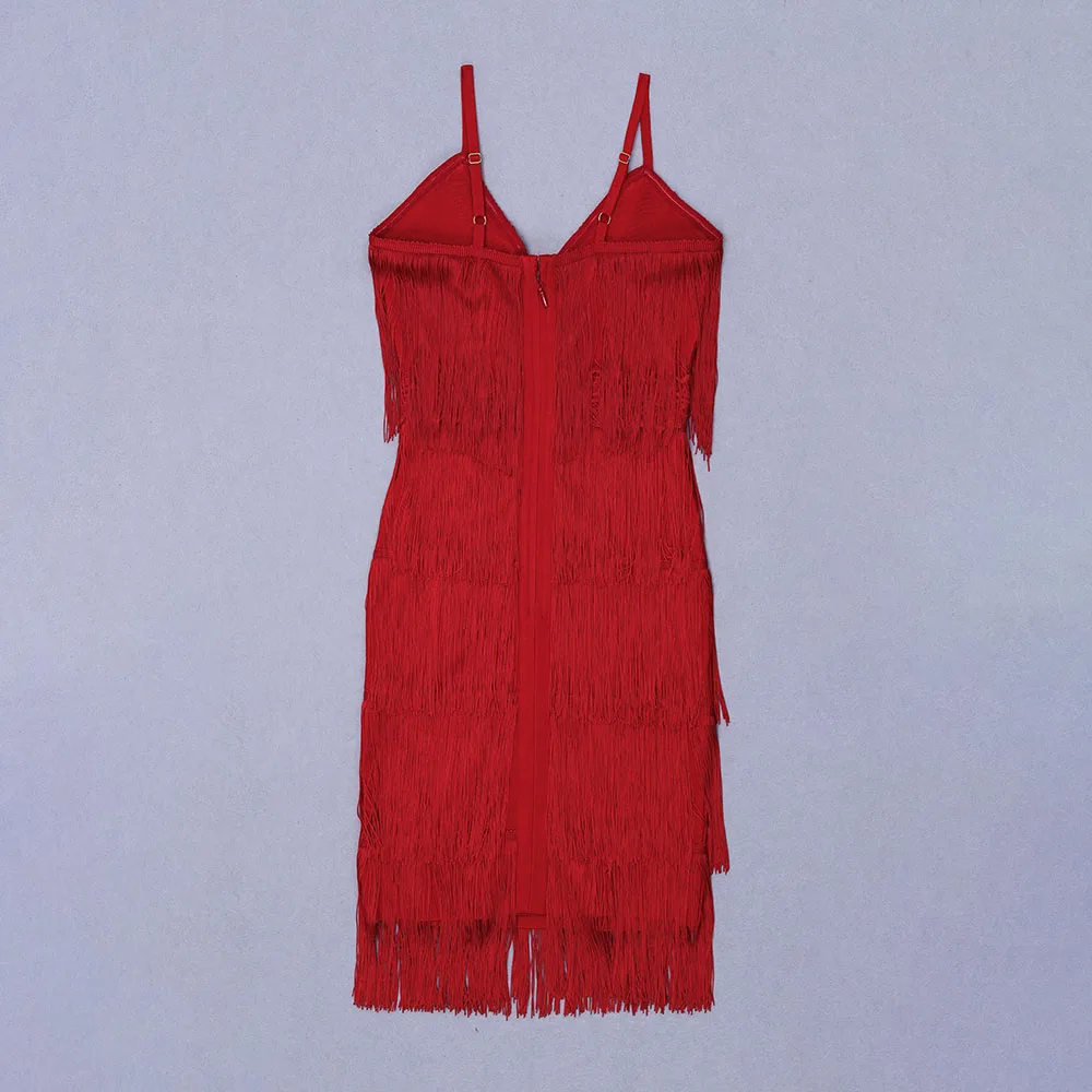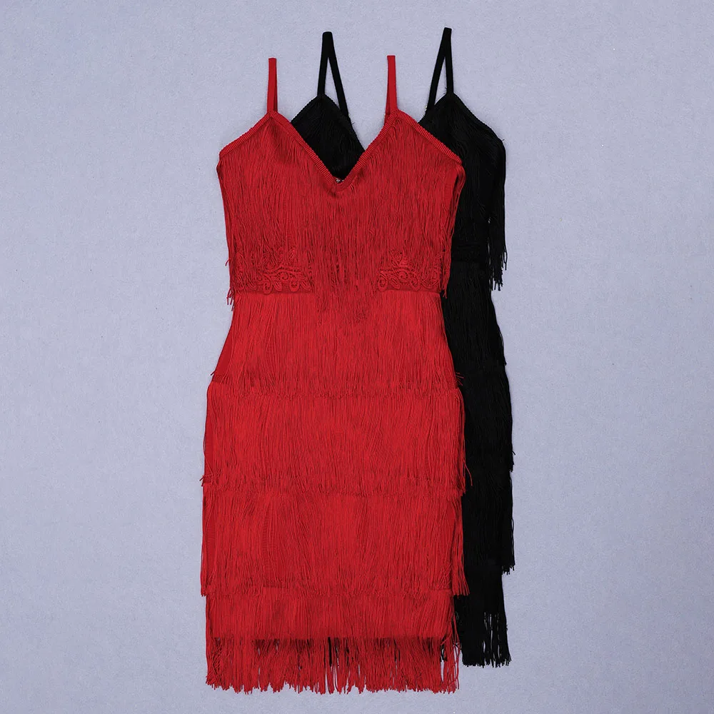 Dresses women lovely girls party v-neck bodycon bandage dress with tassel summer evening party club clothes