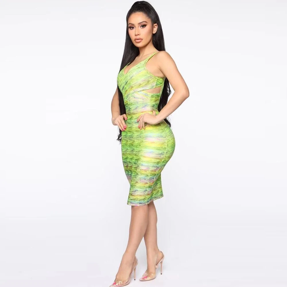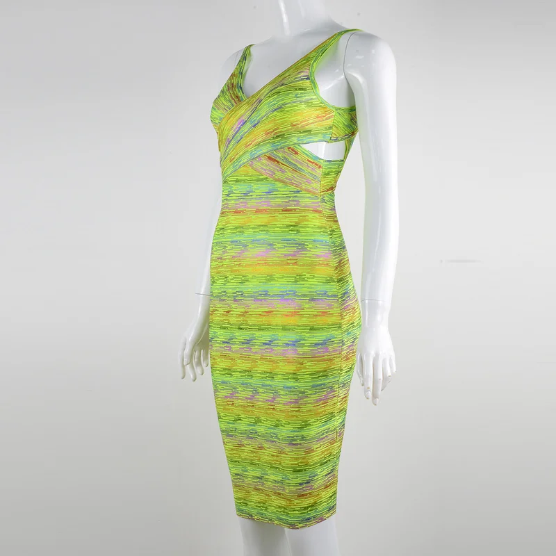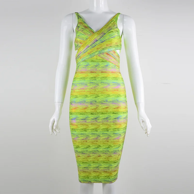 DDresses women fashion v-neck sleeveless green bandage dress bodycon sexy ladies evening party clubwear casual dresses