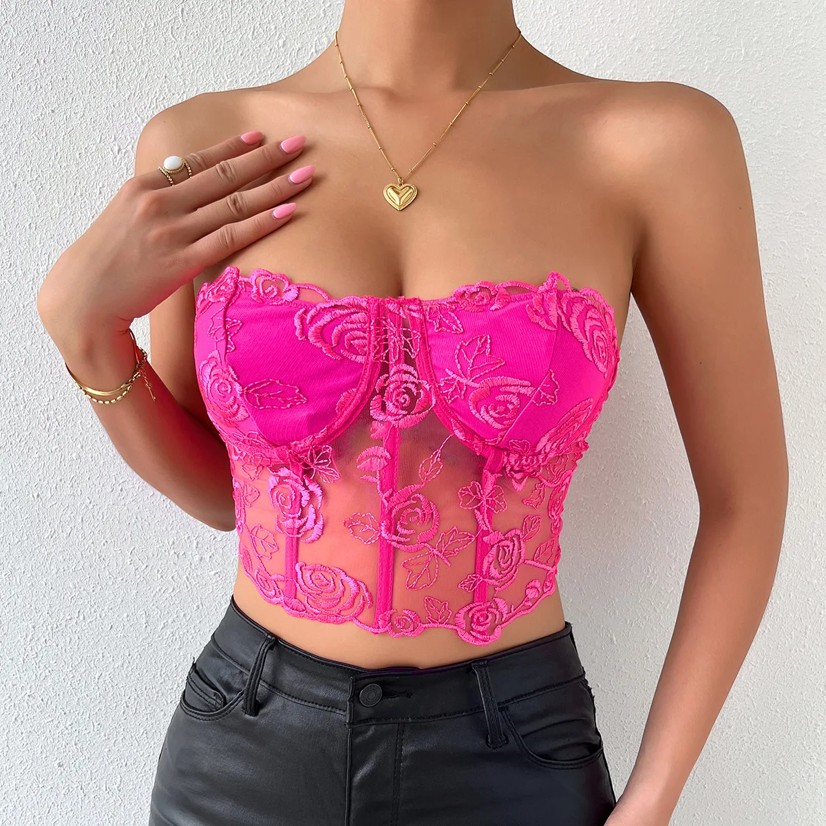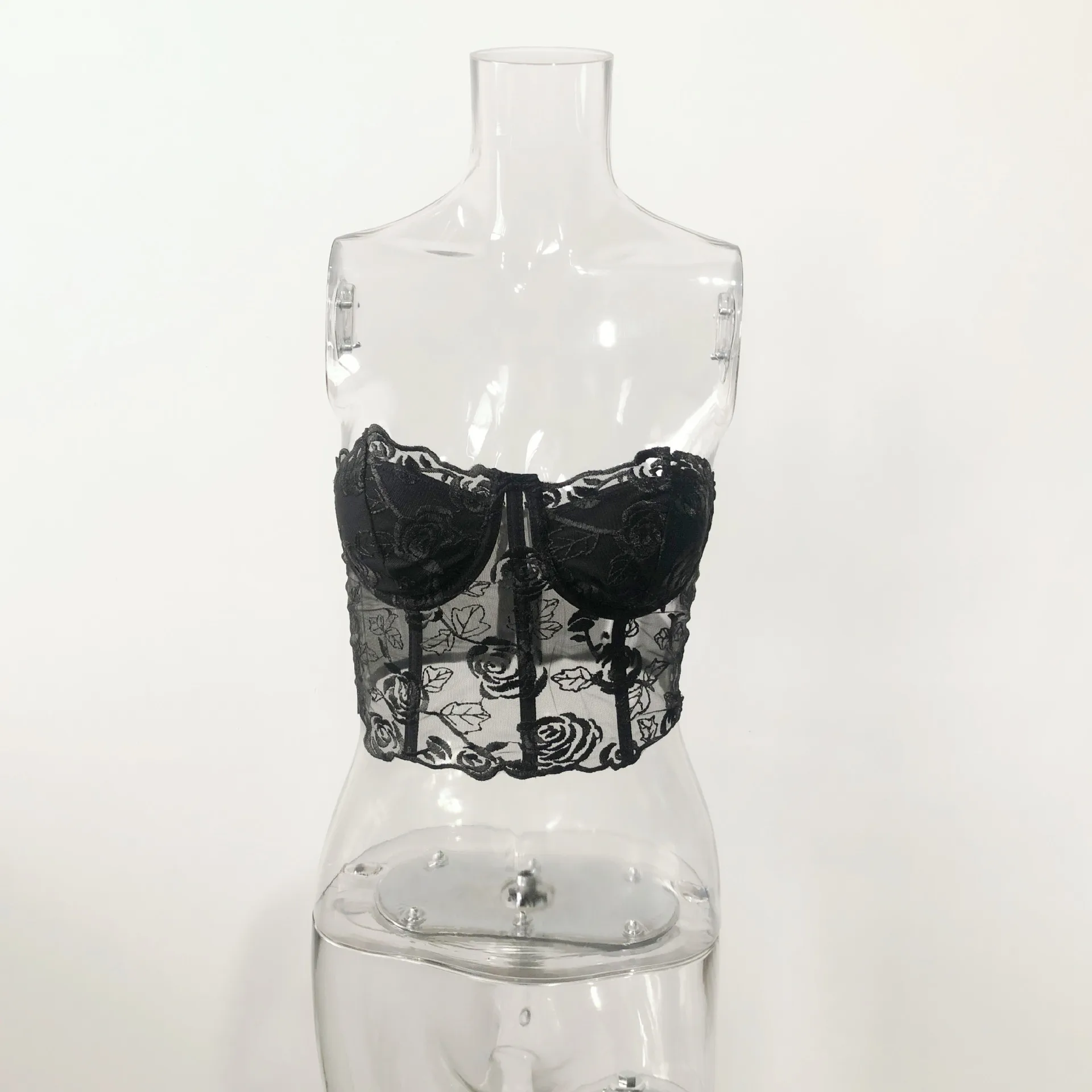 Drop Ship Women's Casual Lace See Through Crochet Zip Up Crop Top Camisole