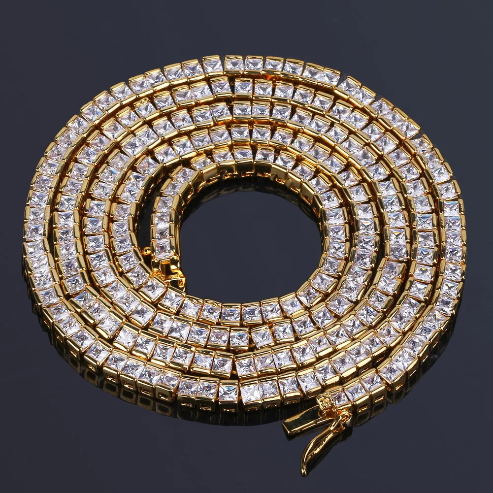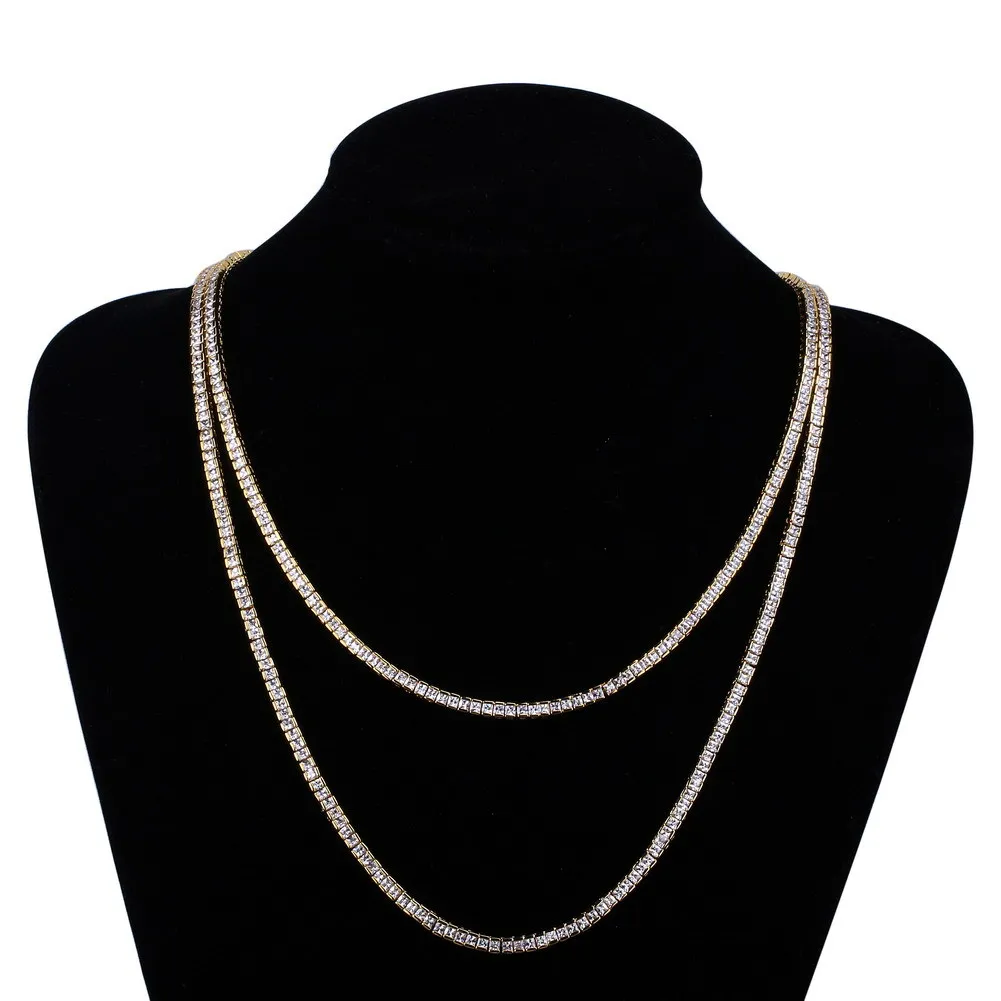 Drop Shipping 4mm Tennis chain necklace women men zircon prong brass high quality jewelry classic 24''-28'' Wholesale hip-hop