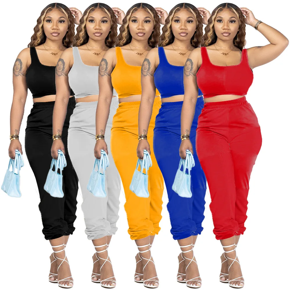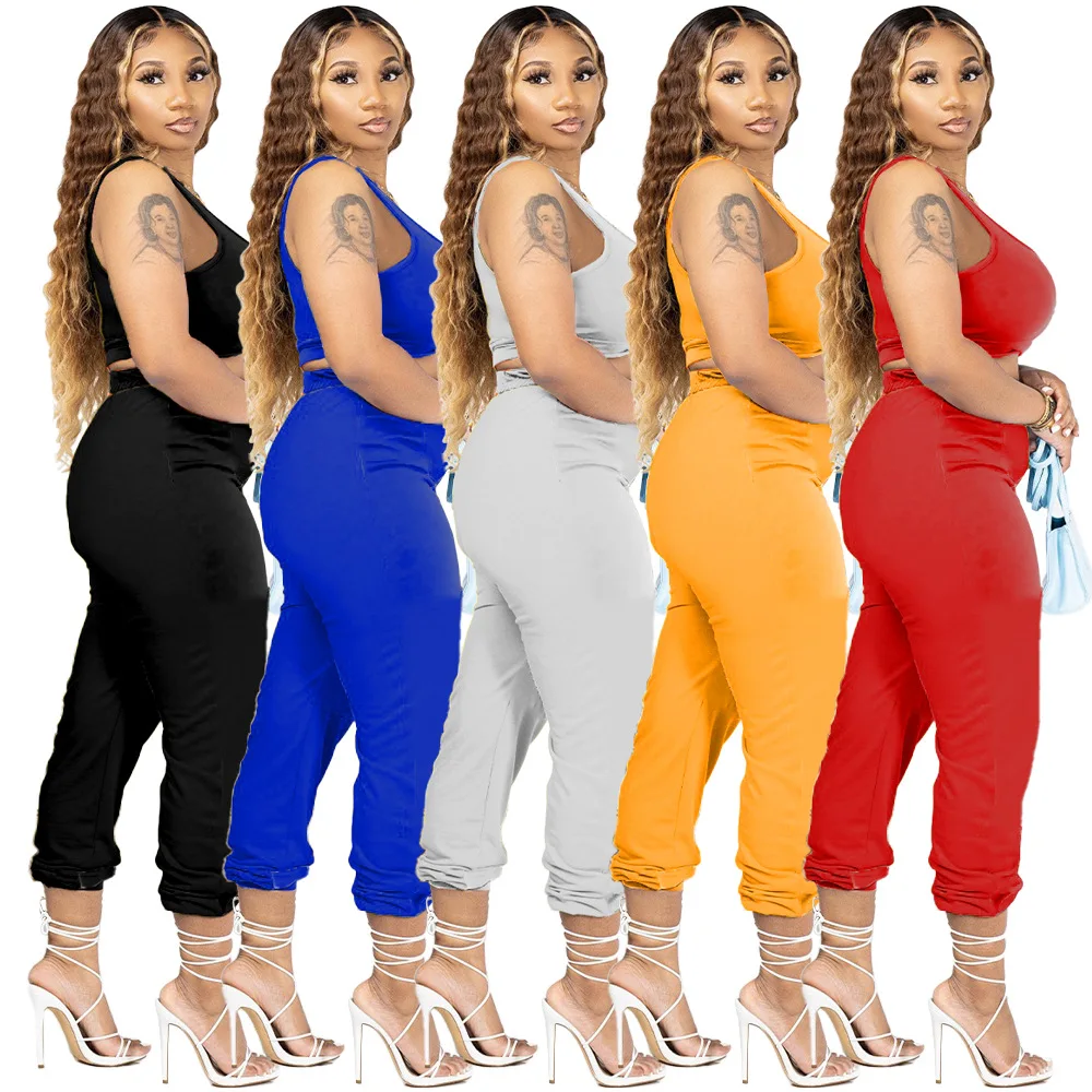 Drop Shipping Products 2023 Casual Sport Suit Sleeveless Vest Top and Pants Set Lady Women Tracksuit 2 Piece Sets