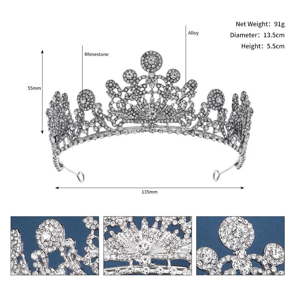 Drop shipping Sparkle New Styles Wedding Bridal Rhinestone Crystal Silver Crown Tiaras for Queens Corona for bride