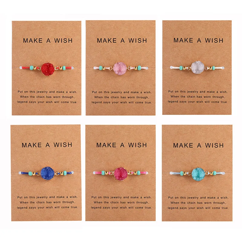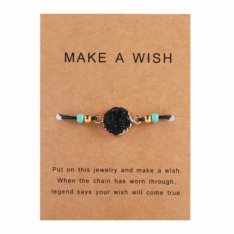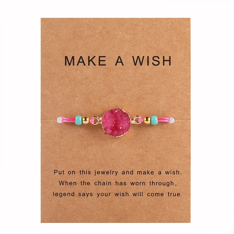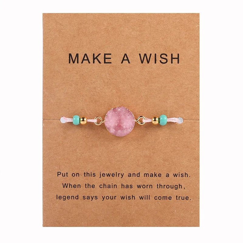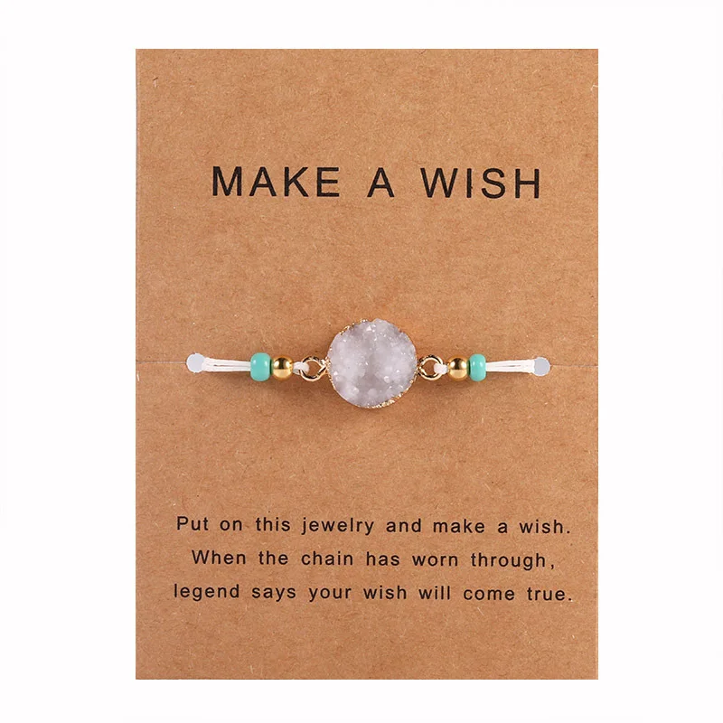 Drop shopping Upgrade Friendship Bracelet Women Make A Wish Crystal Natural Stone Quartz Paper Card Bracelet