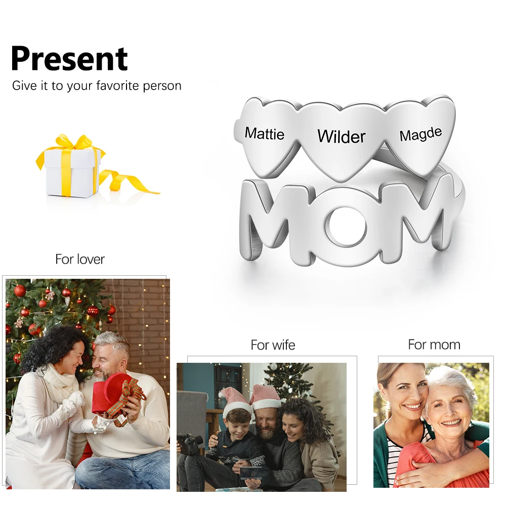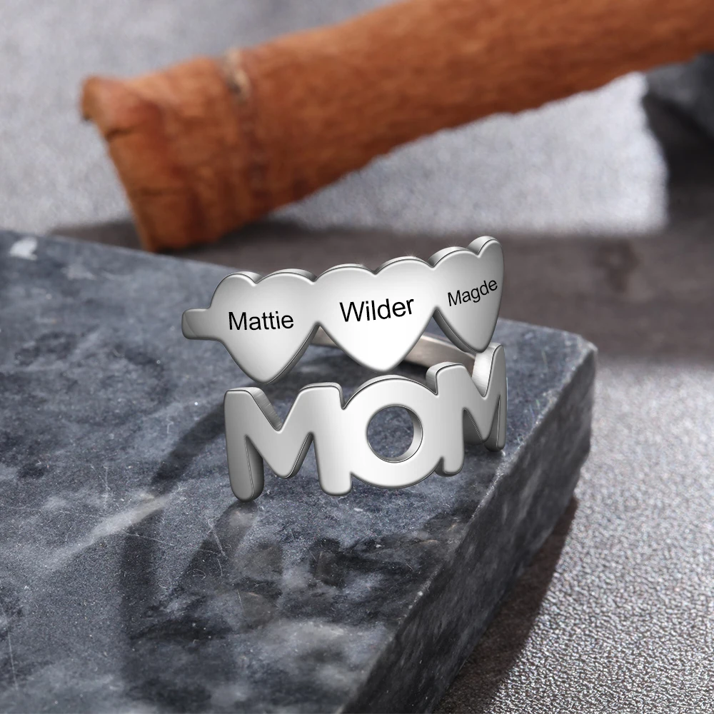 Dropship Jewelry Stainless Steel Mom Opening Rings Custom 3 Names Heart Ring