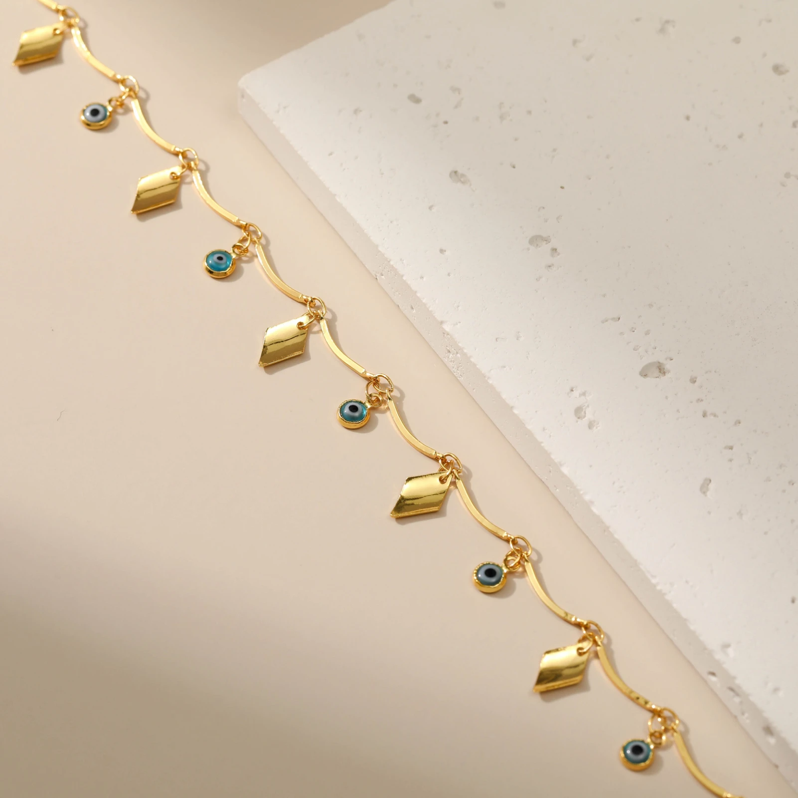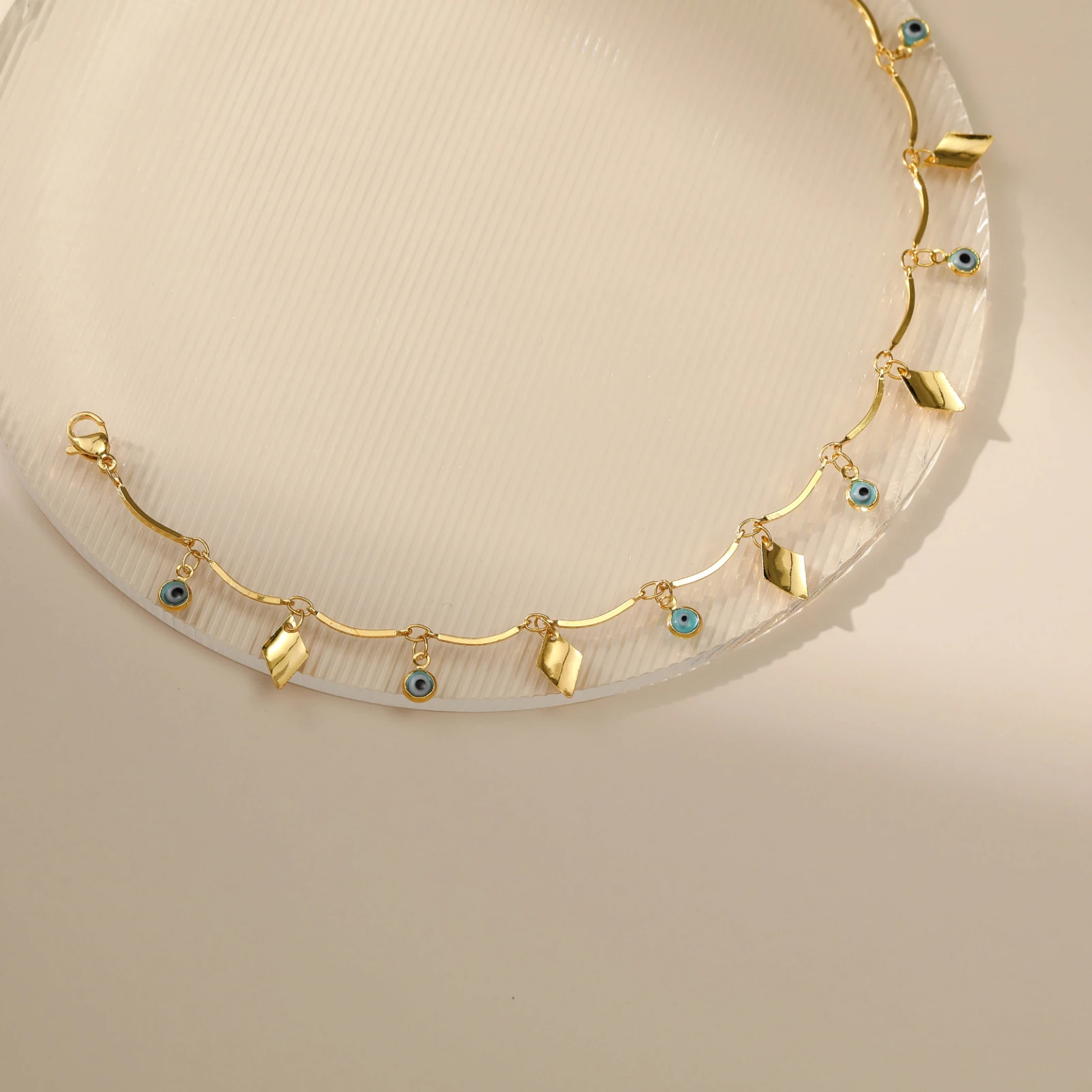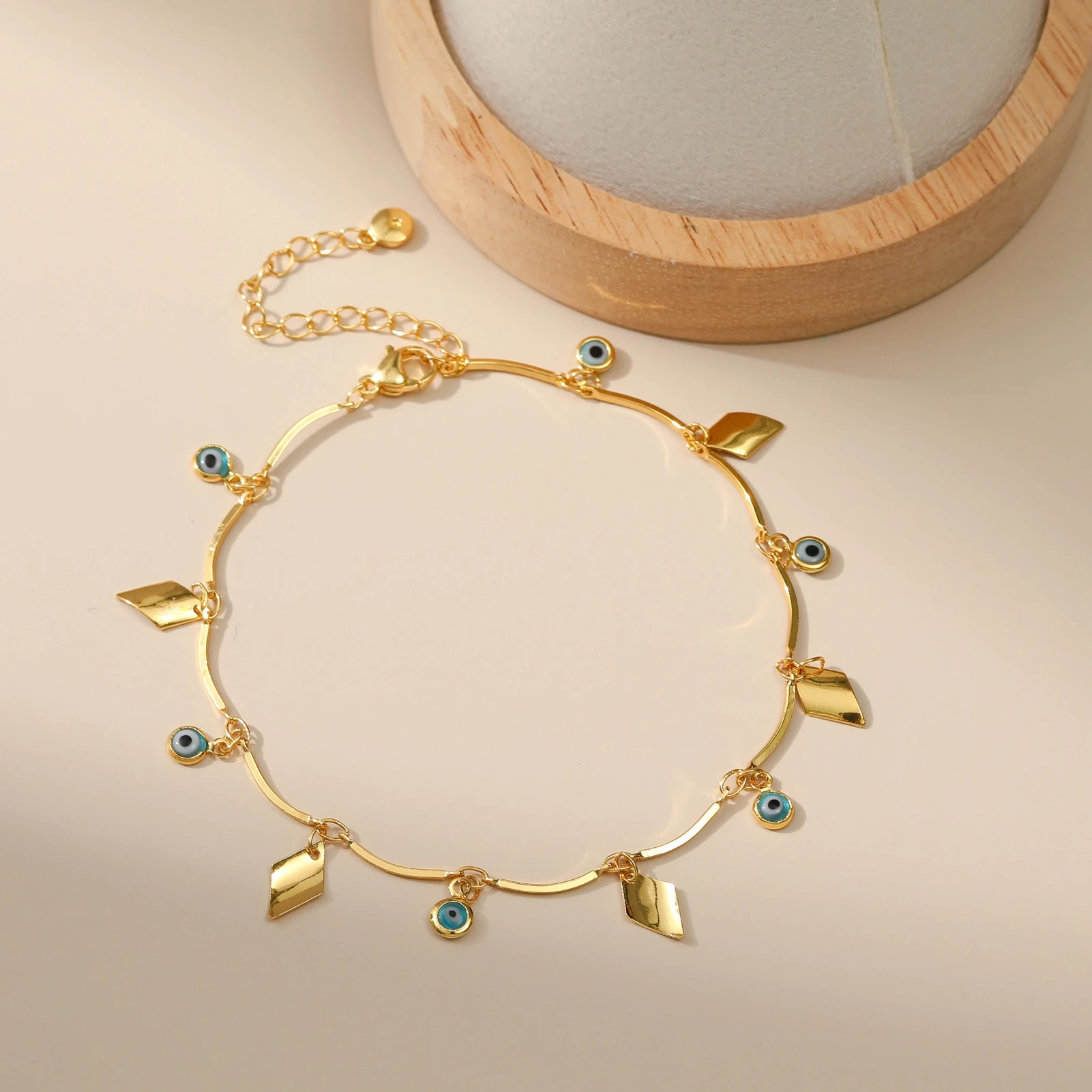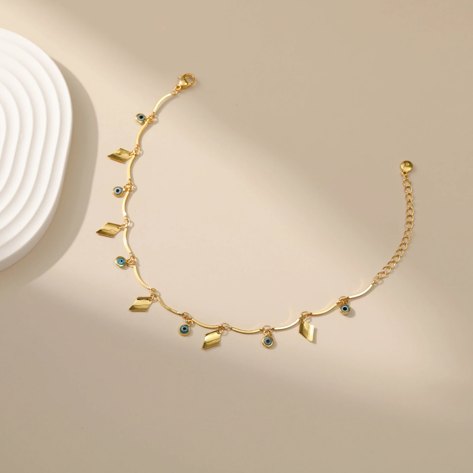 Dropship Product 22Cm Chain Length Boho Anklets 18K Gold Plated Evil Eye Anklet