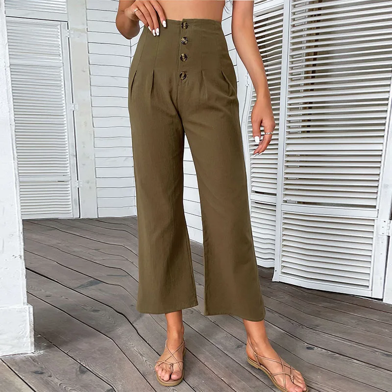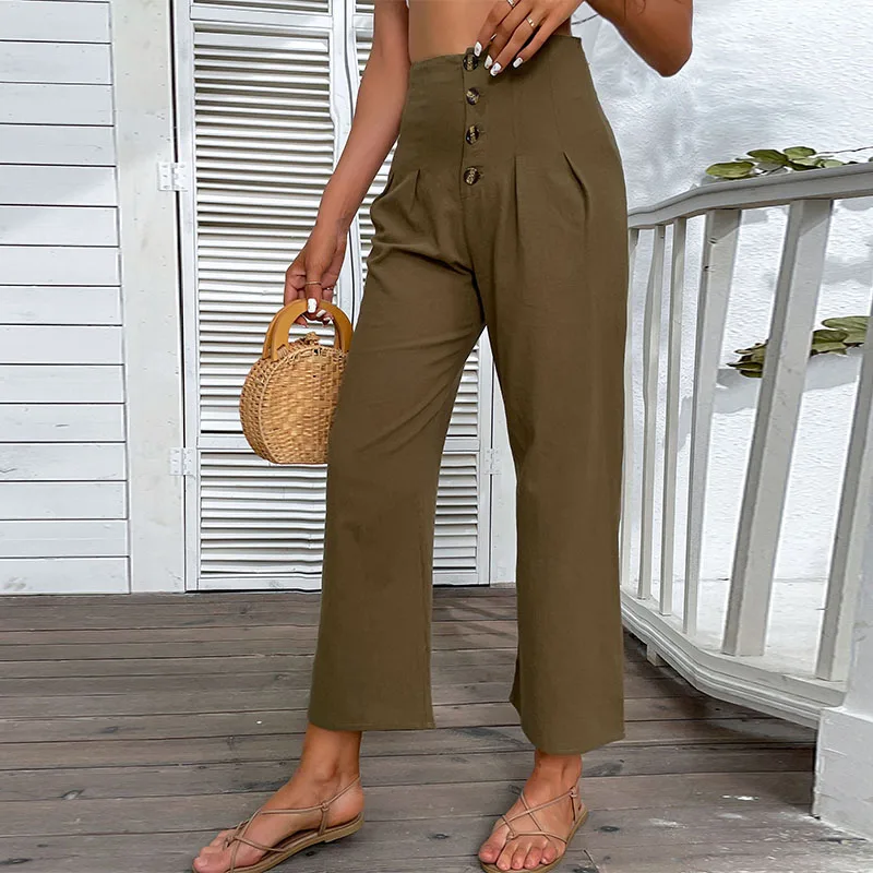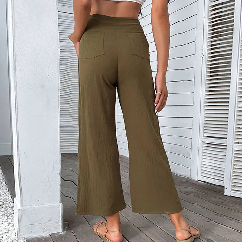Dropshipping 2023 Womens High Waist Pants Women Long Solid Linen Wide Leg Pants With Pocket