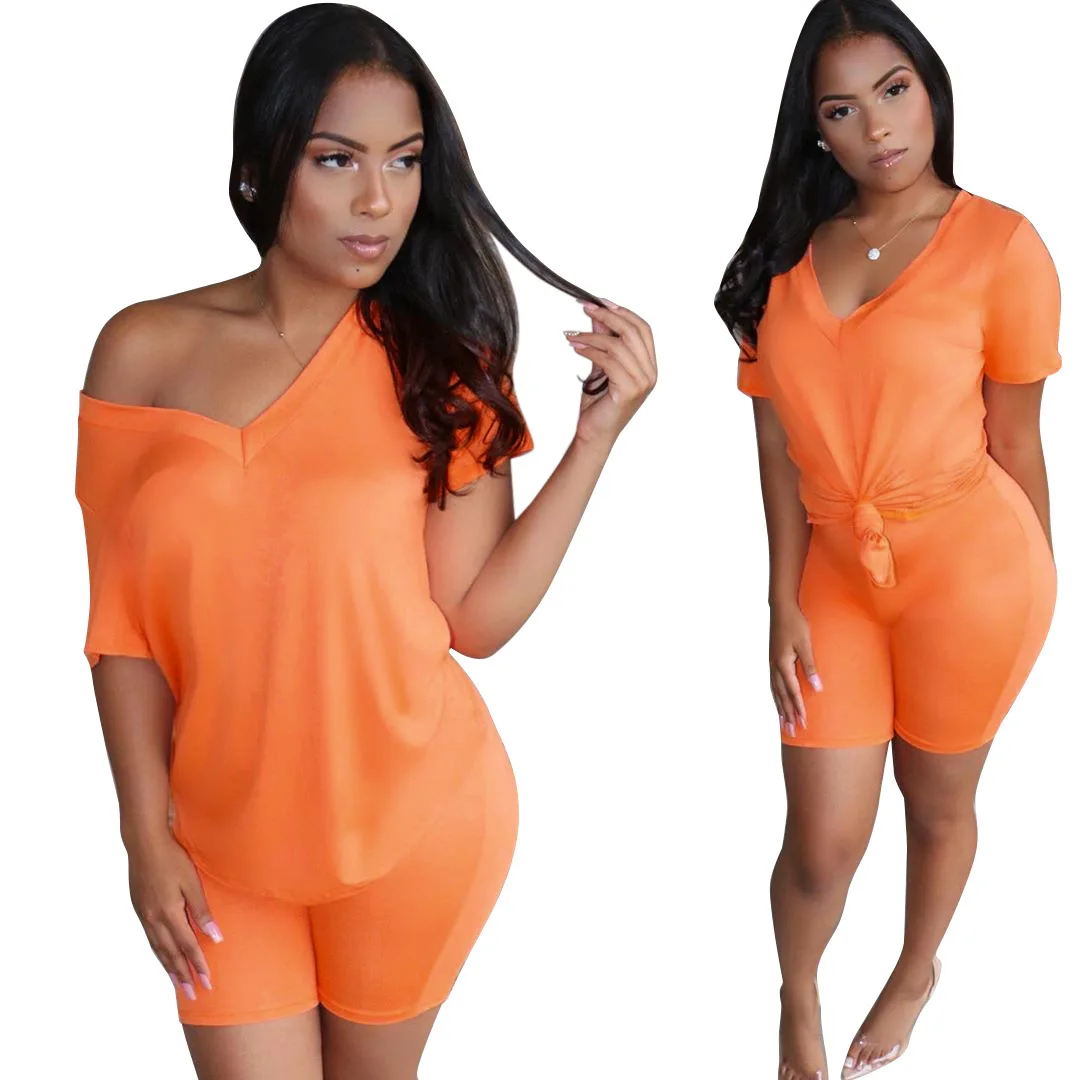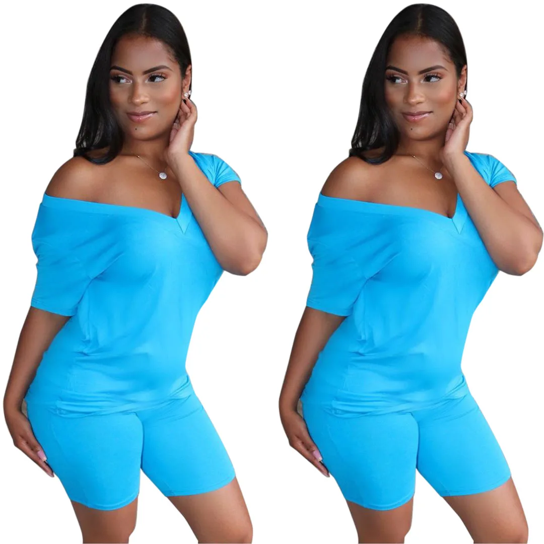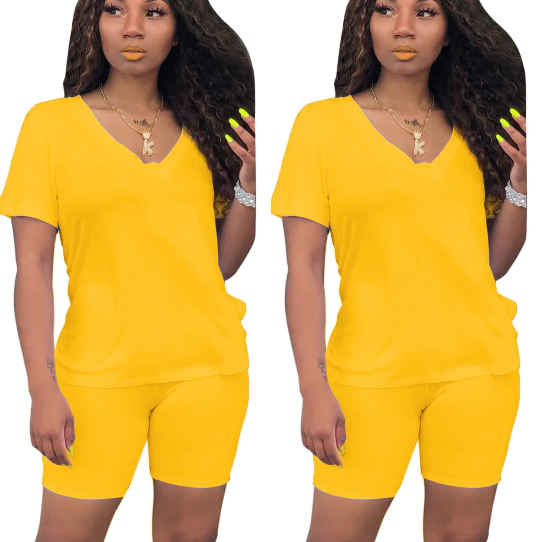 dropshipping candy color summer Jogger gym biker Sets clothes t shirt sports shorts ladies women set two piece women's sets