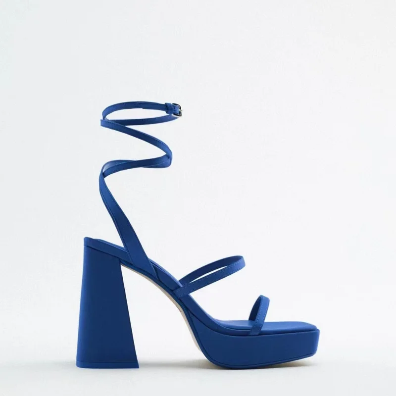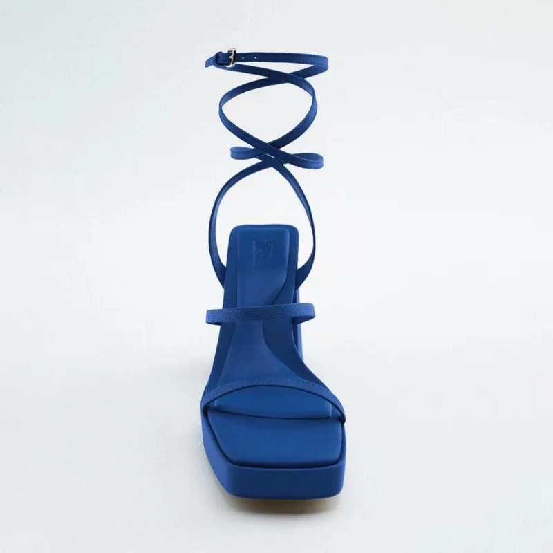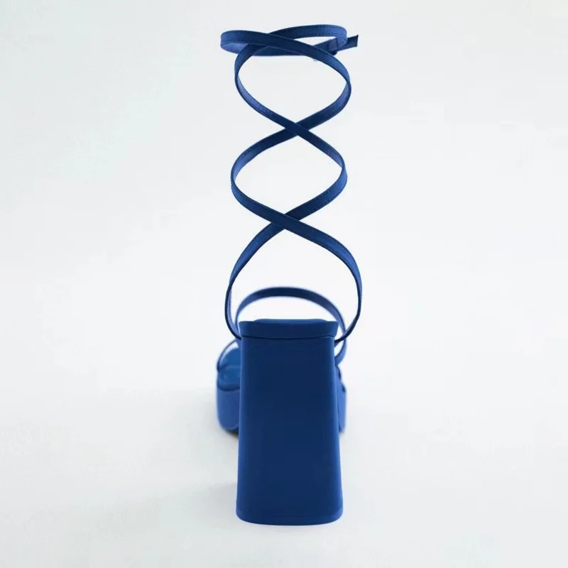Dropshipping Custom Logo 2022 Summer New Women's Leather High Heels Sandals Fashion Designer Block Heel Sandals Big Size 11
