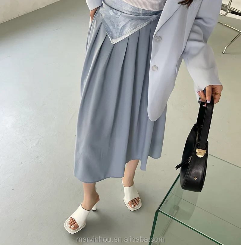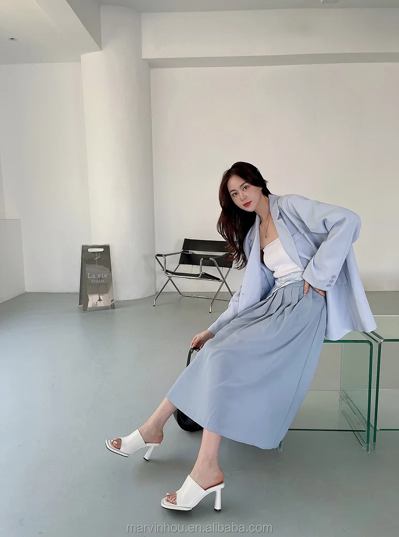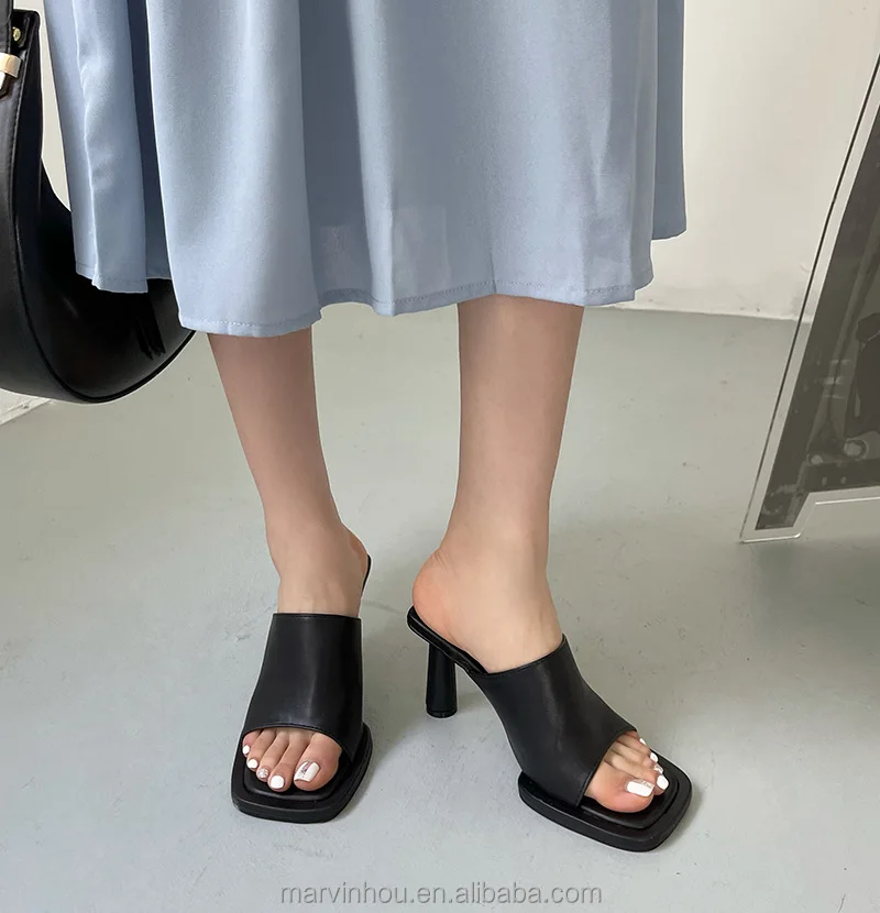 Dropshipping Custom Logo Blue High-Heeled Slides Women Shoes Open Toe Square Stiletto Sandals for Summer