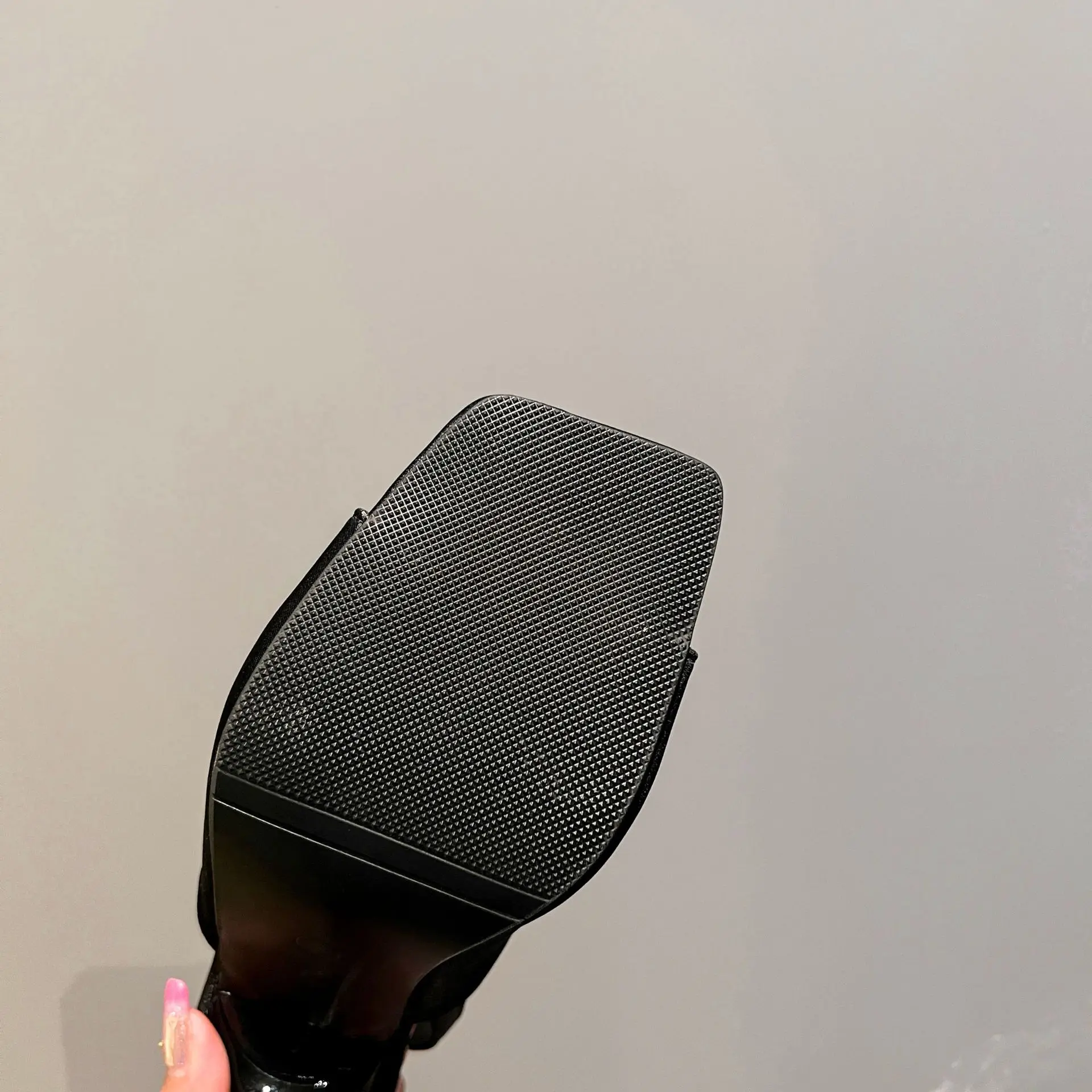 Dropshipping Custom Logo Fashion Trend Women`s Thin High Heels Open Square Toe Pumps Ankle Strap Heeled Sandals