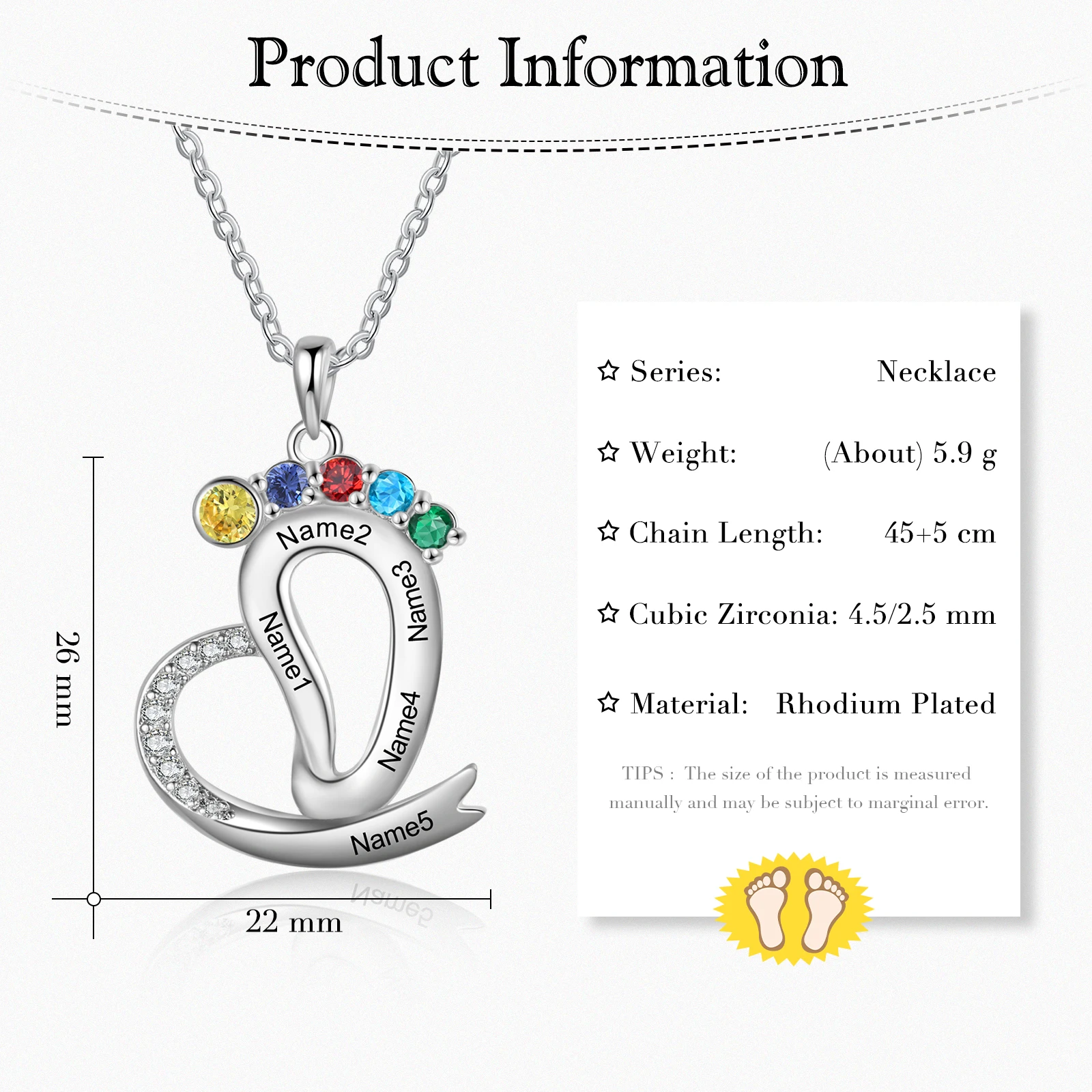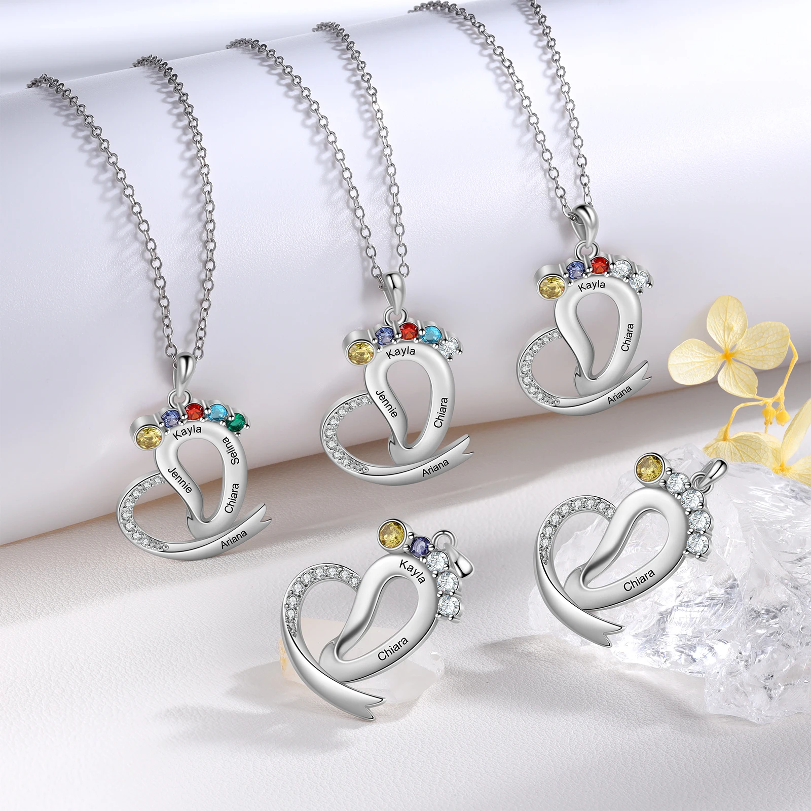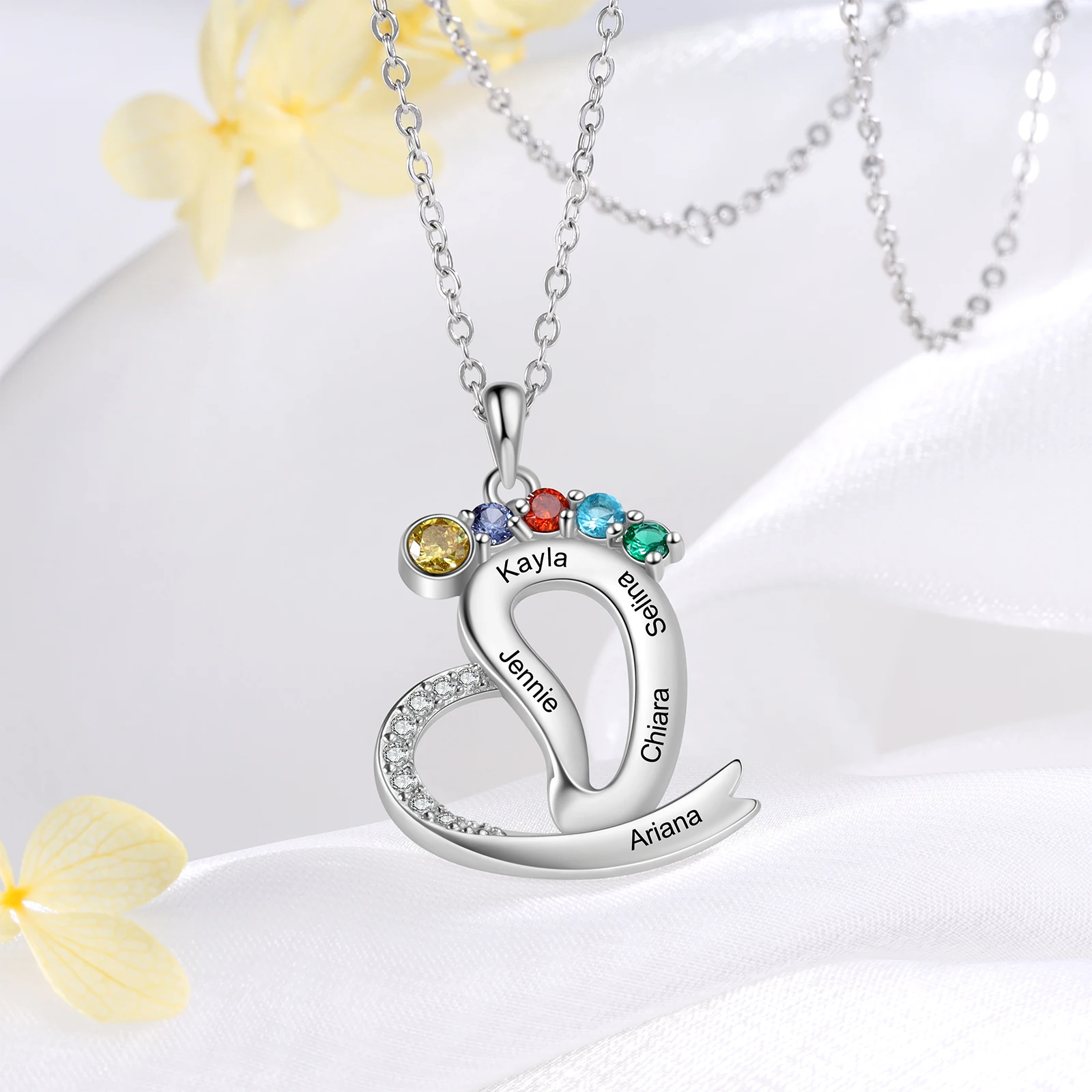 Dropshipping Jewelry Women Girls Birthday Gift Baby Feet Necklace Custom Heart Name Necklace