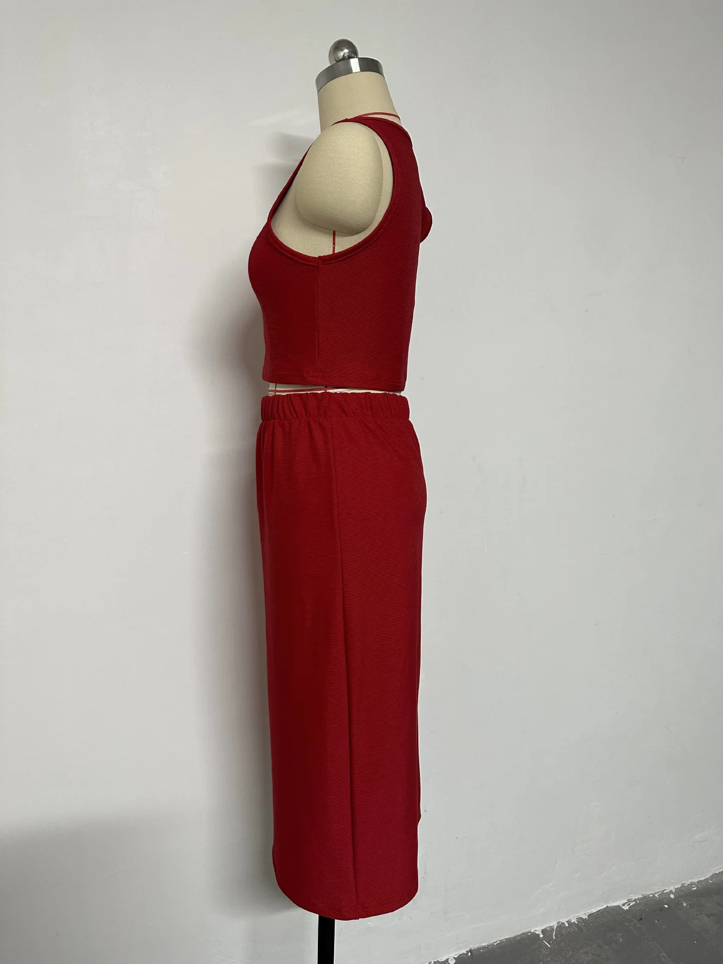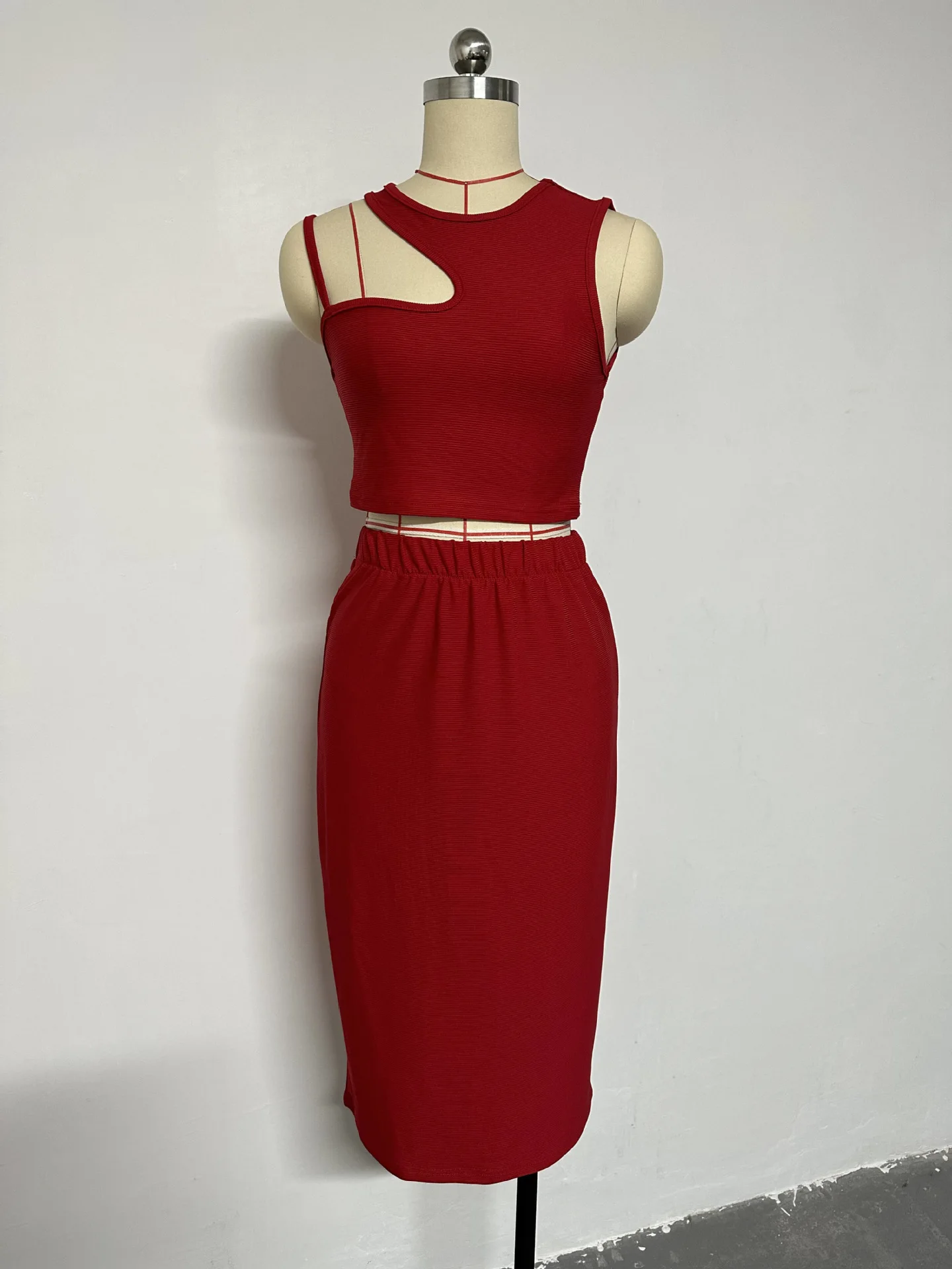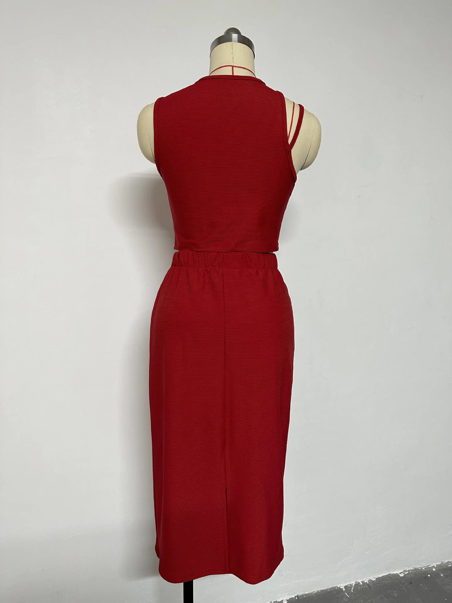 dropshipping ladies womens dress women clothing sleeveless tank crop top high rise mini mid skirt two piece women's sets skirts