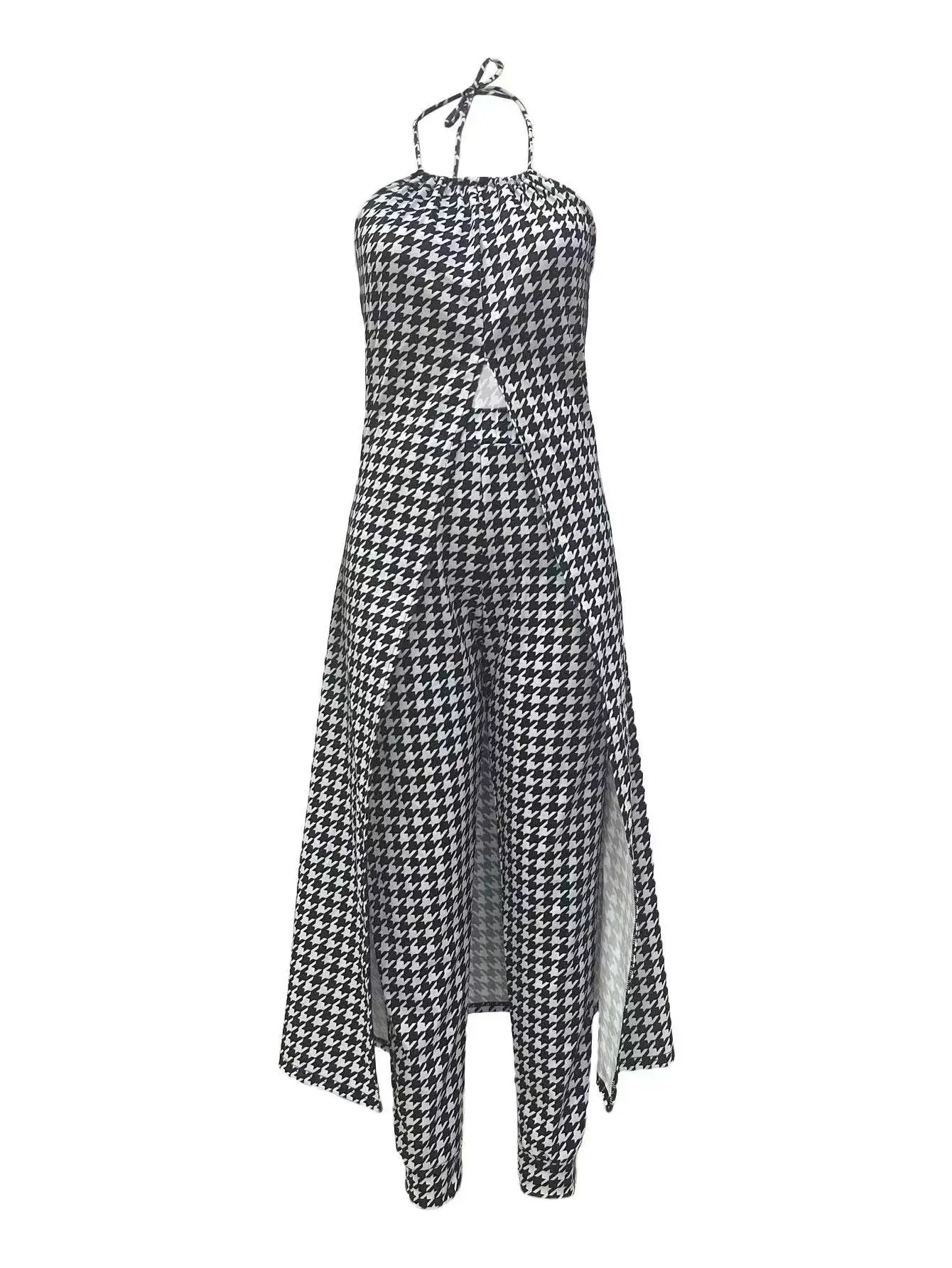 dropshipping lady women clothes summer temperament halter neck sleeveless loose top high waisted pants two piece women's sets
